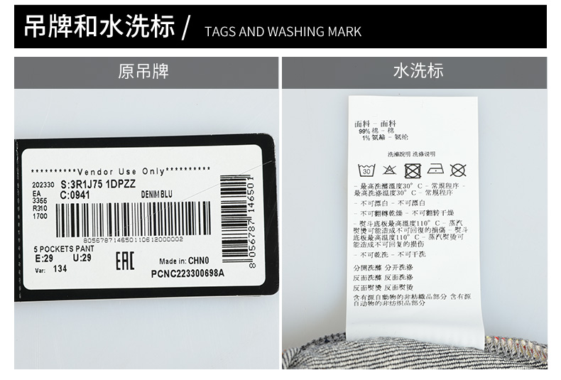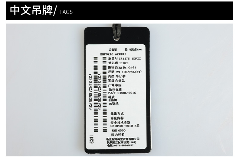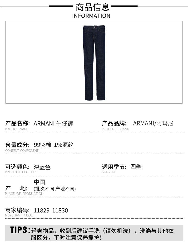 Emporio Armani 阿玛尼 弹棉直筒休闲牛仔长裤 11829