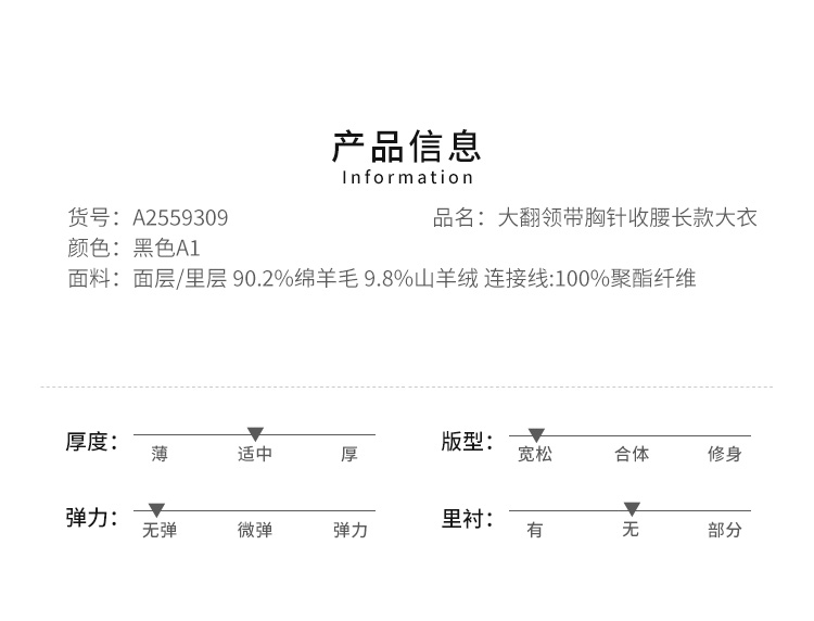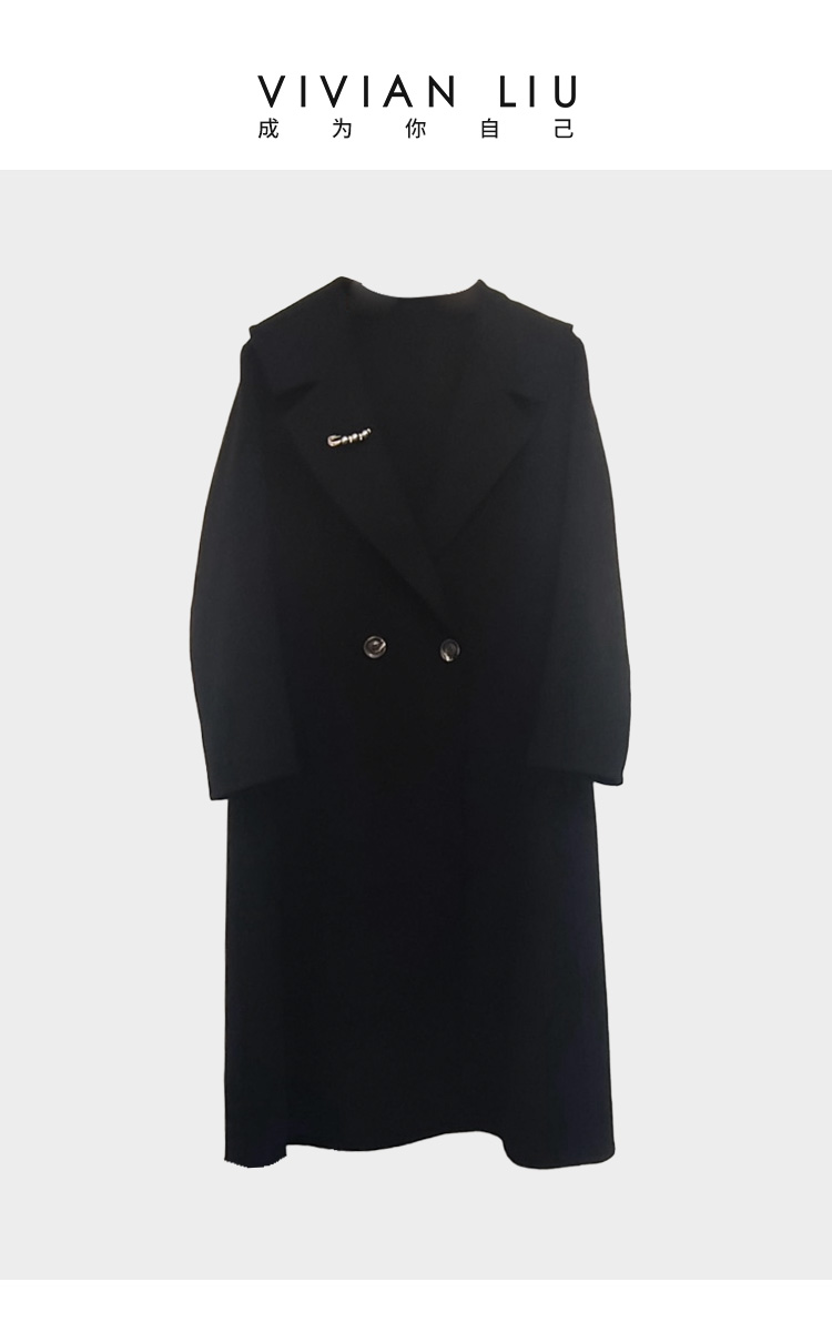 VIVIAN LIU薇薇安刘A2559309秋女装新款大翻领带胸针收腰长款大衣