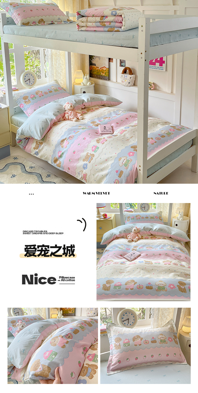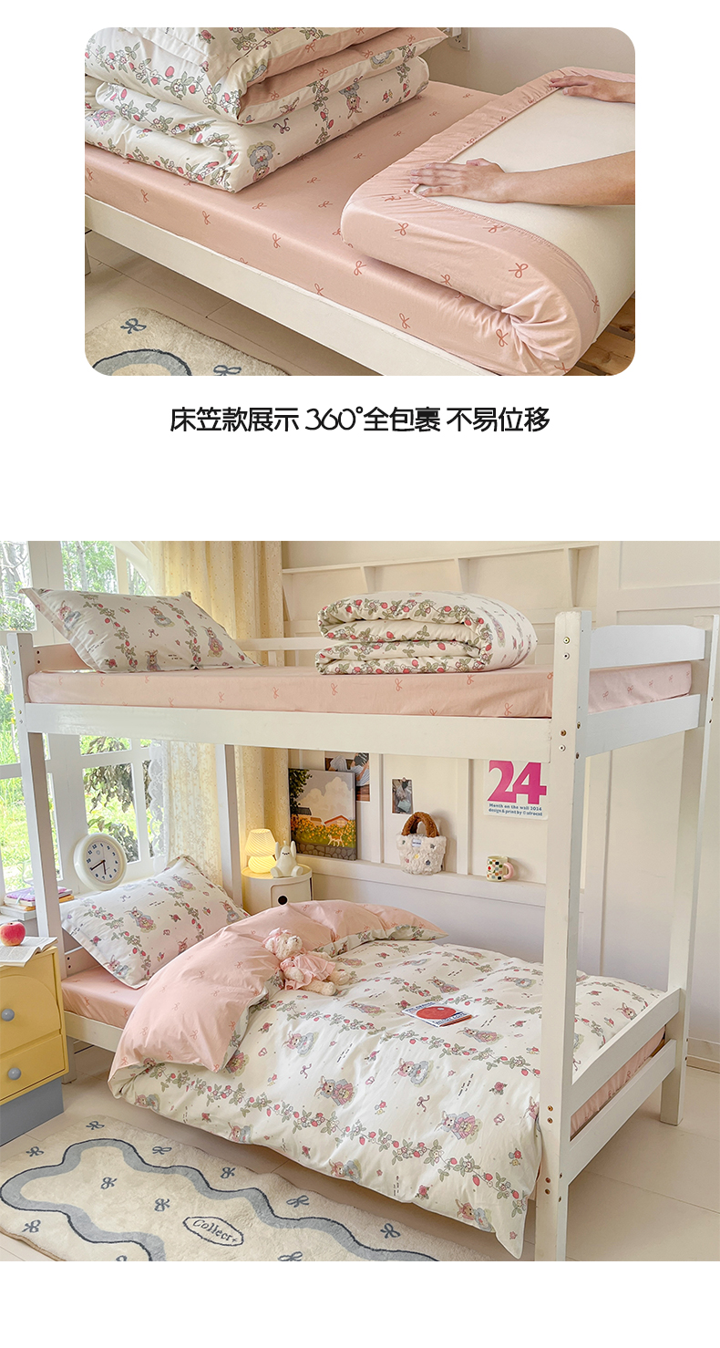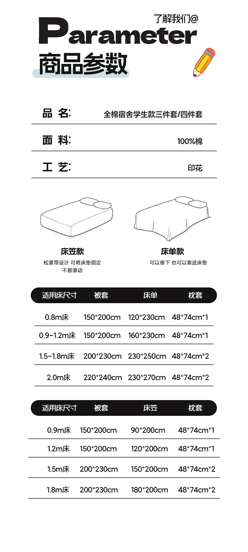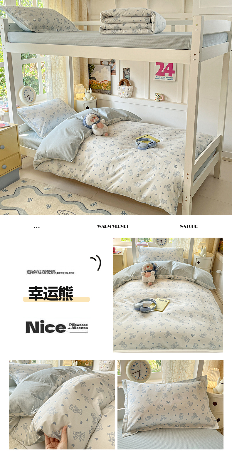 【品牌直发】加倍生活 全棉宿舍学生款三件套 新疆棉AB双板卡通印花 开学季床单/床笠款可水洗机洗 适合上下铺
