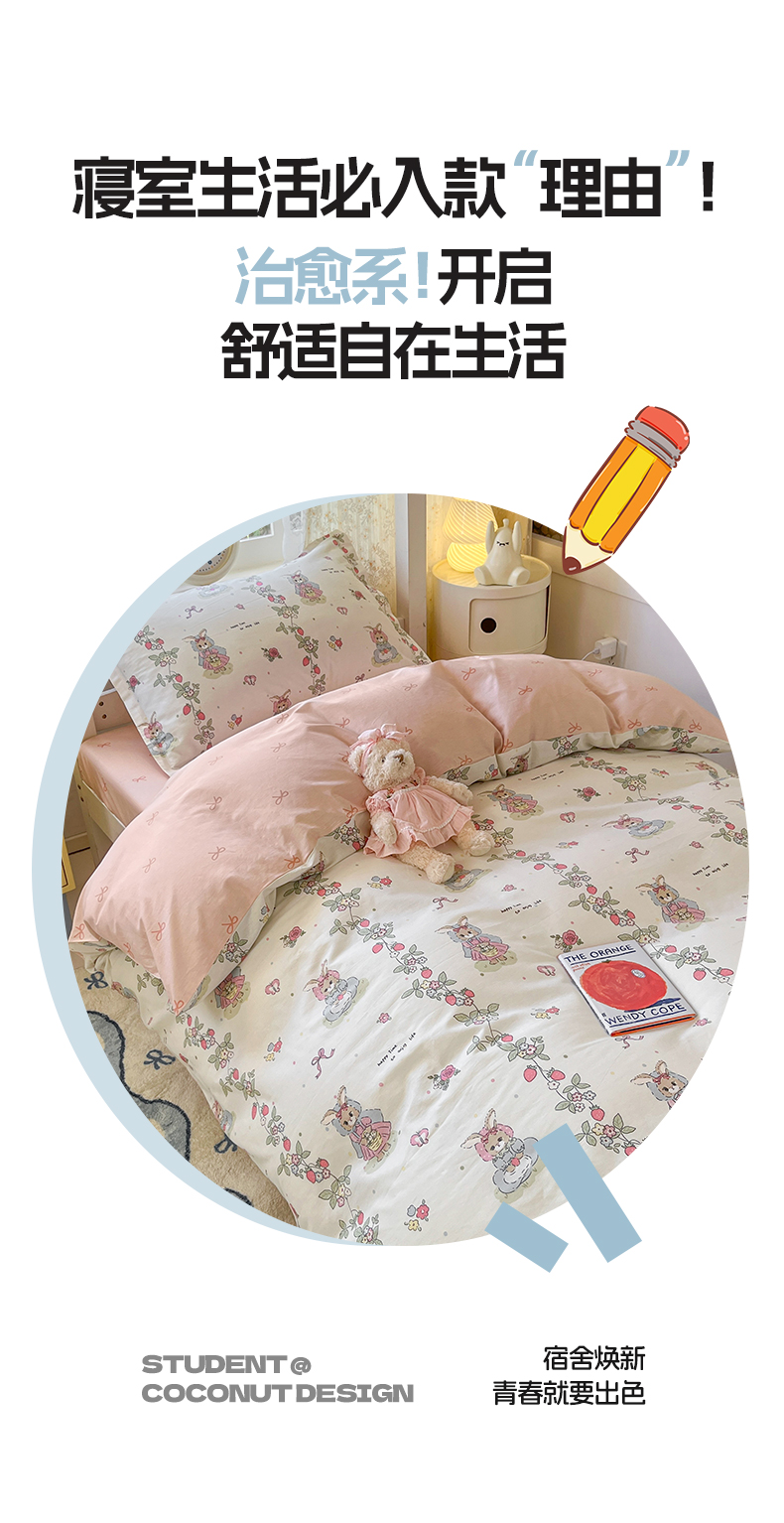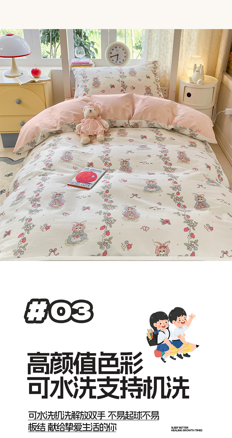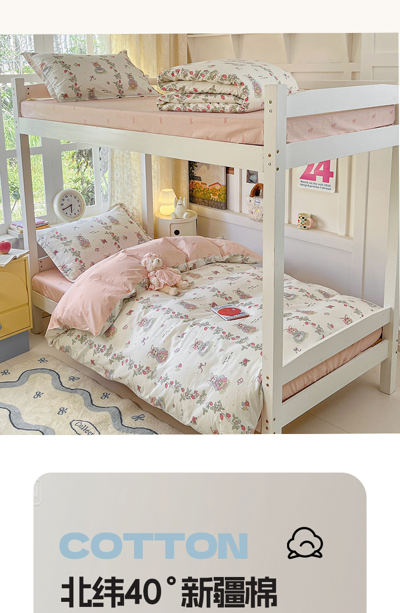 【品牌直发】加倍生活 全棉宿舍学生款三件套 新疆棉AB双板卡通印花 开学季床单/床笠款可水洗机洗 适合上下铺