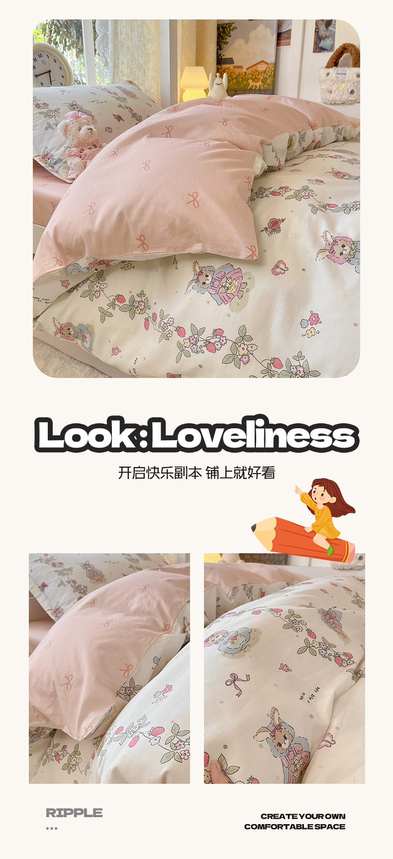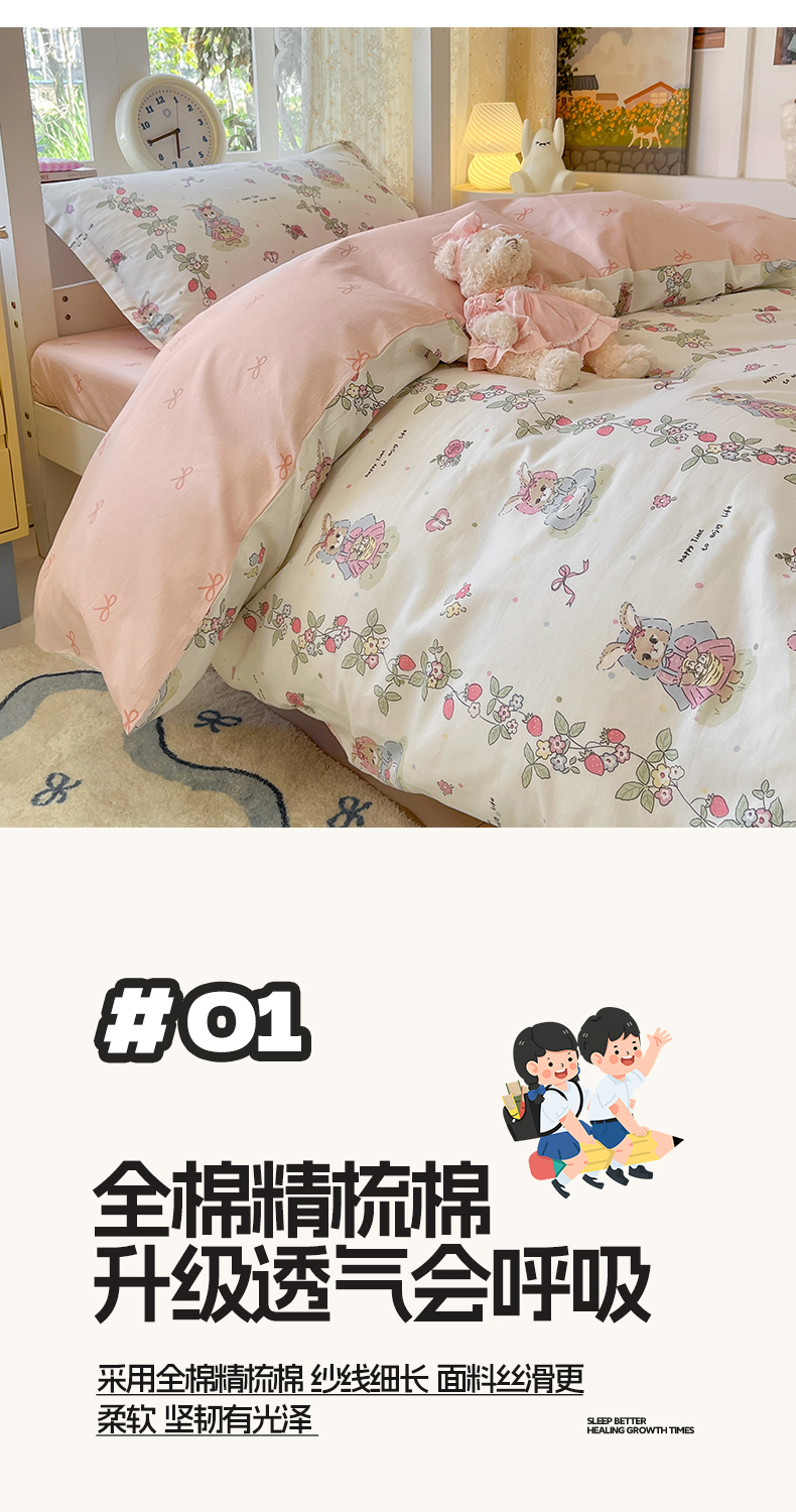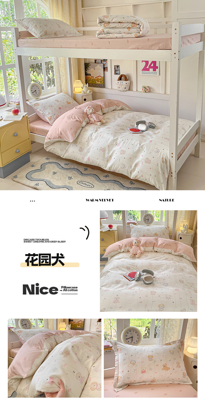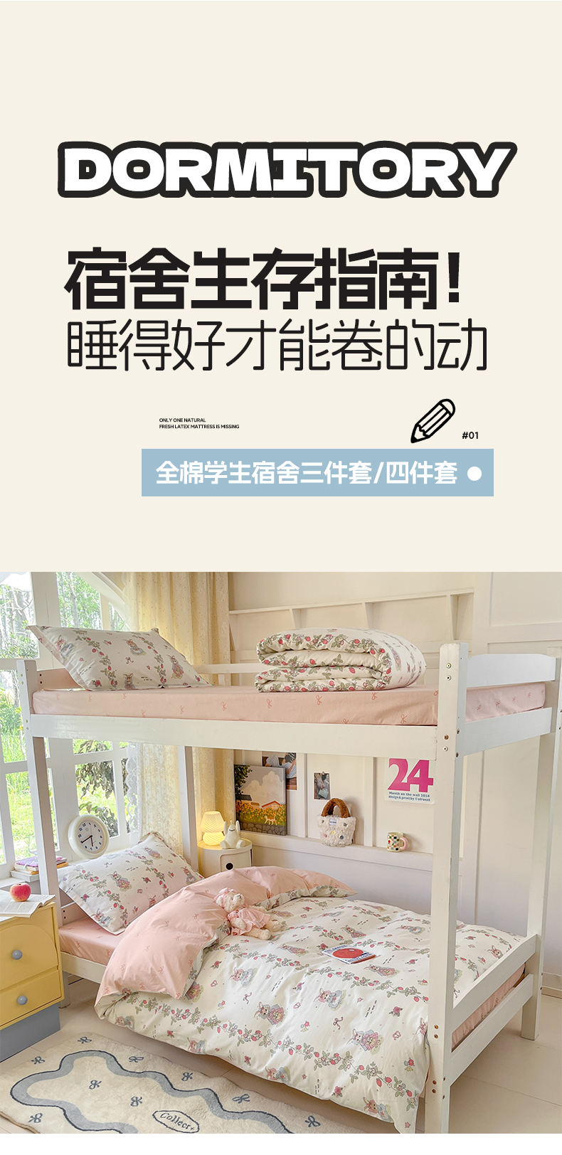 【品牌直发】加倍生活 全棉宿舍学生款三件套 新疆棉AB双板卡通印花 开学季床单/床笠款可水洗机洗 适合上下铺