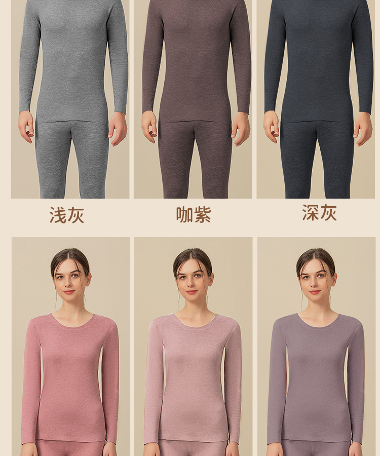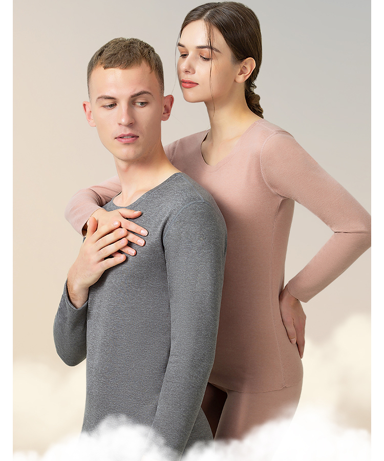 皇家丽美羊毛蚕丝保暖内衣女士无痕弹力长袖秋衣秋裤套装男加绒德打底冬季BNN80023/BNM80024