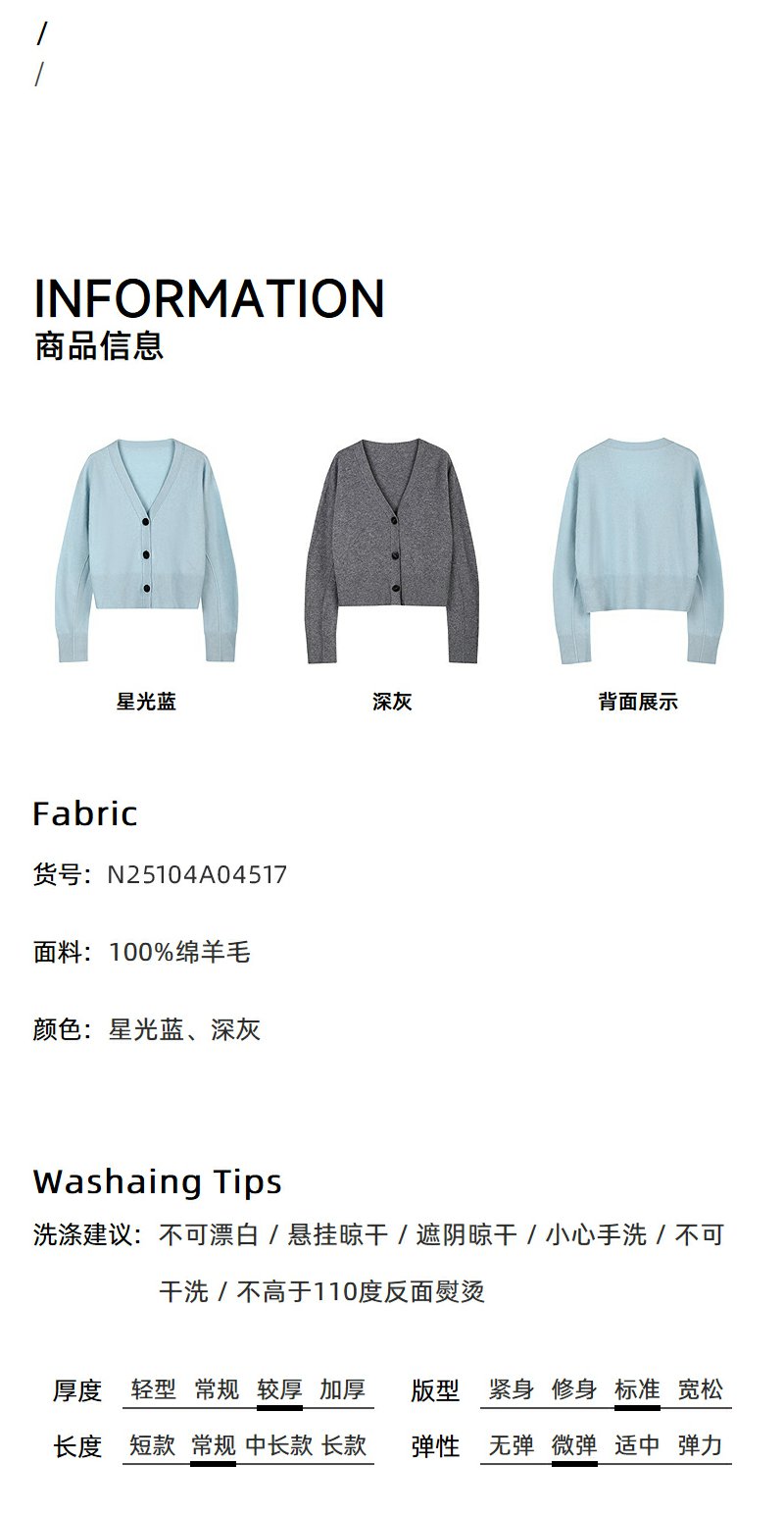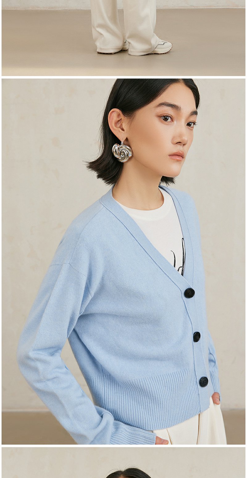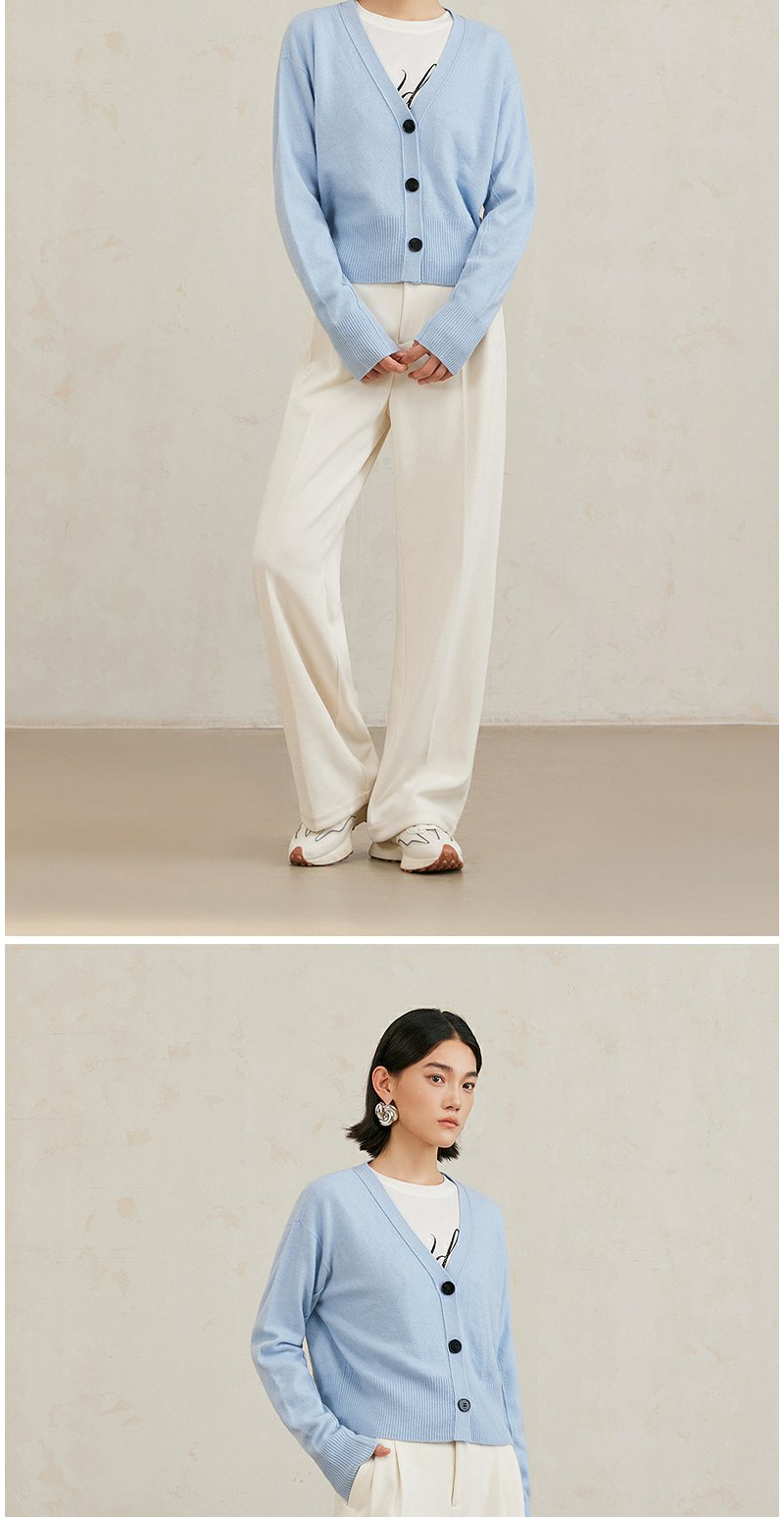 NEELLY纳俪商场同款冬季新款纯羊毛V领针织衫女肌理感毛衣开衫N25104A04517