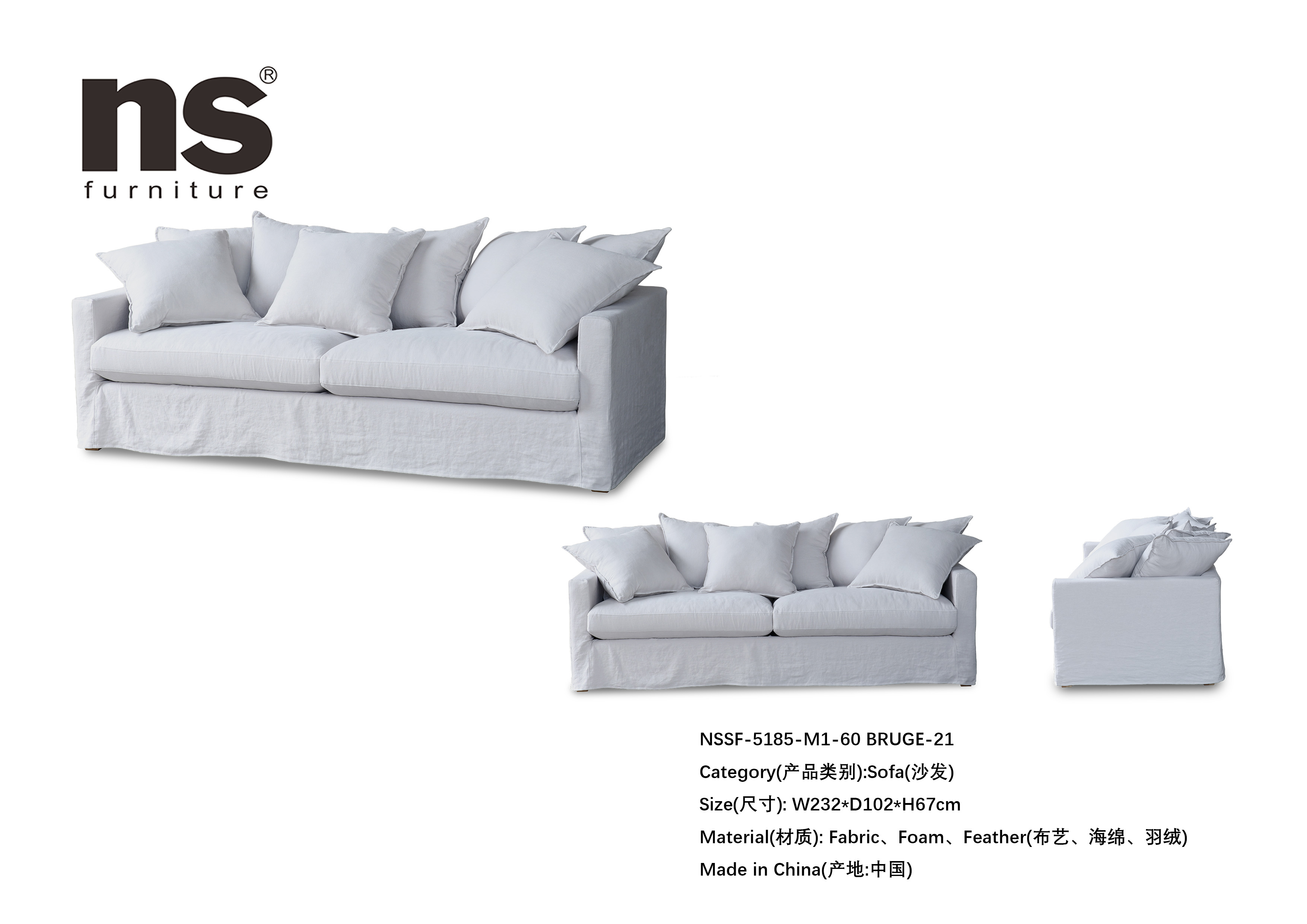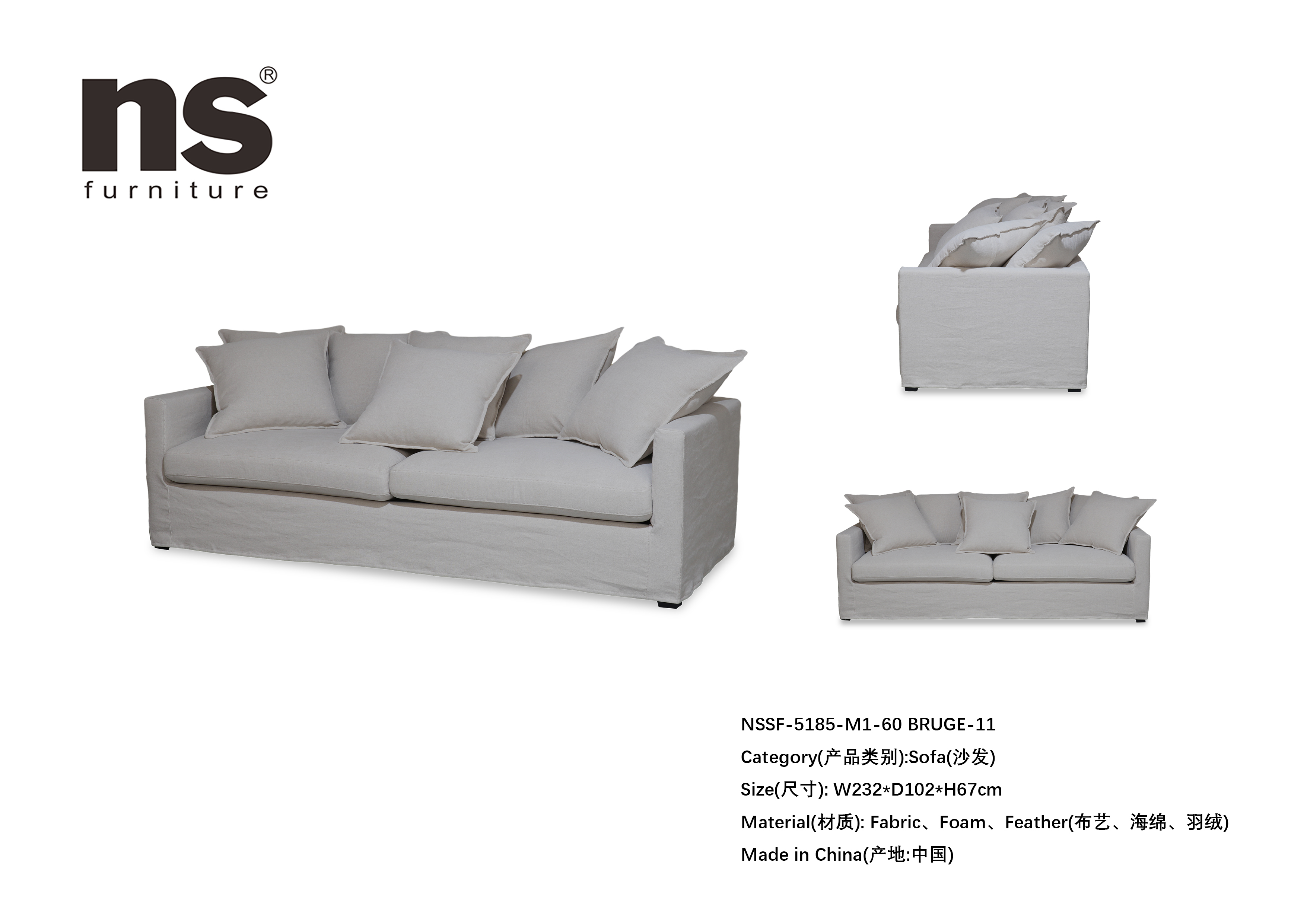 | 品名 | NS家居nsfurniture布艺软包三人位沙发 |