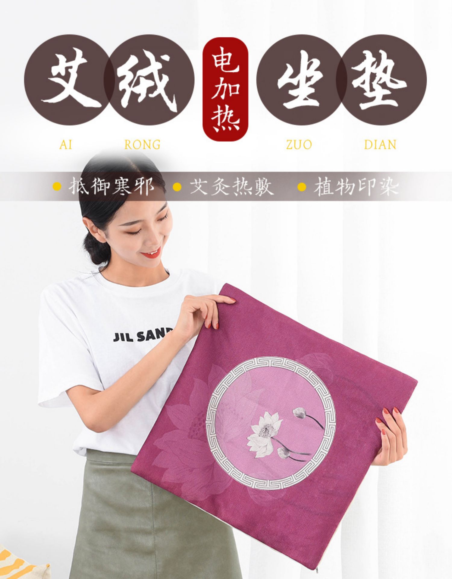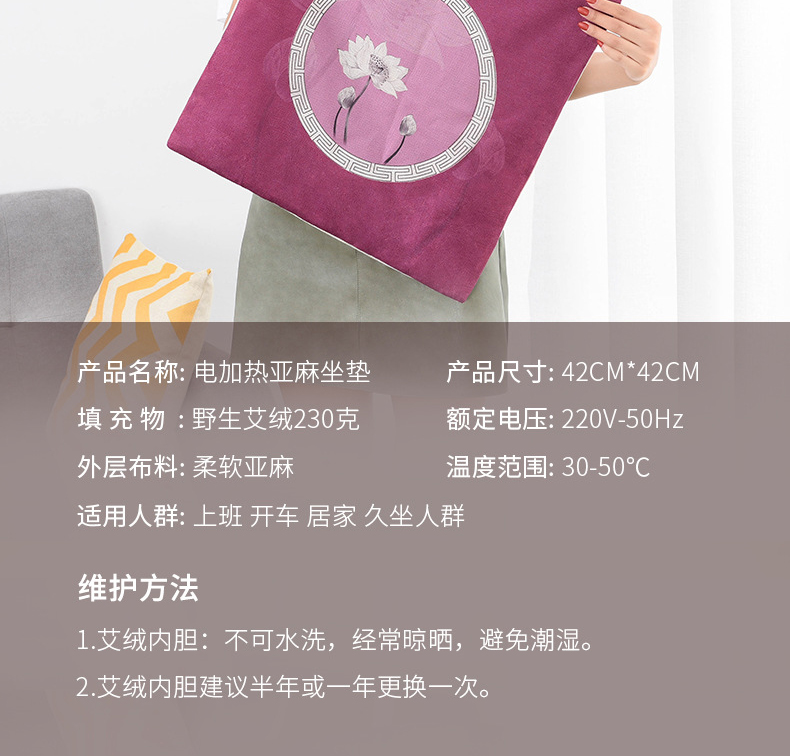 棉麻款艾绒加热坐垫【艾灸坐垫椅子 家用 坐灸仪器宫寒妇科臀部全身加热】