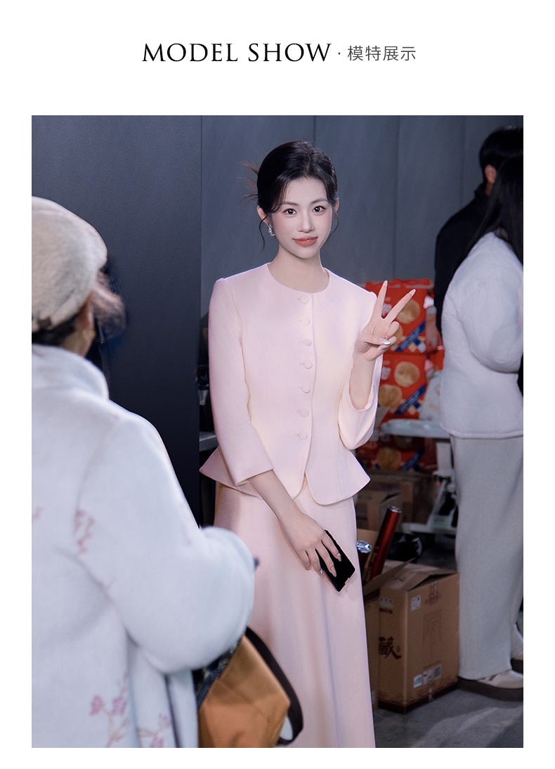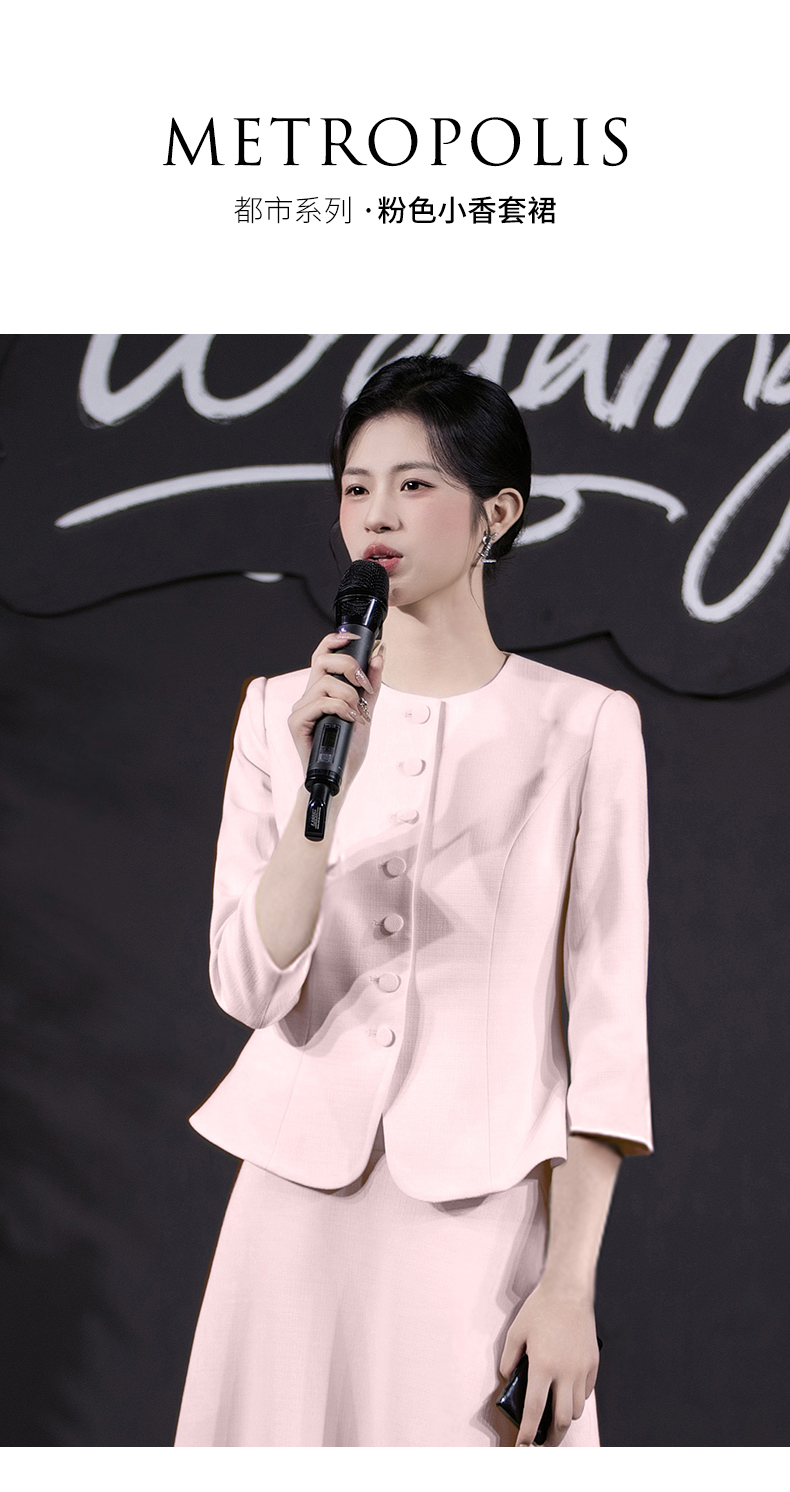 法小曼*子珍专款/粉色春夏女2025年新款时尚套装年轻洋气减龄正装职业装西装伞裙