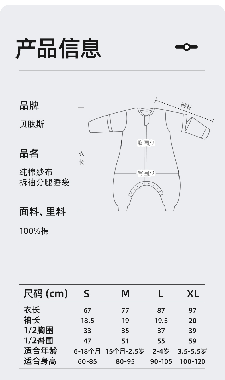 贝肽斯【肽绵】婴儿睡袋春秋宝宝分腿儿童防踢被四季通用