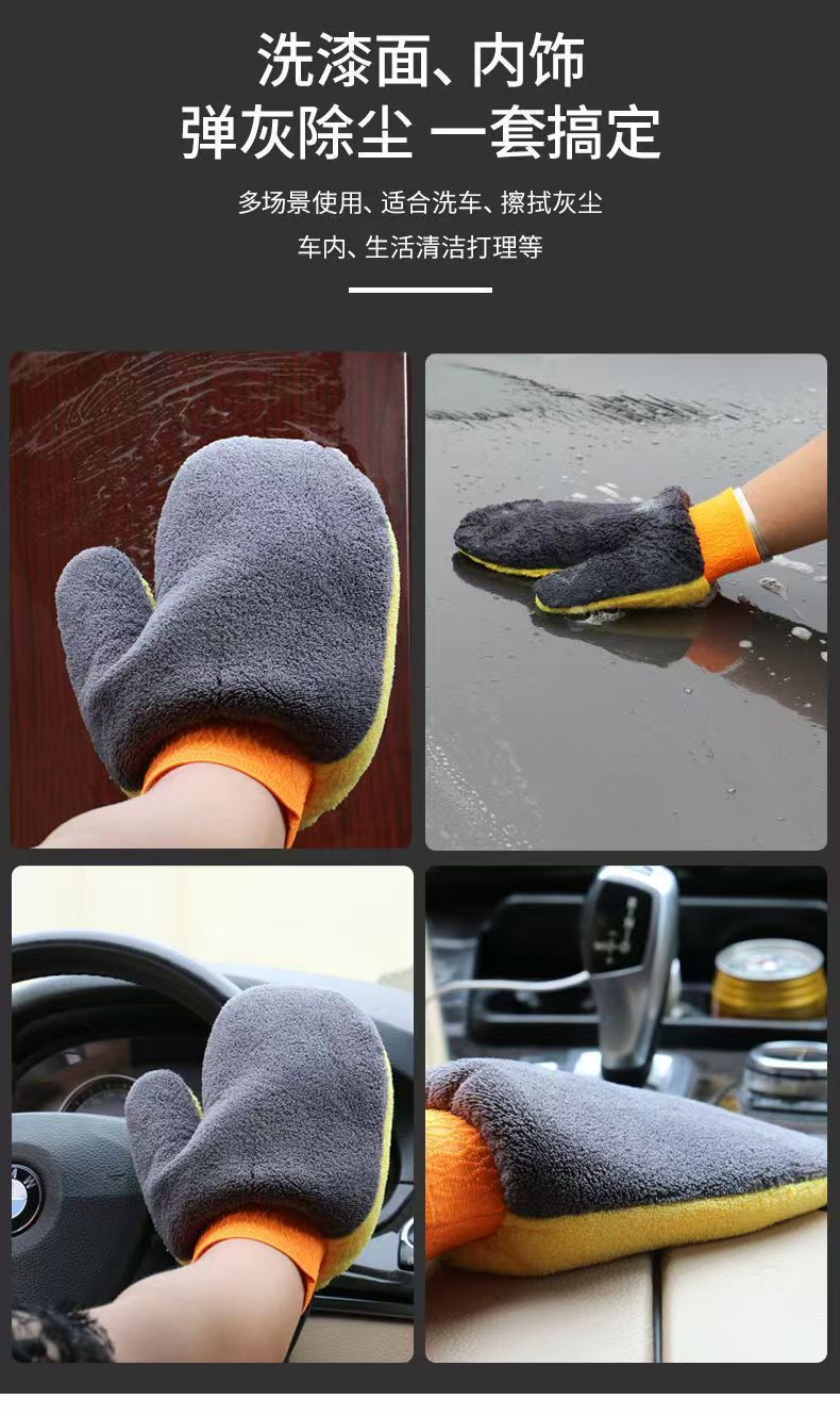 E路驰洗车清洁手套大号加厚不伤漆面双面去污防水除尘强力吸水