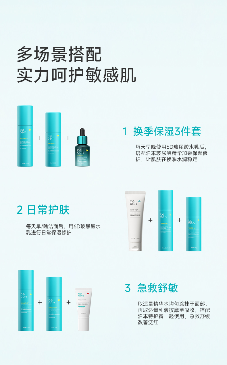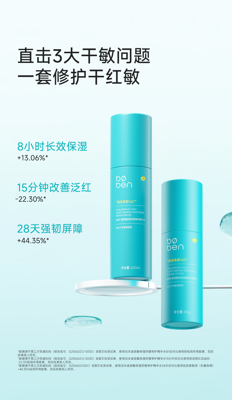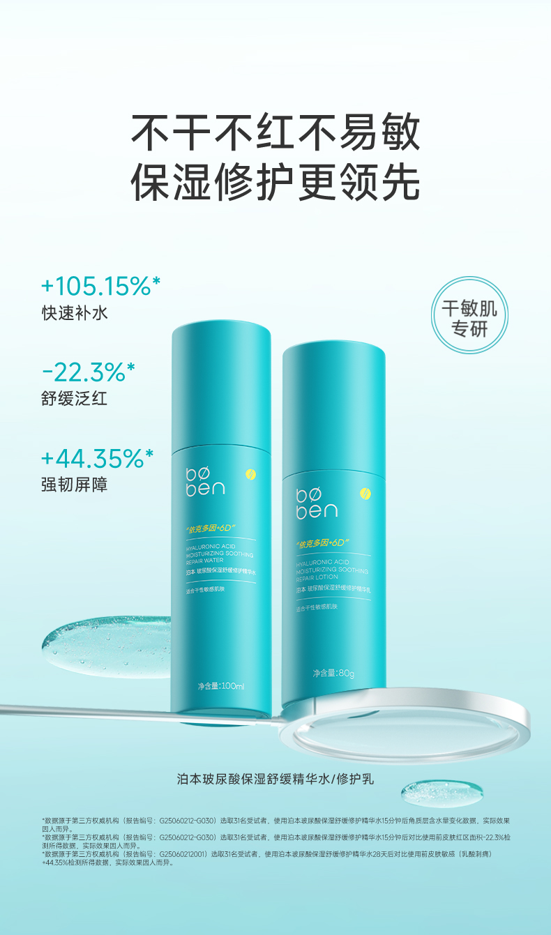 BOBEN泊本6D玻尿酸聚谷氨酸水乳100ml/80ml 修护二裂酵母