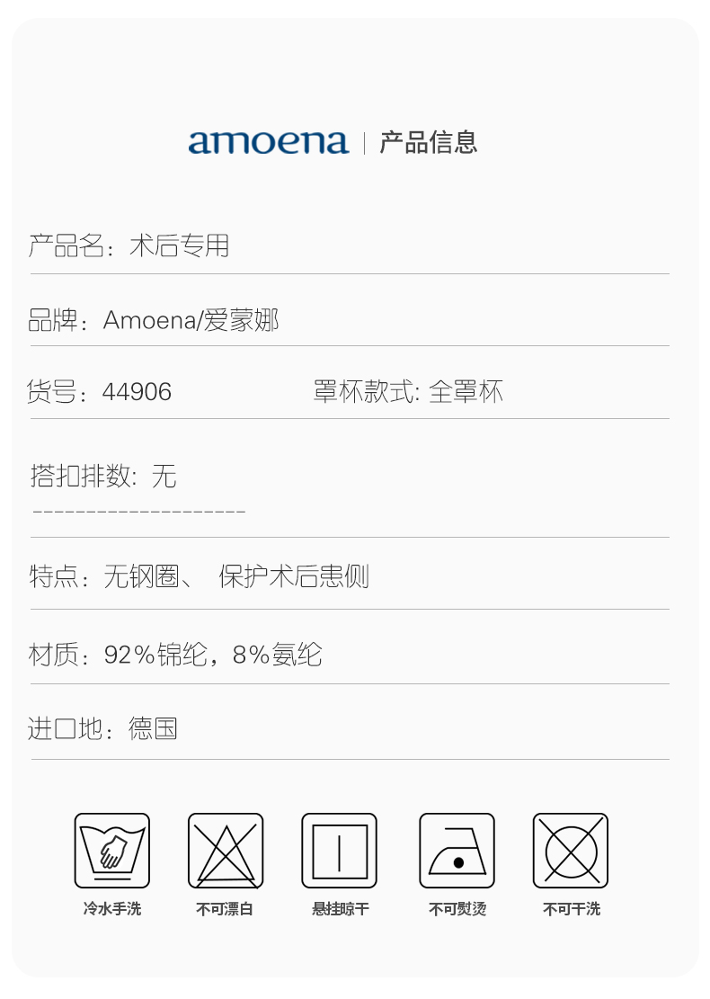 【优惠详情咨询客服】爱蒙娜amoena 德国进口义乳文胸乳腺术后专用胸罩无钢圈内衣44906