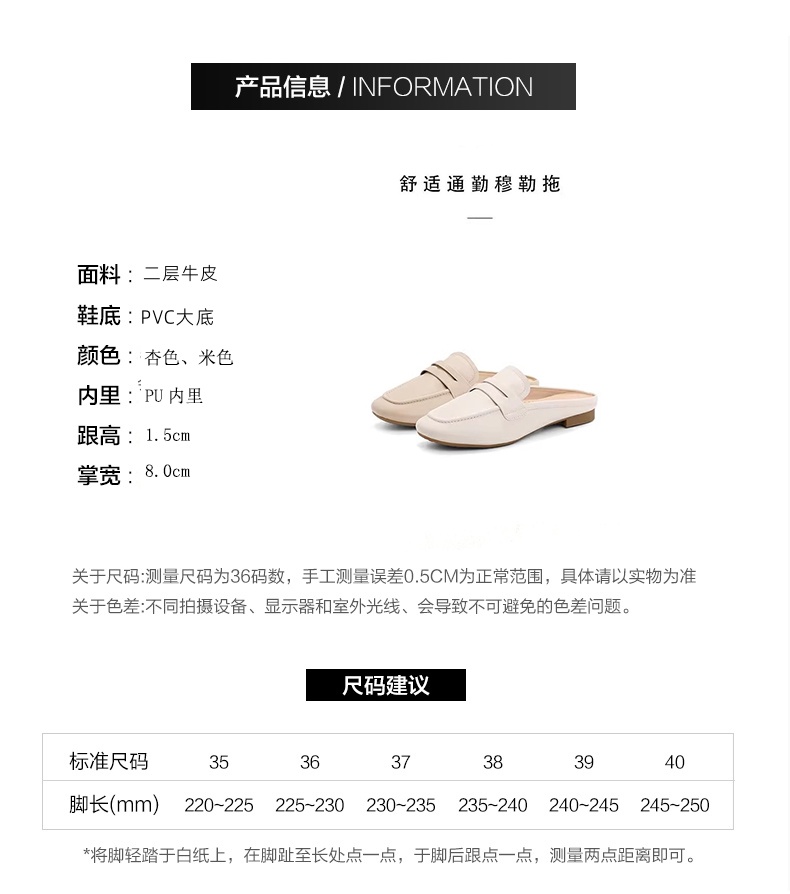 步印【爆款】舒适百搭真皮穆勒半托鞋0508(尺码偏小,拍大一码)