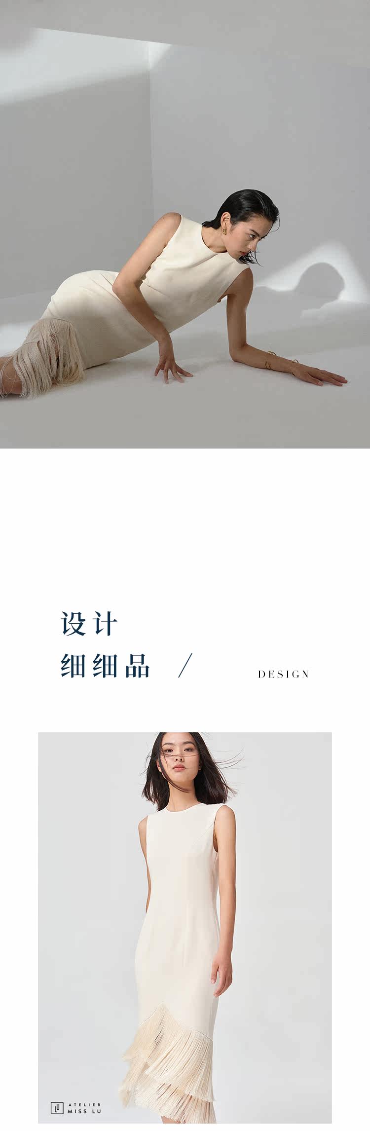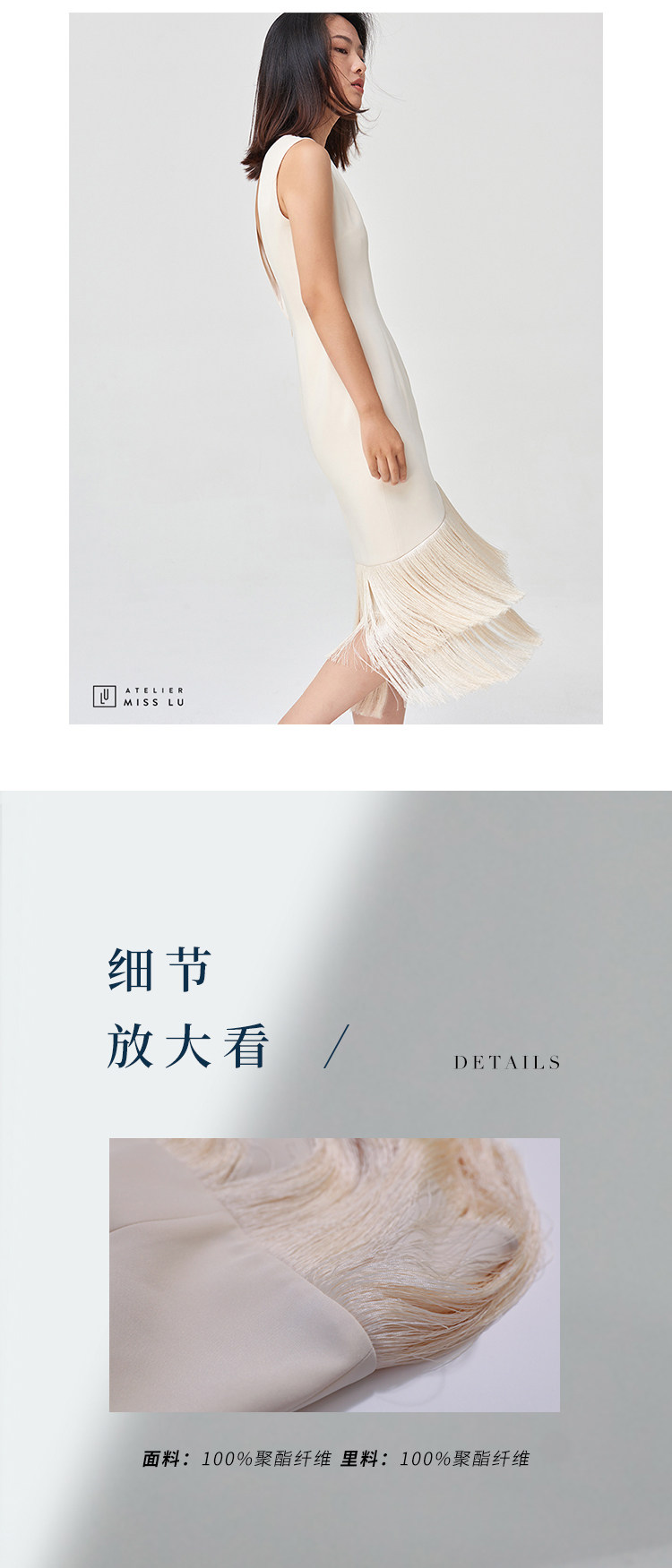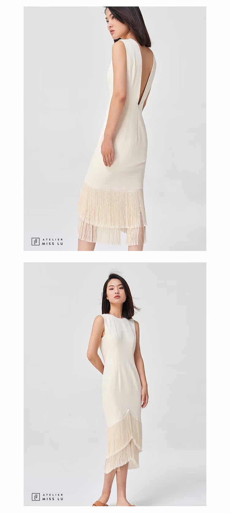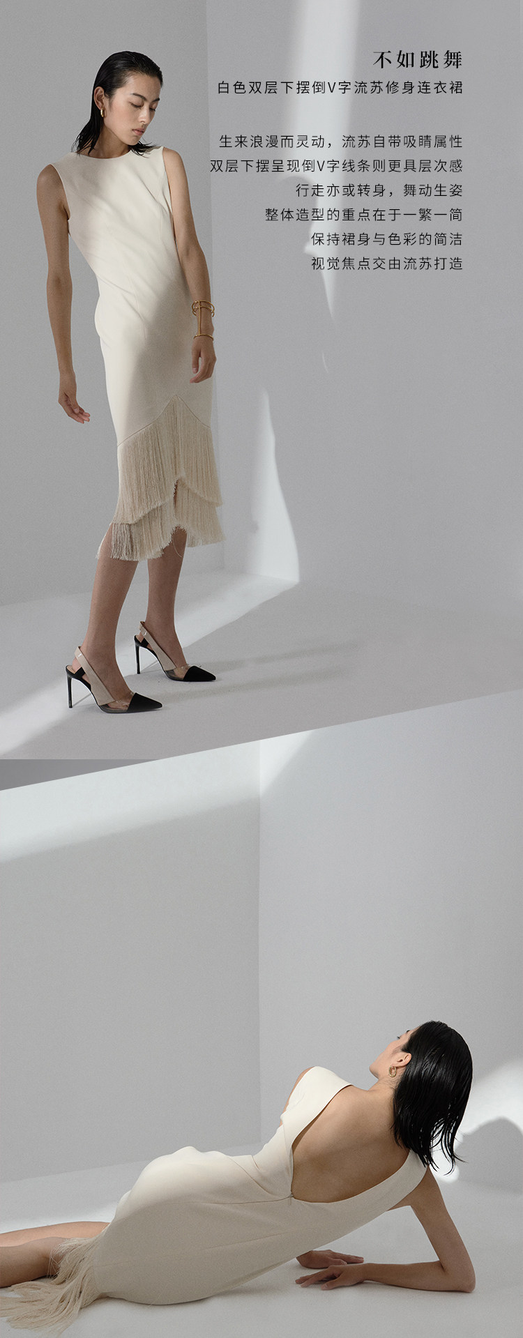【不如跳舞】白色双层下摆倒V字流苏修身连衣裙