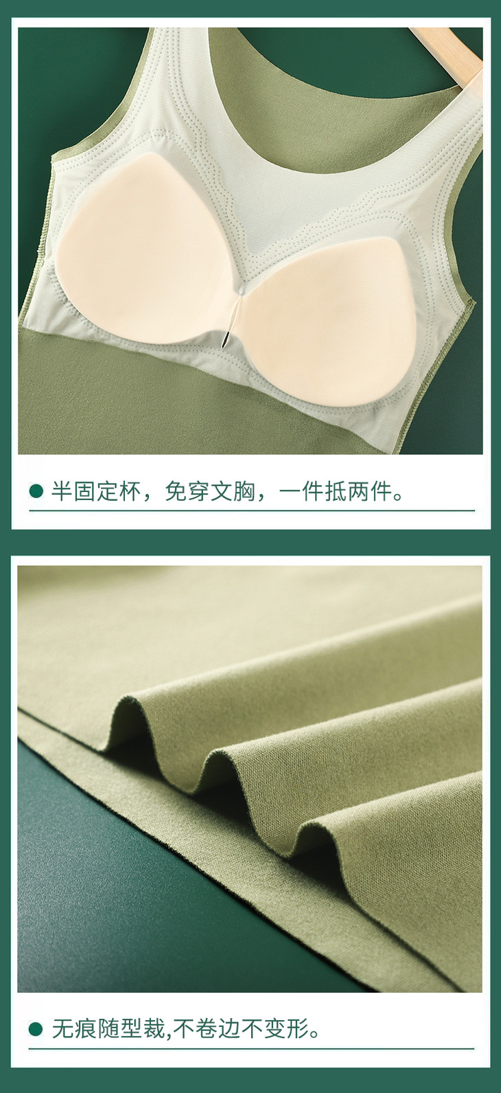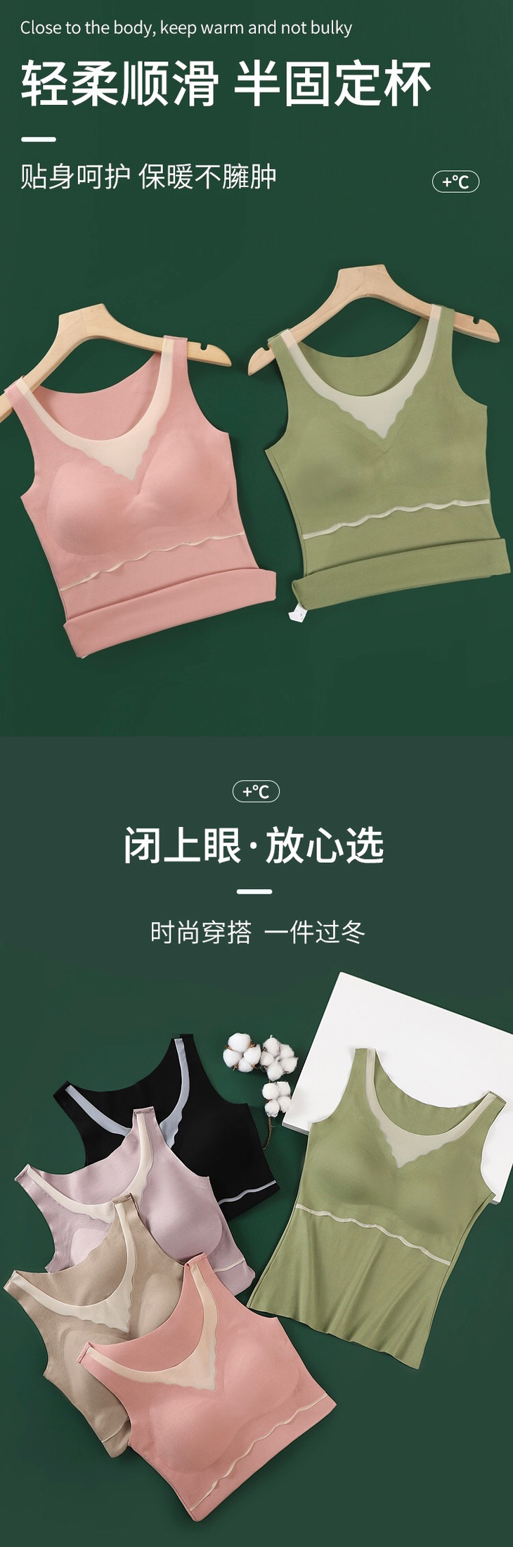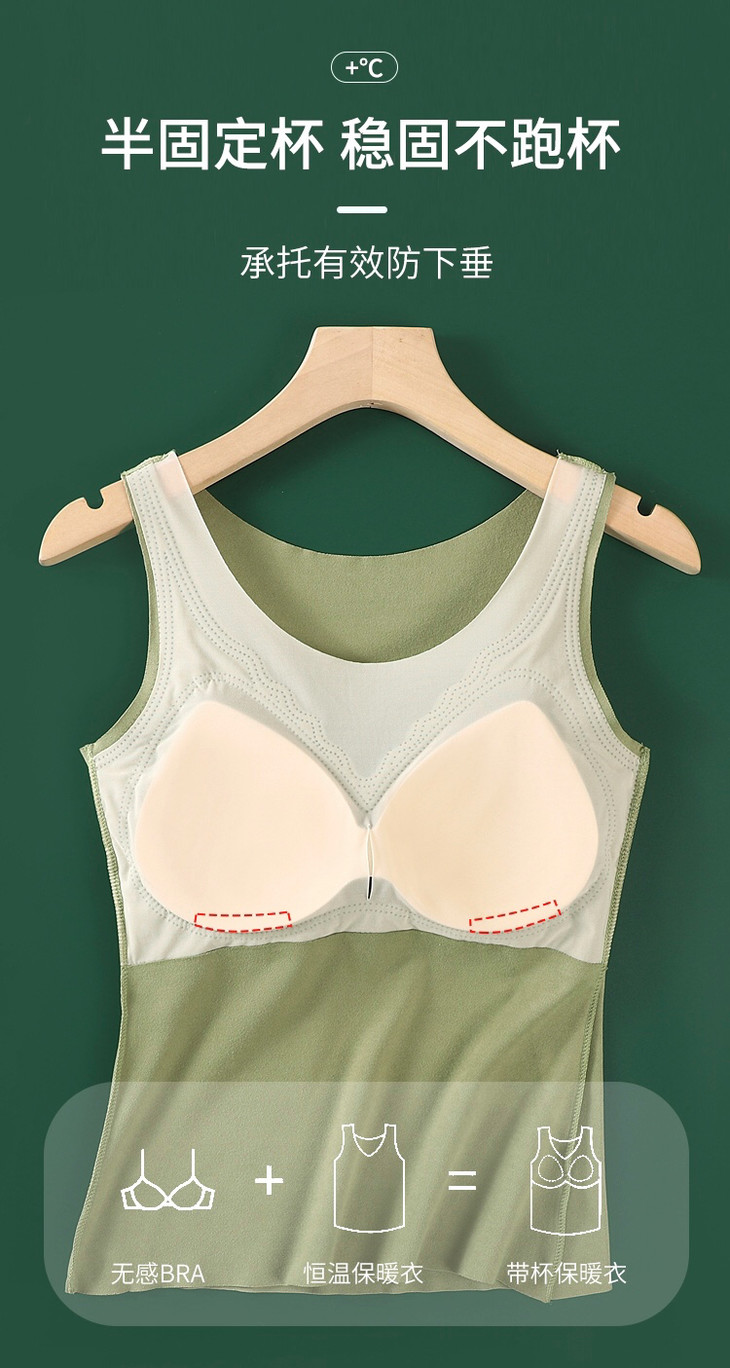 2件更优惠!免穿文胸 锁温自发热秋冬季内穿带胸垫打底吊带内衣可外穿