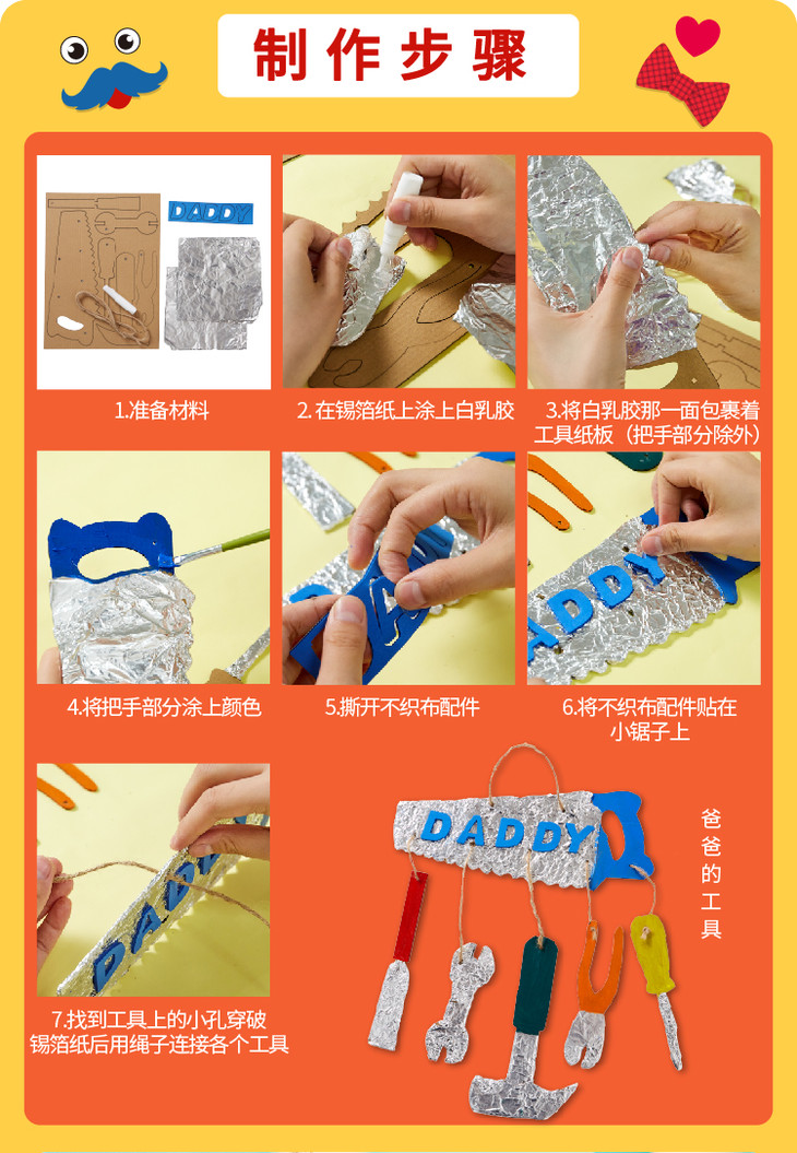 美可父亲节手工diy 爸爸的工具箱幼儿园儿童制作材料包亲子贴画