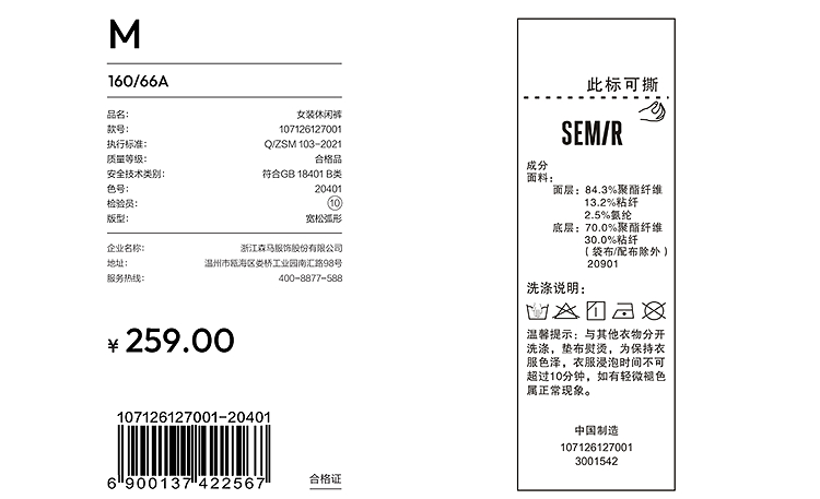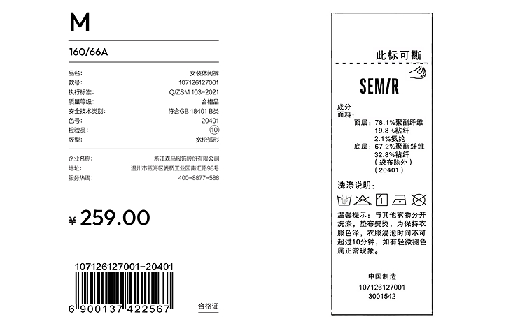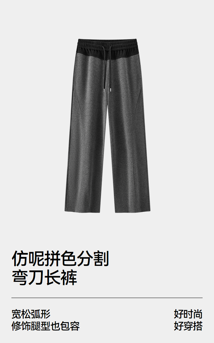 商场同款|森马休闲裤女春季拼色仿呢长裤2026新款简约时尚弯刀裤