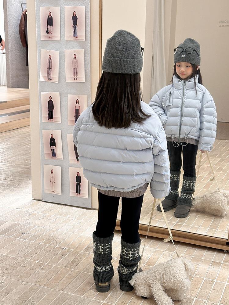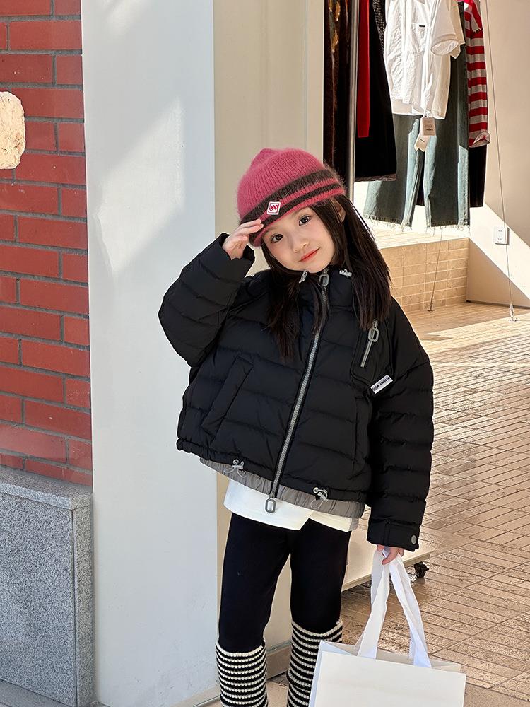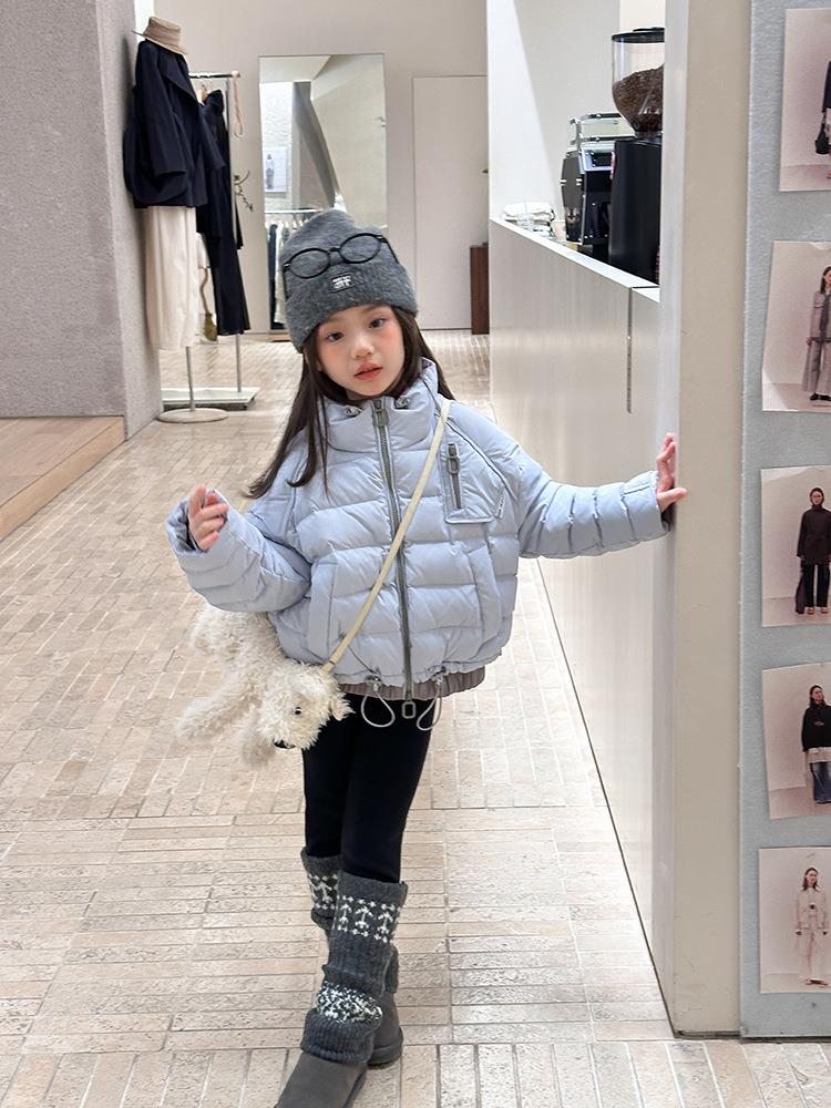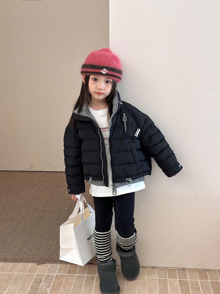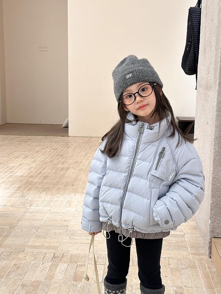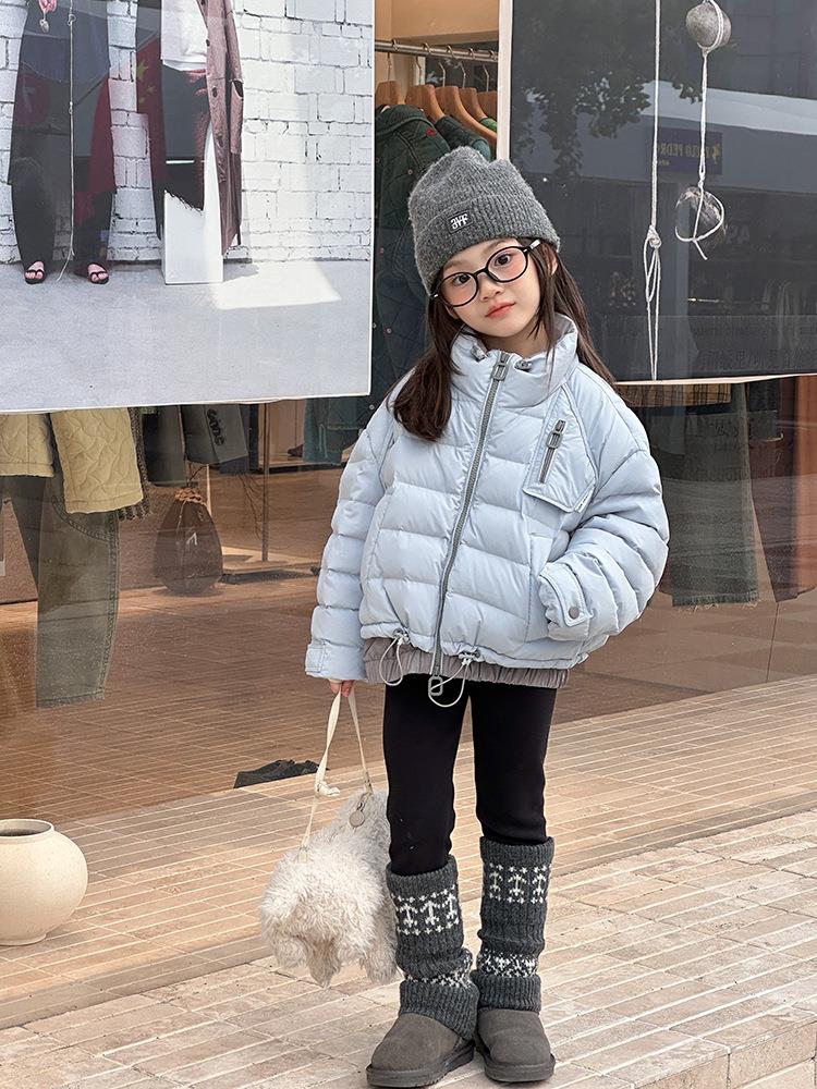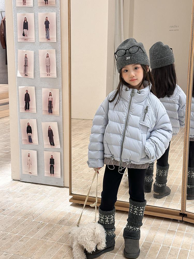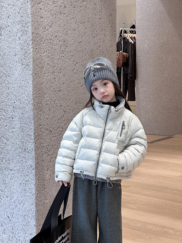 【新国标90%白鸭绒可溯源】女童休闲韩范假2件短款工装立领羽绒服外套