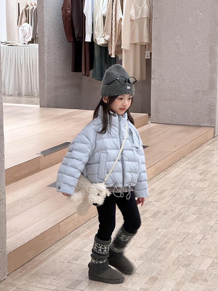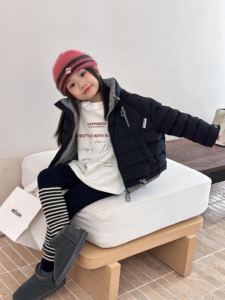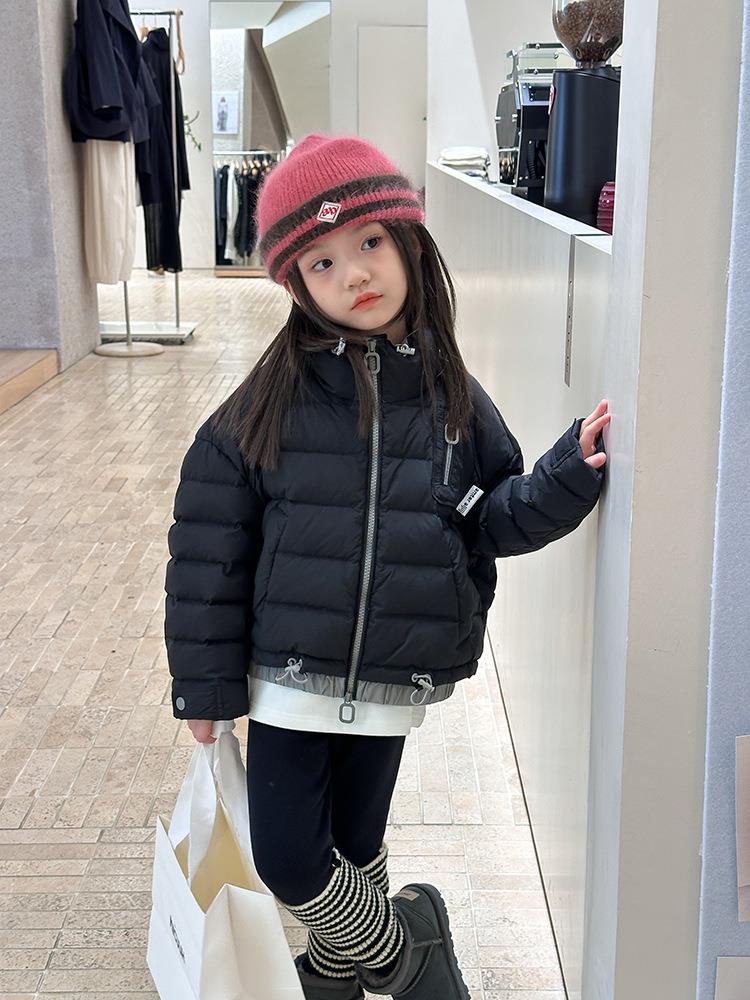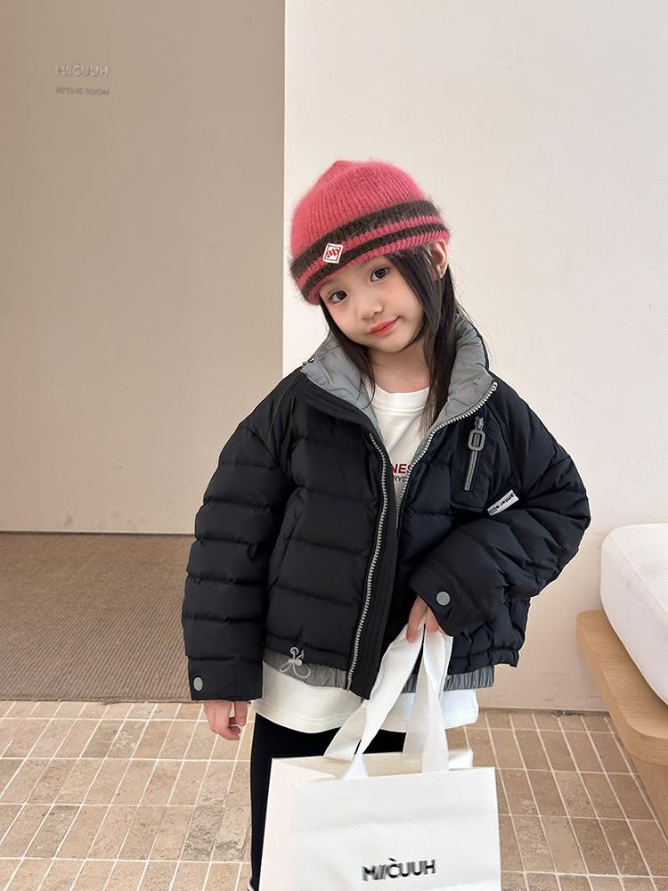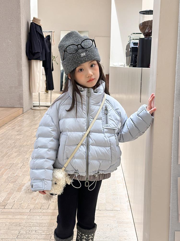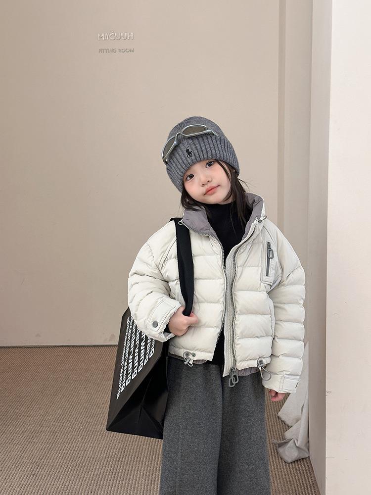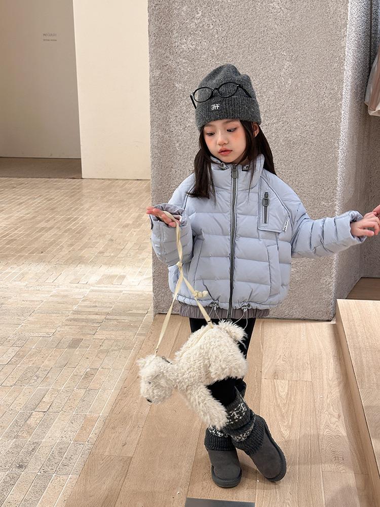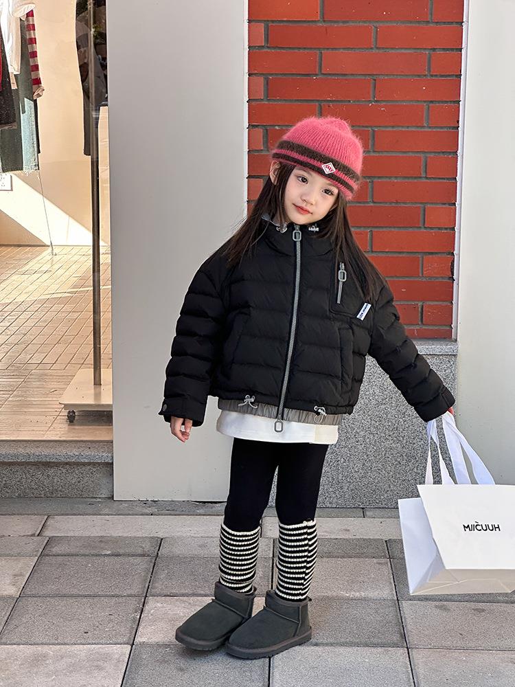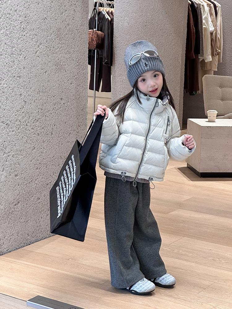 【新国标90%白鸭绒可溯源】女童休闲韩范假2件短款工装立领羽绒服外套