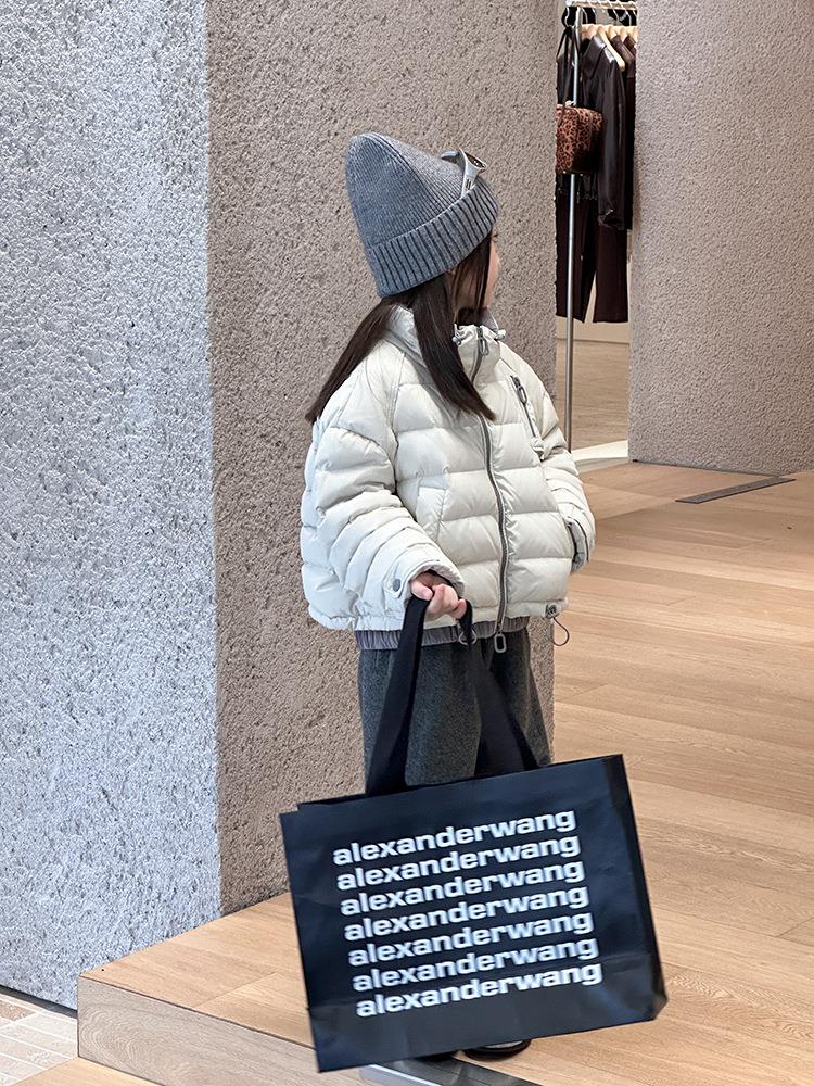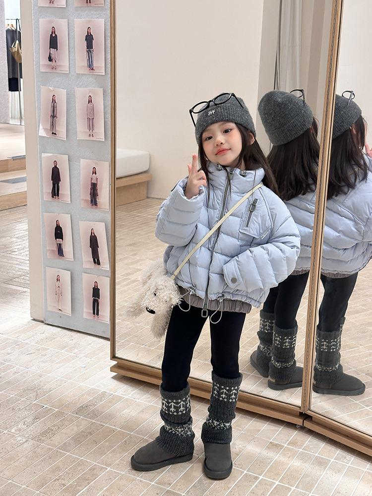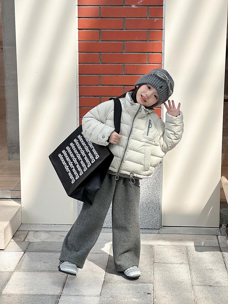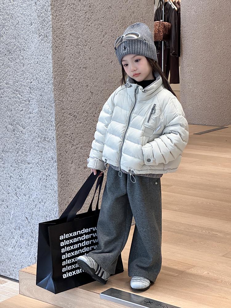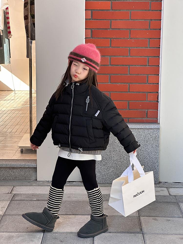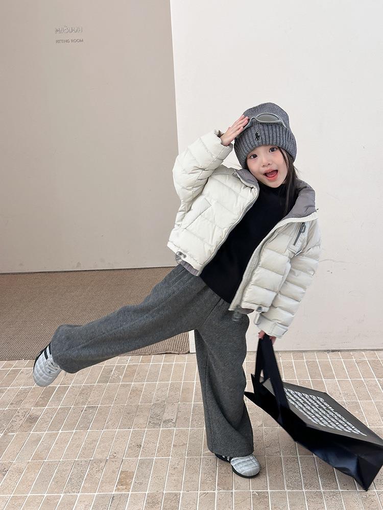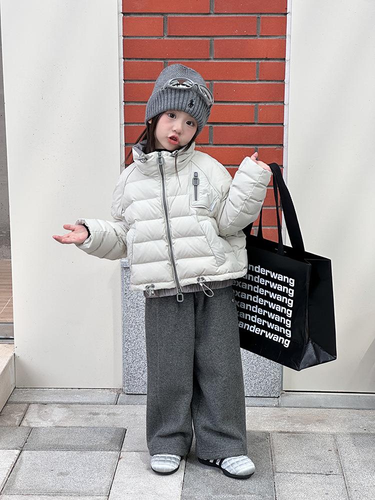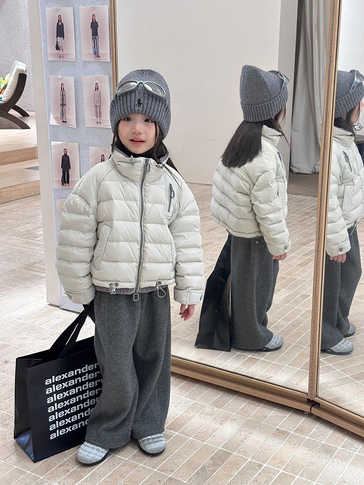 【新国标90%白鸭绒可溯源】女童休闲韩范假2件短款工装立领羽绒服外套