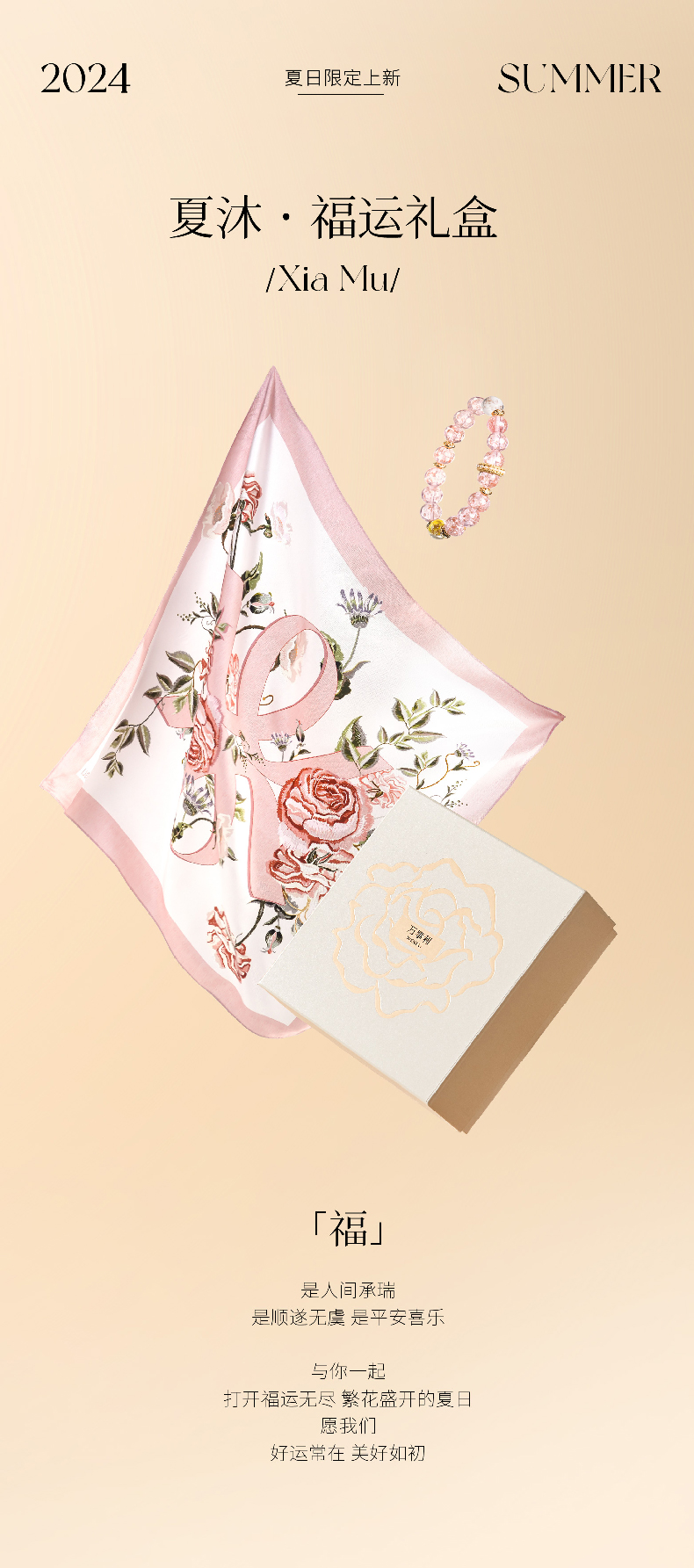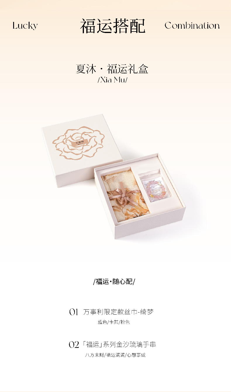 万事利“夏沐”丝巾金沙琉璃手串礼盒