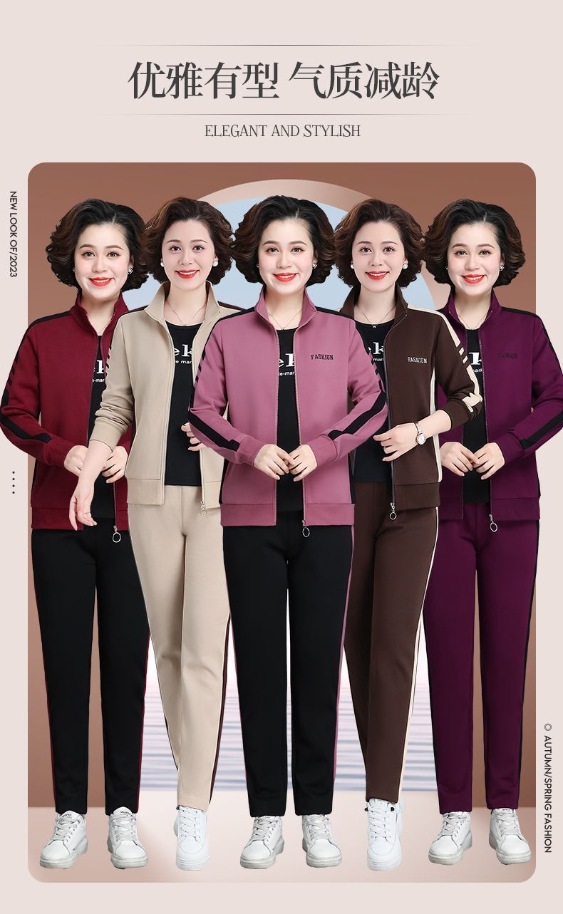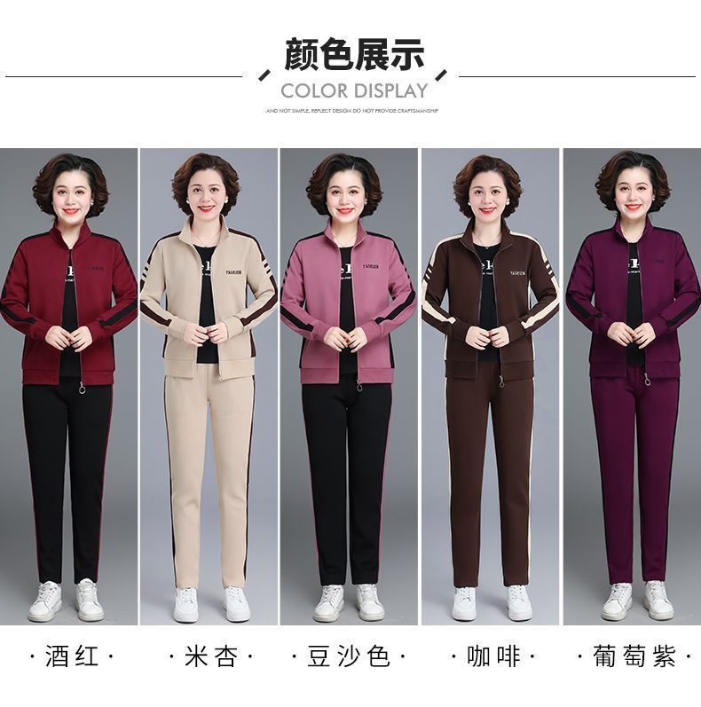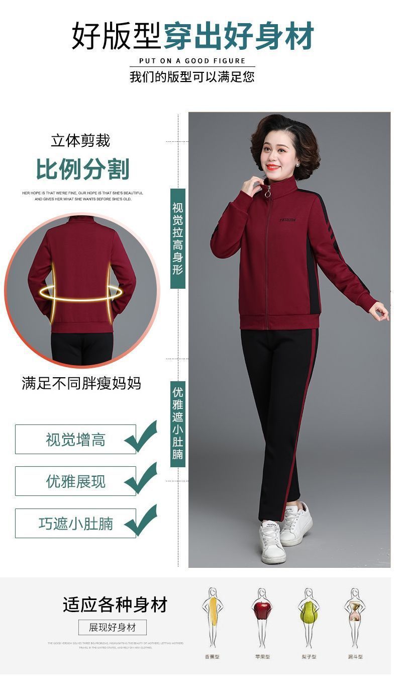 2026新款妈妈装中老年休闲运动服套装女春秋季大码立领卫衣两件套