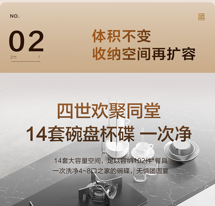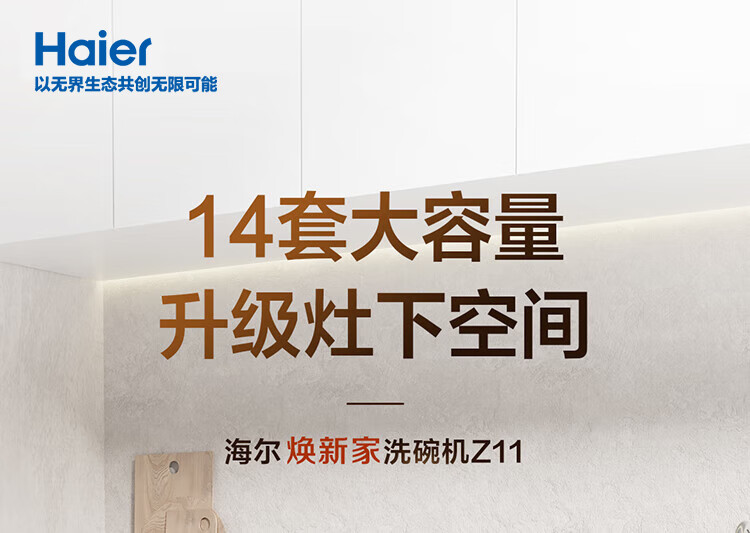 海尔14套嵌入式壁嵌家用洗碗机焕新家Z11 洗消一体 高温除菌 一级水效 智能开门速干EBW14327GHU1