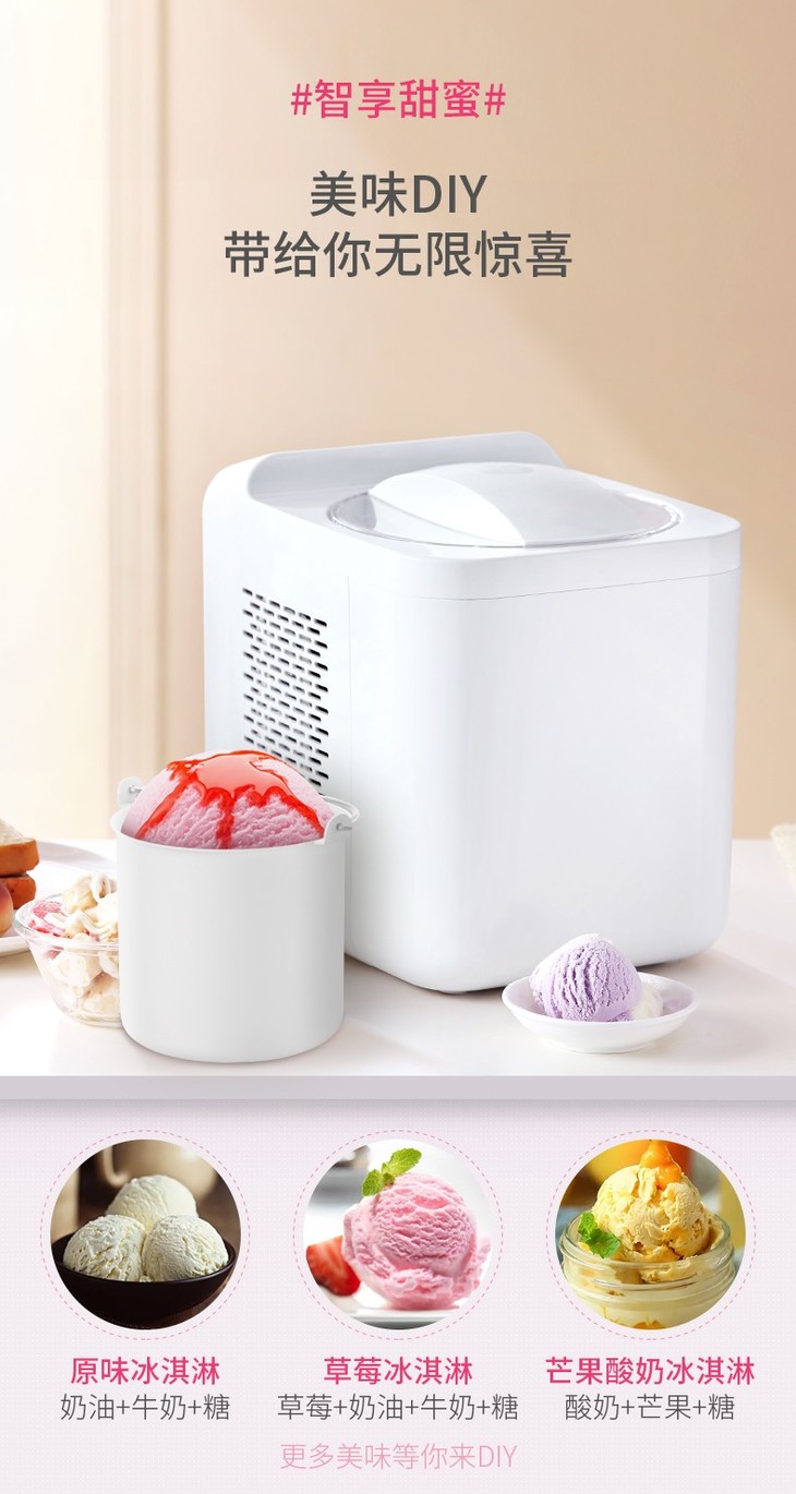 富信(Fuxin)蜜多冰淇淋机酸奶冰激凌机家用全自动自制冷雪糕机 ICM-1000A白色