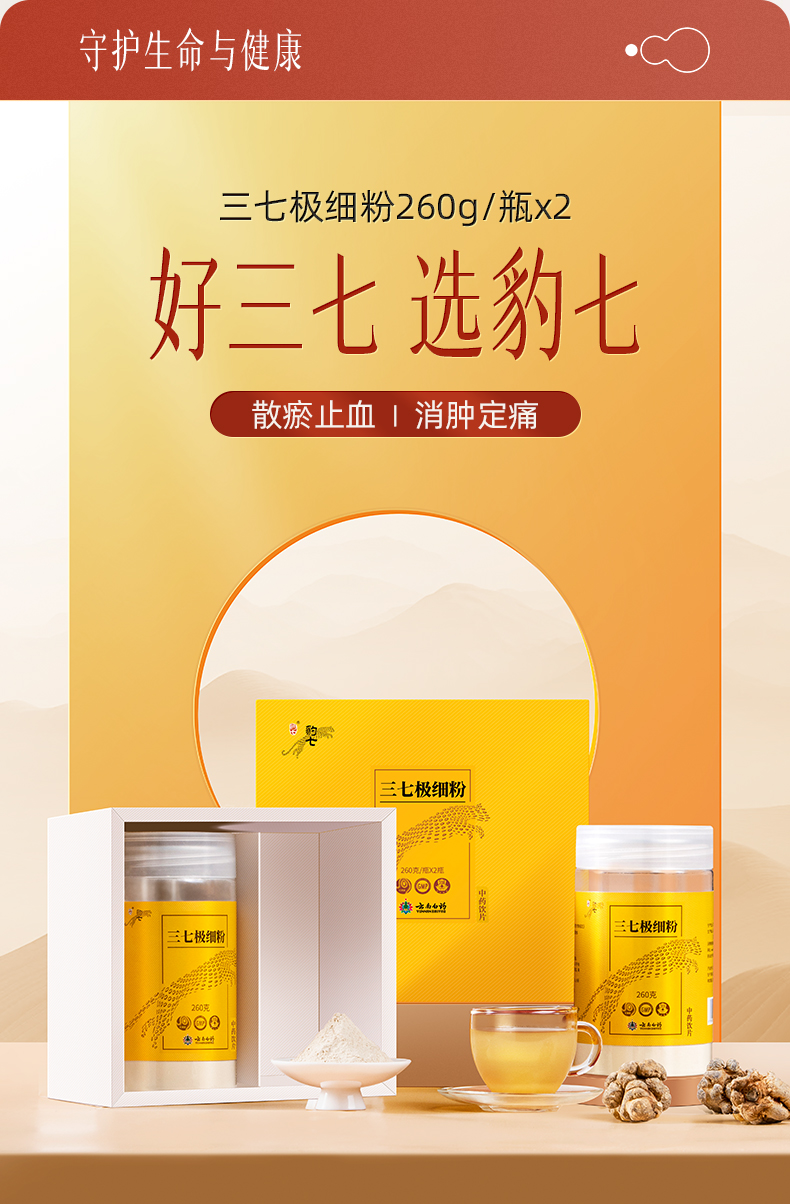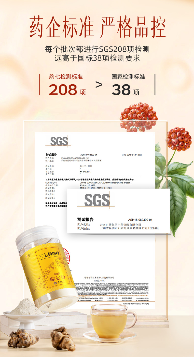 【官方正品】云南白药豹七三七粉520g送礼盒中药材三七极细粉道地文山三七