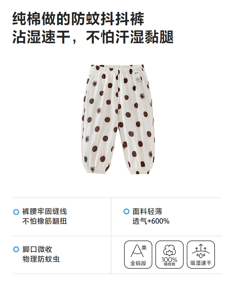 [防蚊抖抖裤]迷你巴拉男女童宝宝裤子2026夏吸湿速干透气轻薄长裤