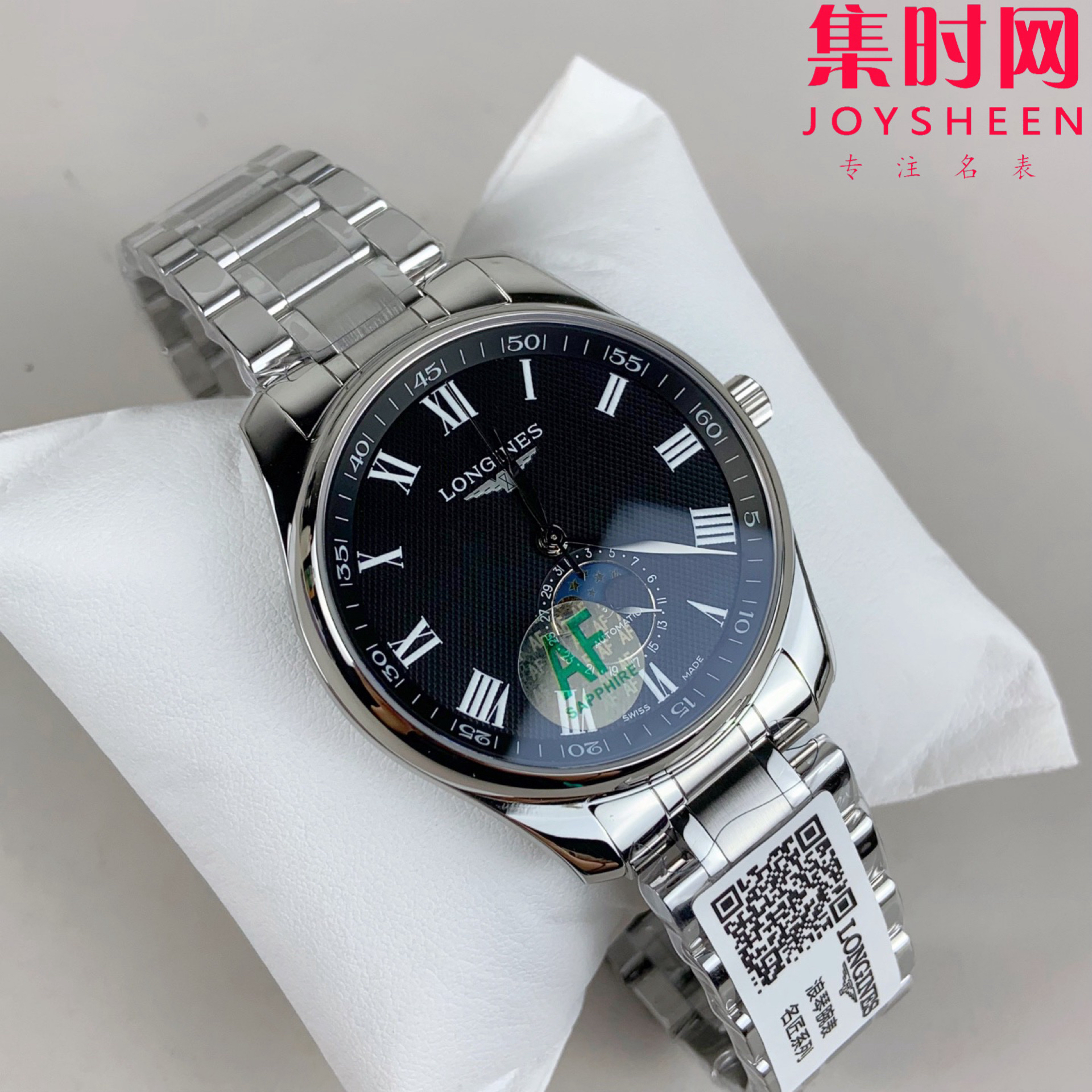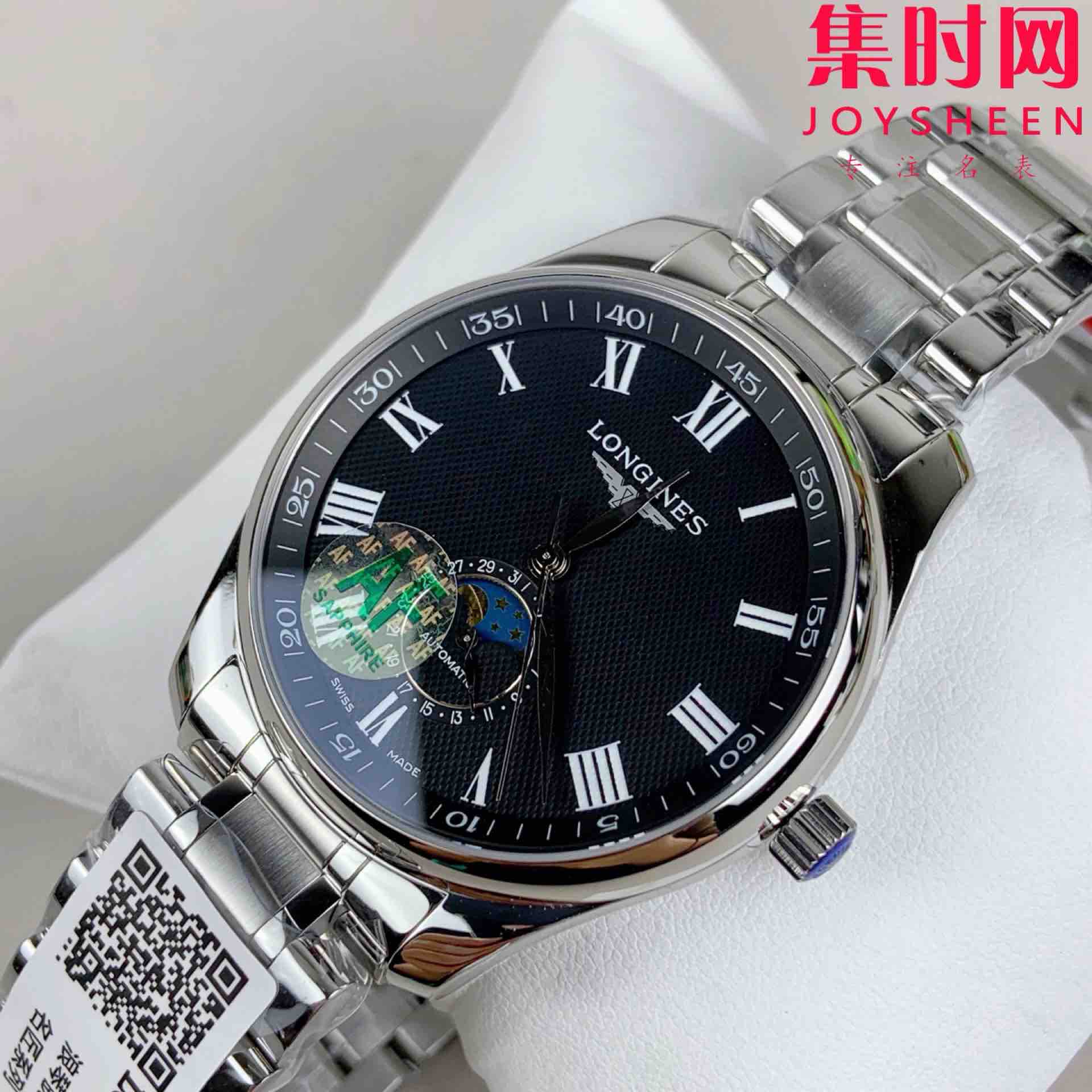 AF浪琴名匠月相系列 四针月相 名匠月相42mm 黑盘罗马面 自动机械 男士腕表