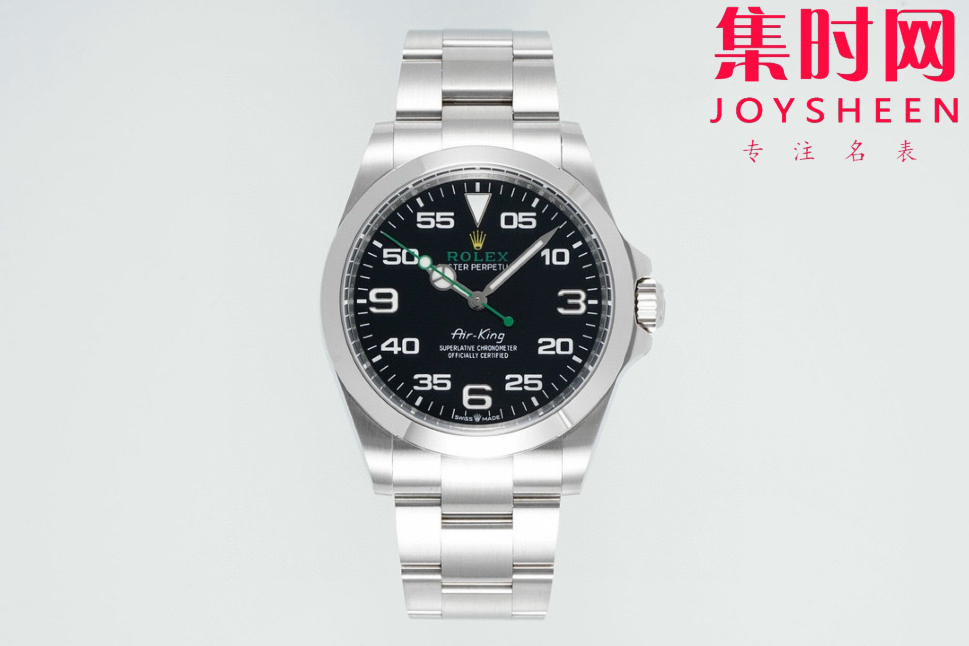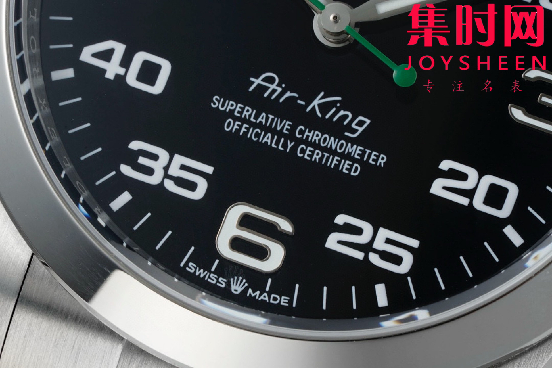直径40毫米的蚝式钢表壳,配备蚝式实心链节表带及富个性黑色表盘,让空中霸王型延续原款劳力士蚝式腕表与航空领域的渊源。