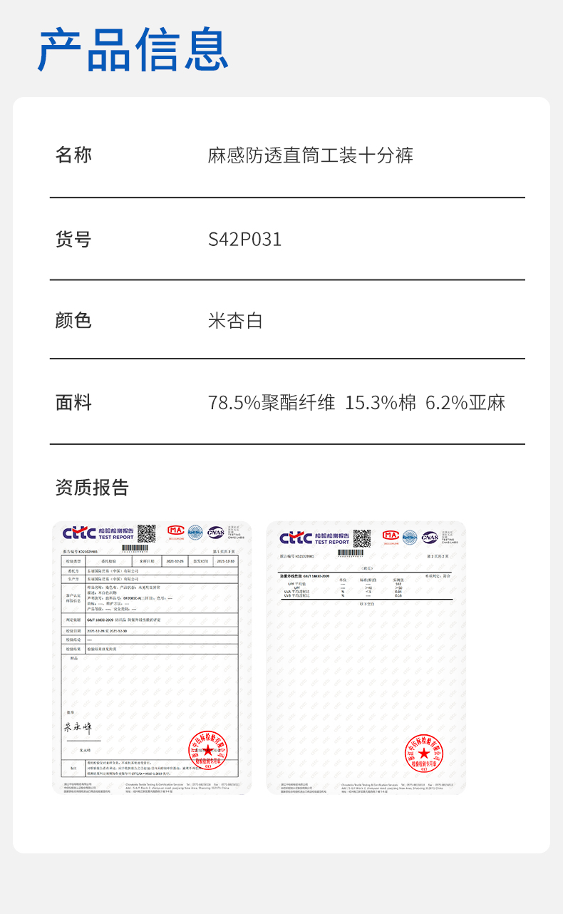 【麻感工装裤】SPS休闲防透不易皱十分直筒裤simplepiecesS42P031