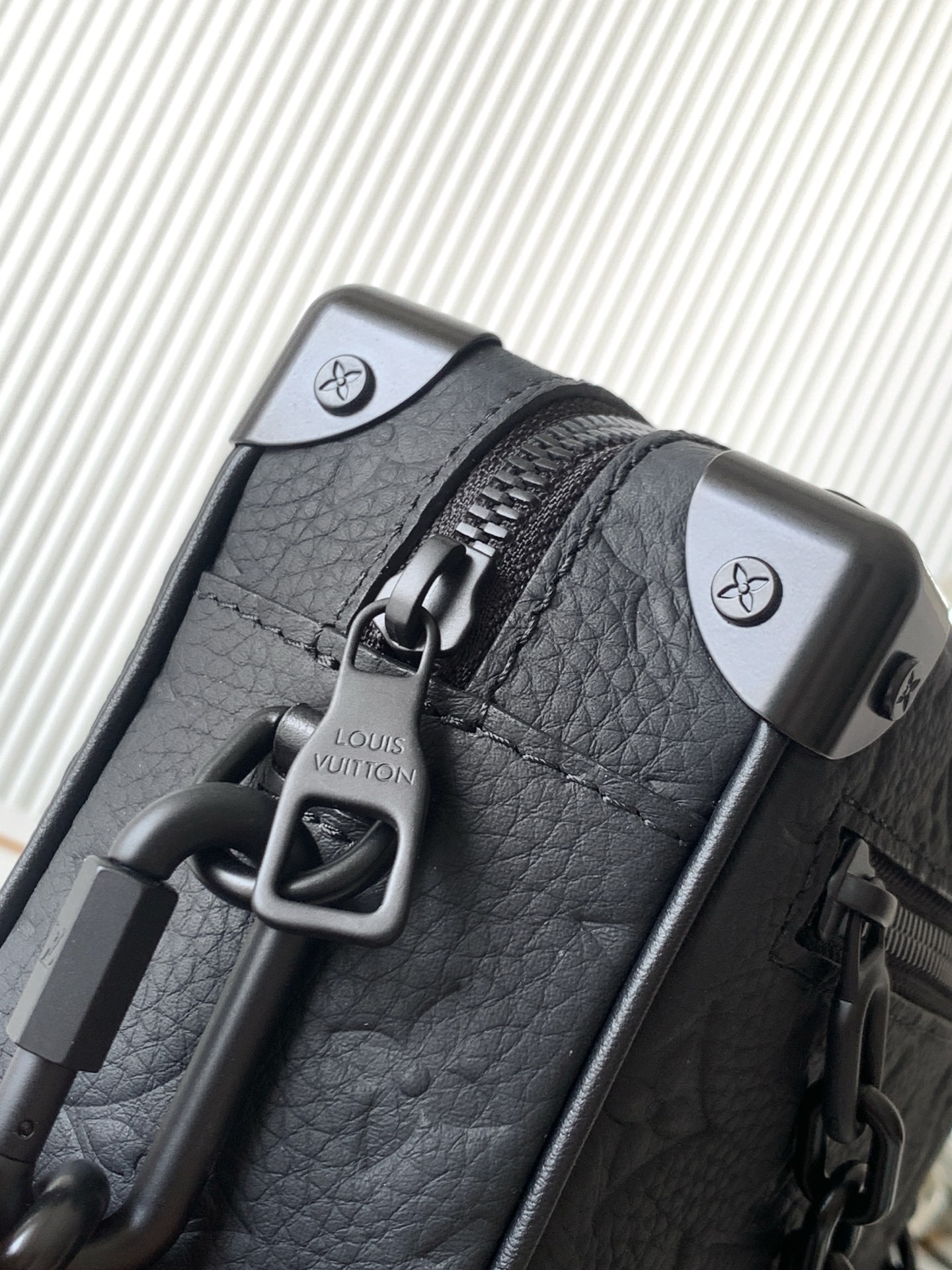 秋冬特惠💰1400 渠道级LV【全钢五金 MB163c01变码芯片】te级LV 全套包装 M55702全皮压花 Soft Trunk 迷你手袋取材压印Monogram图案的Taurillon皮革,搭配铆钉边角和四方造型,承袭路易威登传统硬箱设计之韵。一条哑光链条与拉链衔接,另一条巧妙融入肩带,为精巧设计注入摩登魅力。尺寸:18.5 x 13 x 8厘米(长度x高x宽) Taurillon 牛皮革织物内衬牛皮革饰边哑光金属件拉链外袋内贴袋