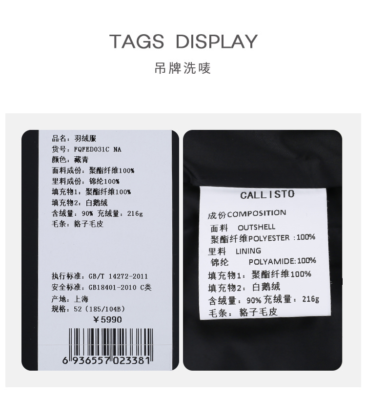 callisto藏青聚酯纤维羽绒服 FQFED031C