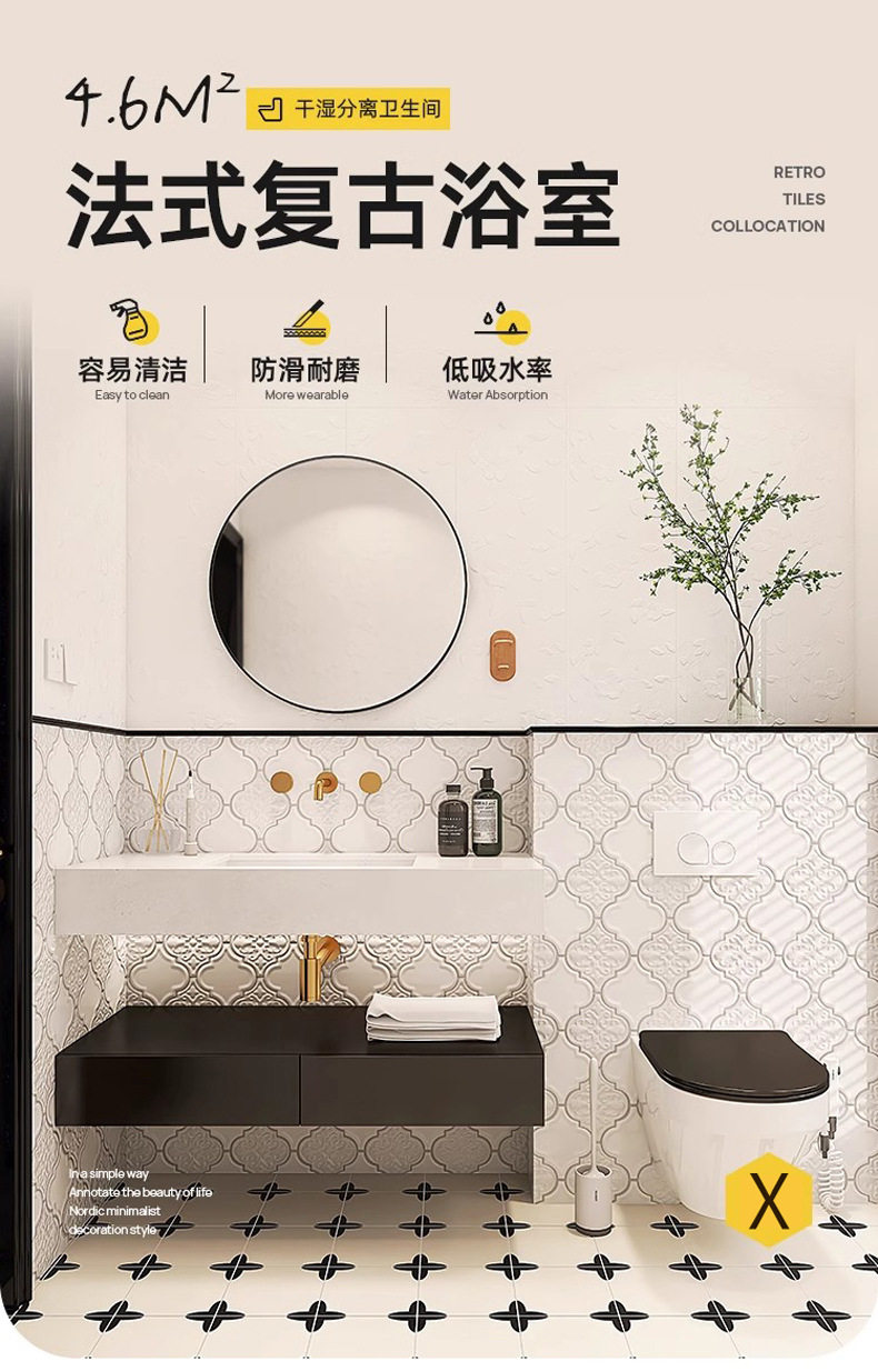 墙砖花砖复古瓷砖浴室卫生间地砖立体浮雕厕所法式暗纹瓷砖 商品缩略图0 墙砖花砖复古瓷砖浴室卫生间地砖立体浮雕厕所法式暗纹瓷砖 商品缩略图1 墙砖花砖复古瓷砖浴室卫生间地砖立体浮雕厕所法式暗纹瓷砖 商品缩略图2 墙砖花砖复古瓷砖浴室卫生间地砖立体浮雕厕所法式暗纹瓷砖 商品缩略图3 墙砖花砖复古瓷砖浴室卫生间地砖立体浮雕厕所法式暗纹瓷砖 商品缩略图4