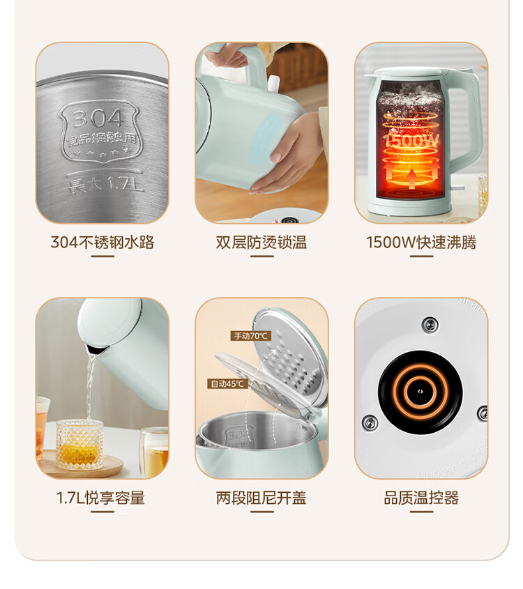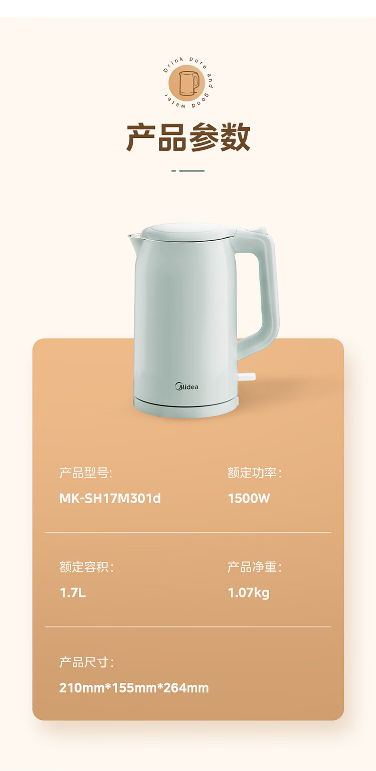 美的 食品级304不锈钢电水壶MK-SH17M301d 【包邮直发】