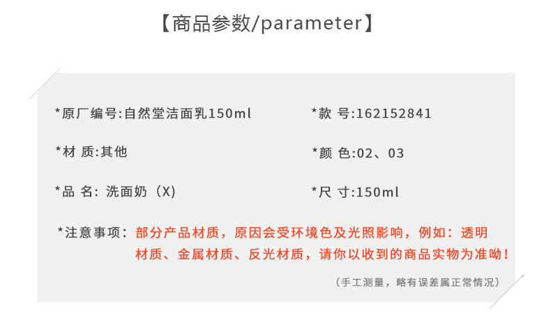 纪念日百货自然堂保湿舒缓洁面乳150ml洗面奶162152841