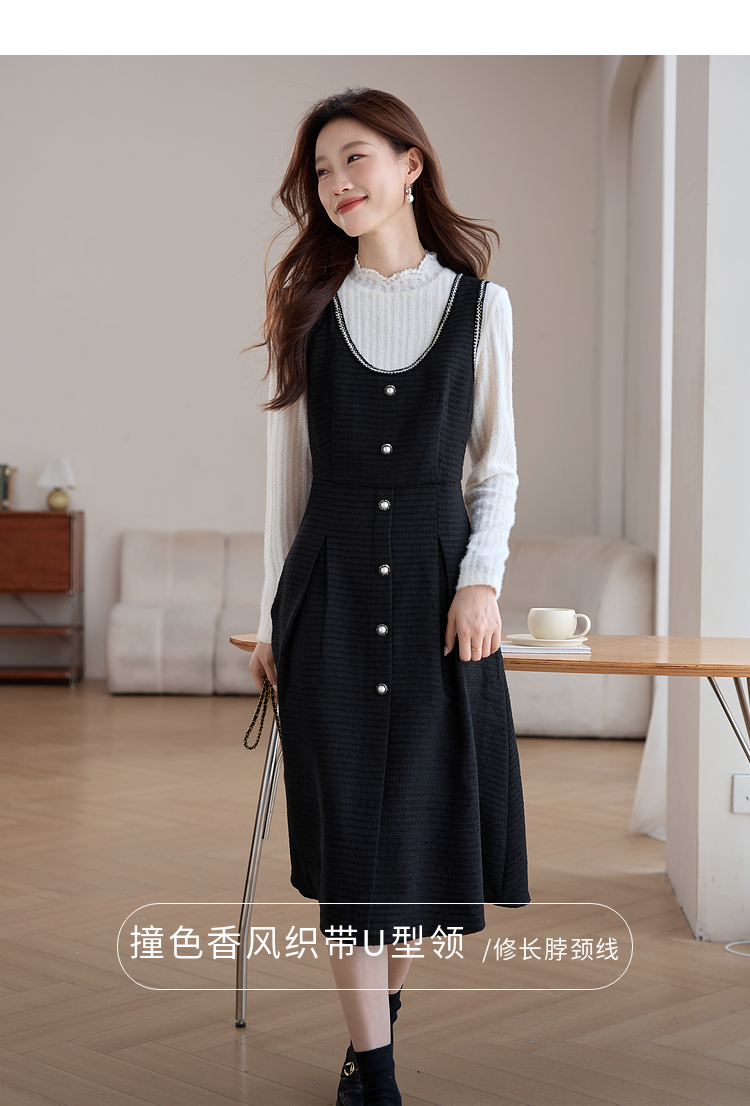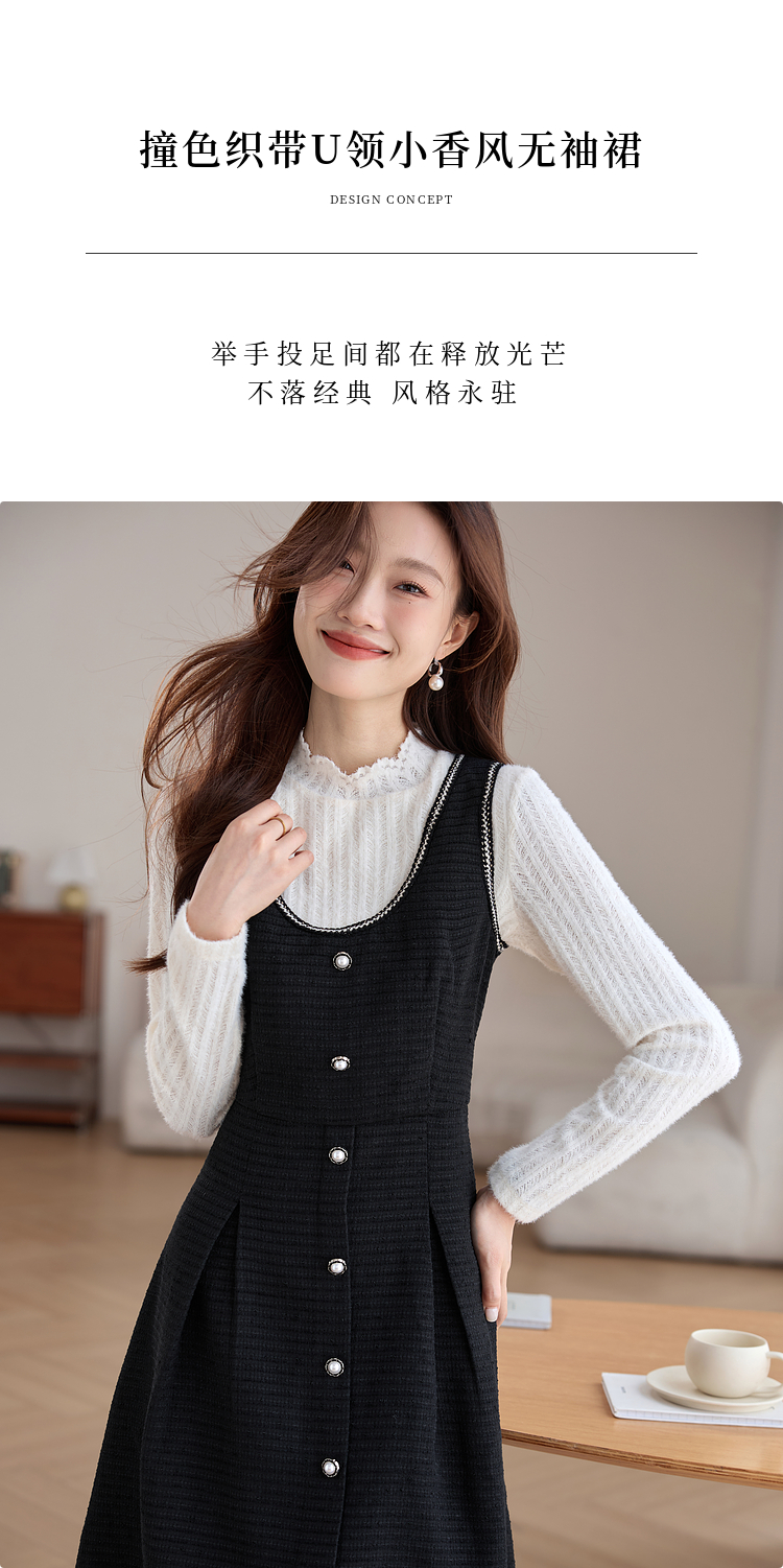 【年终特卖】熙世界法式小香风U领无袖连衣裙女秋冬2025新款粗花呢吊带背心裙