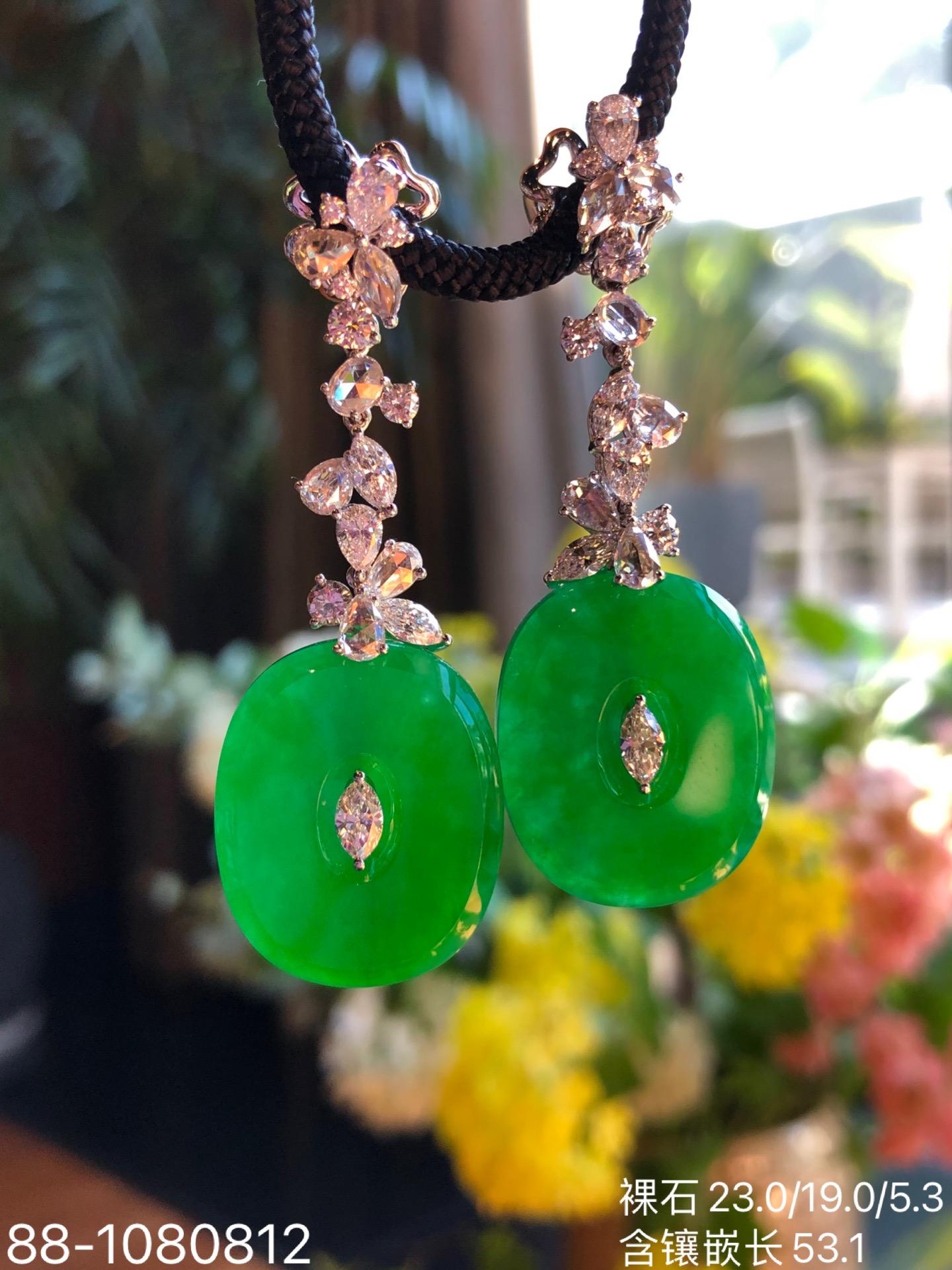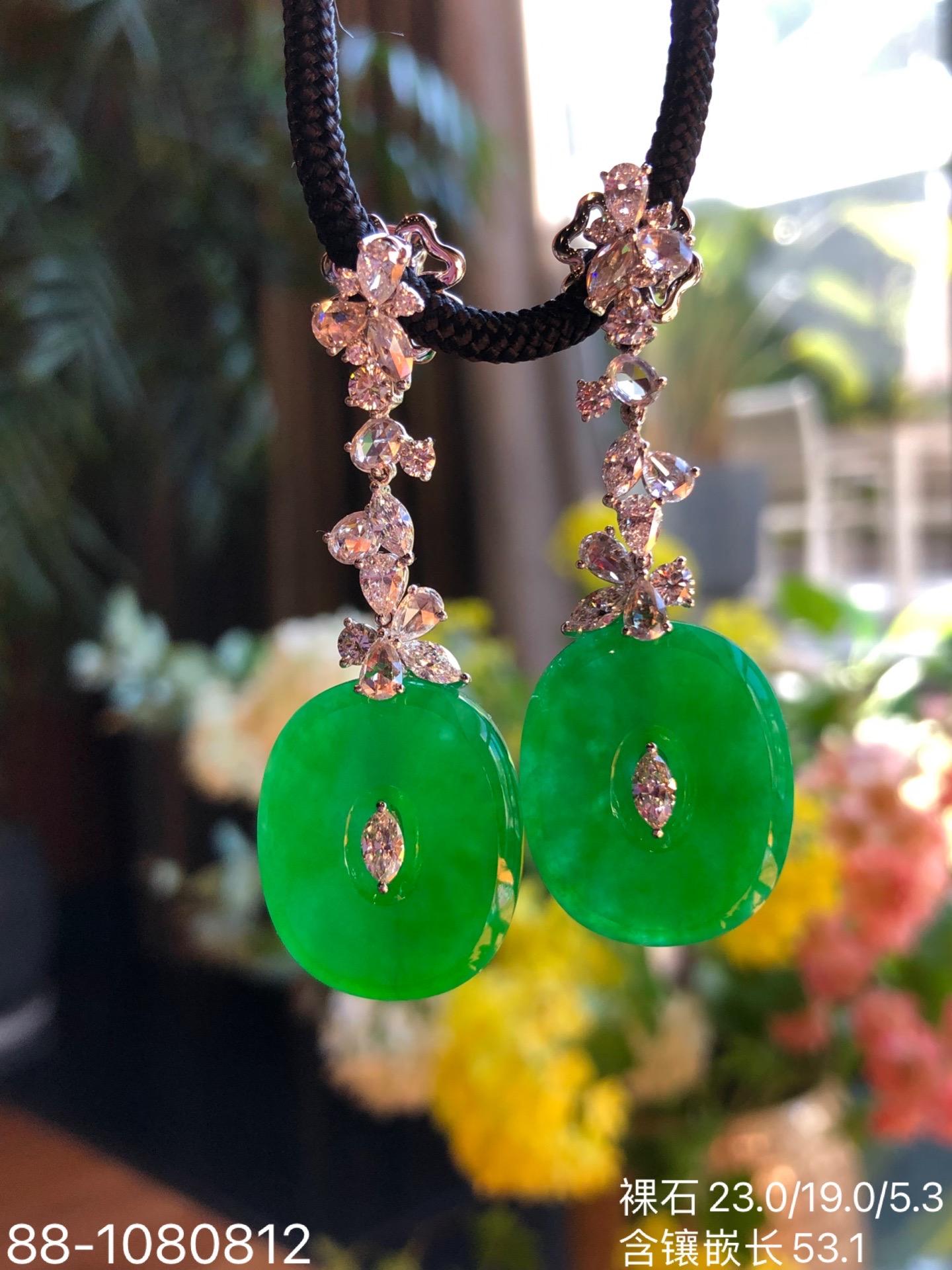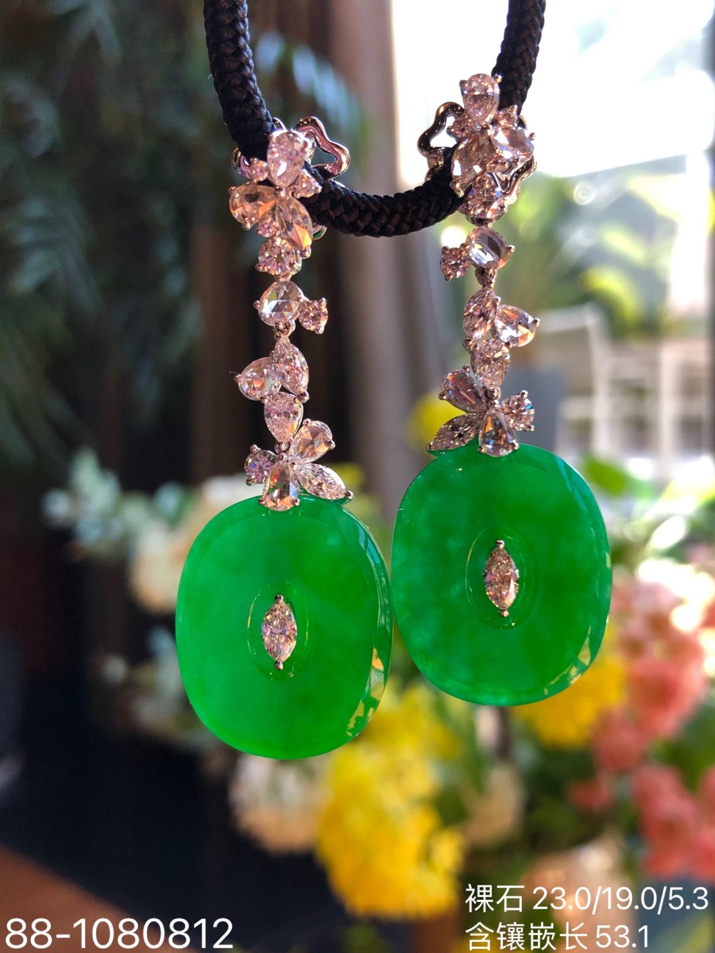 老坑艳绿平安扣耳坠 【88-1080812】具体价格微信咨询