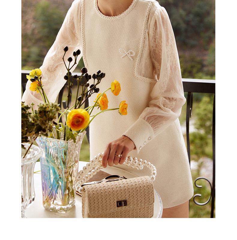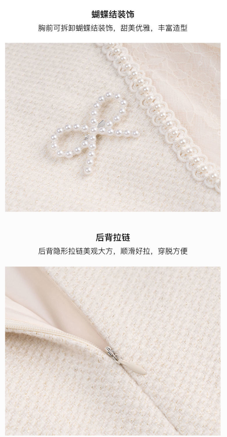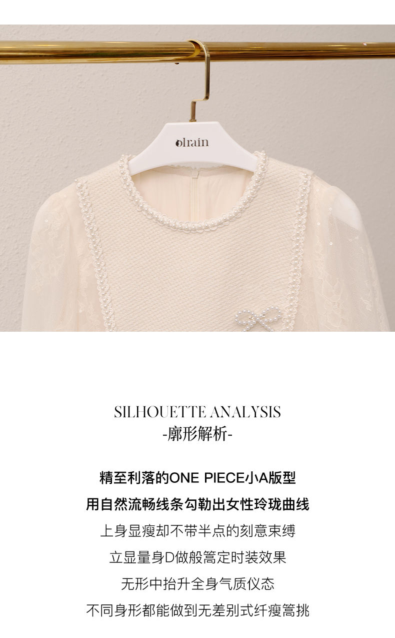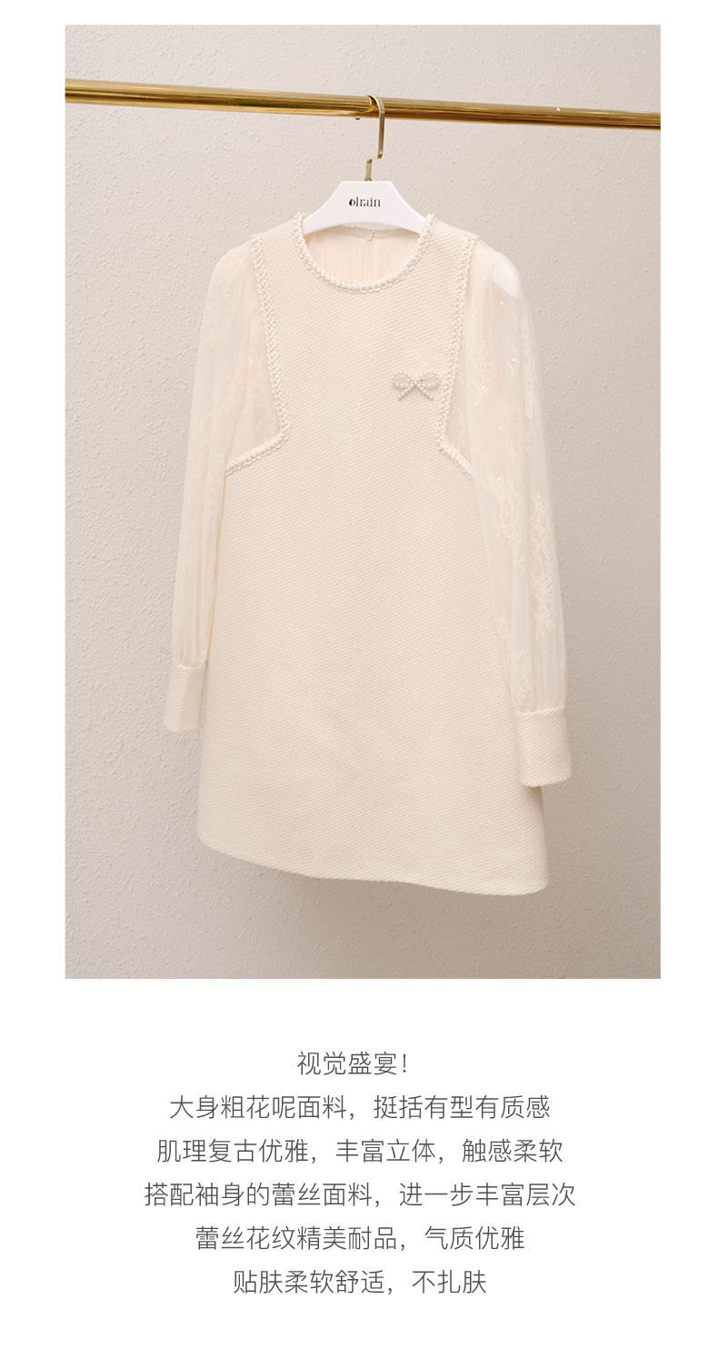 欧芮儿小香风连衣裙女春季2022年新款收腰显瘦绣花蕾丝拼接甜美裙