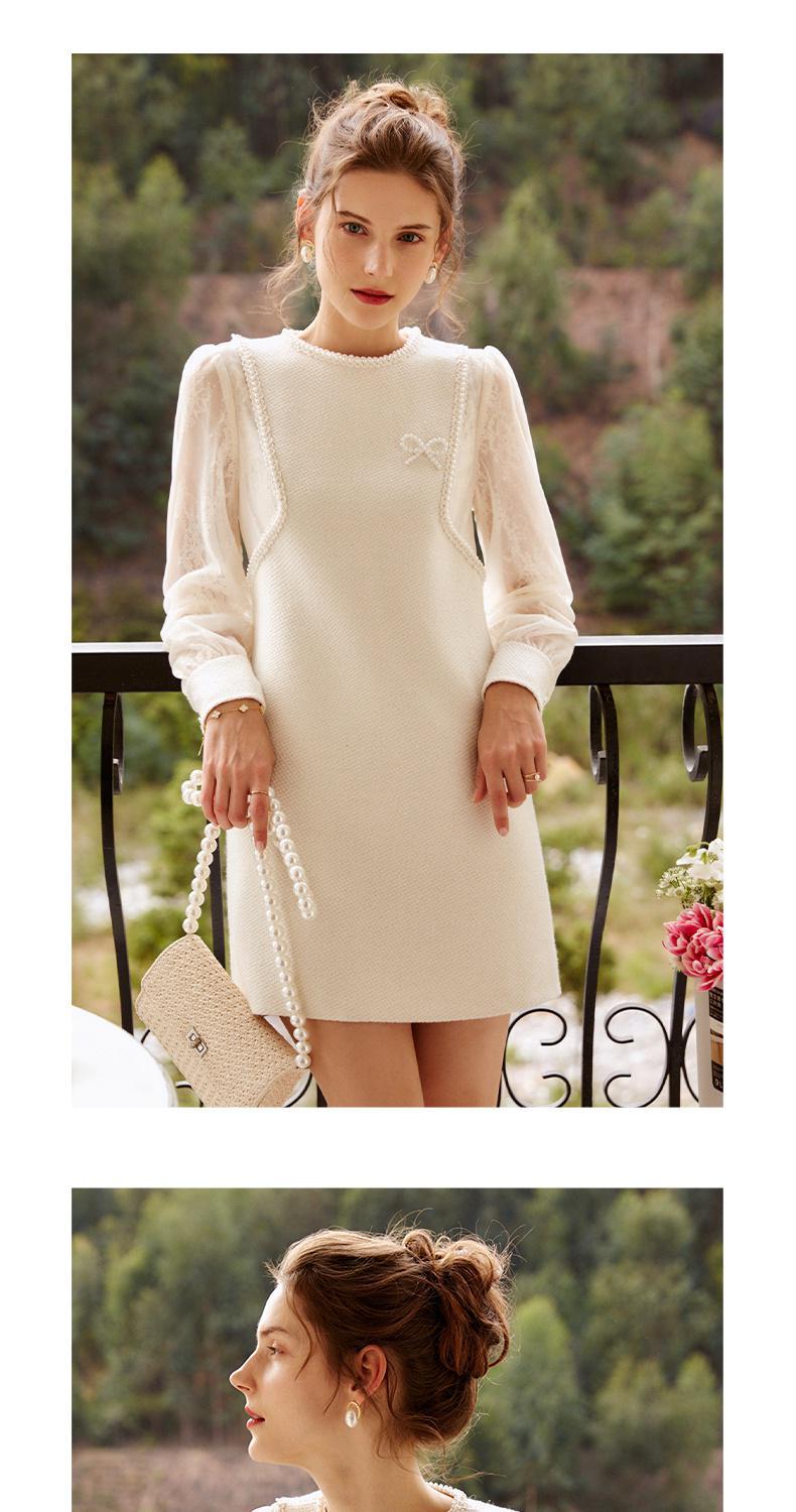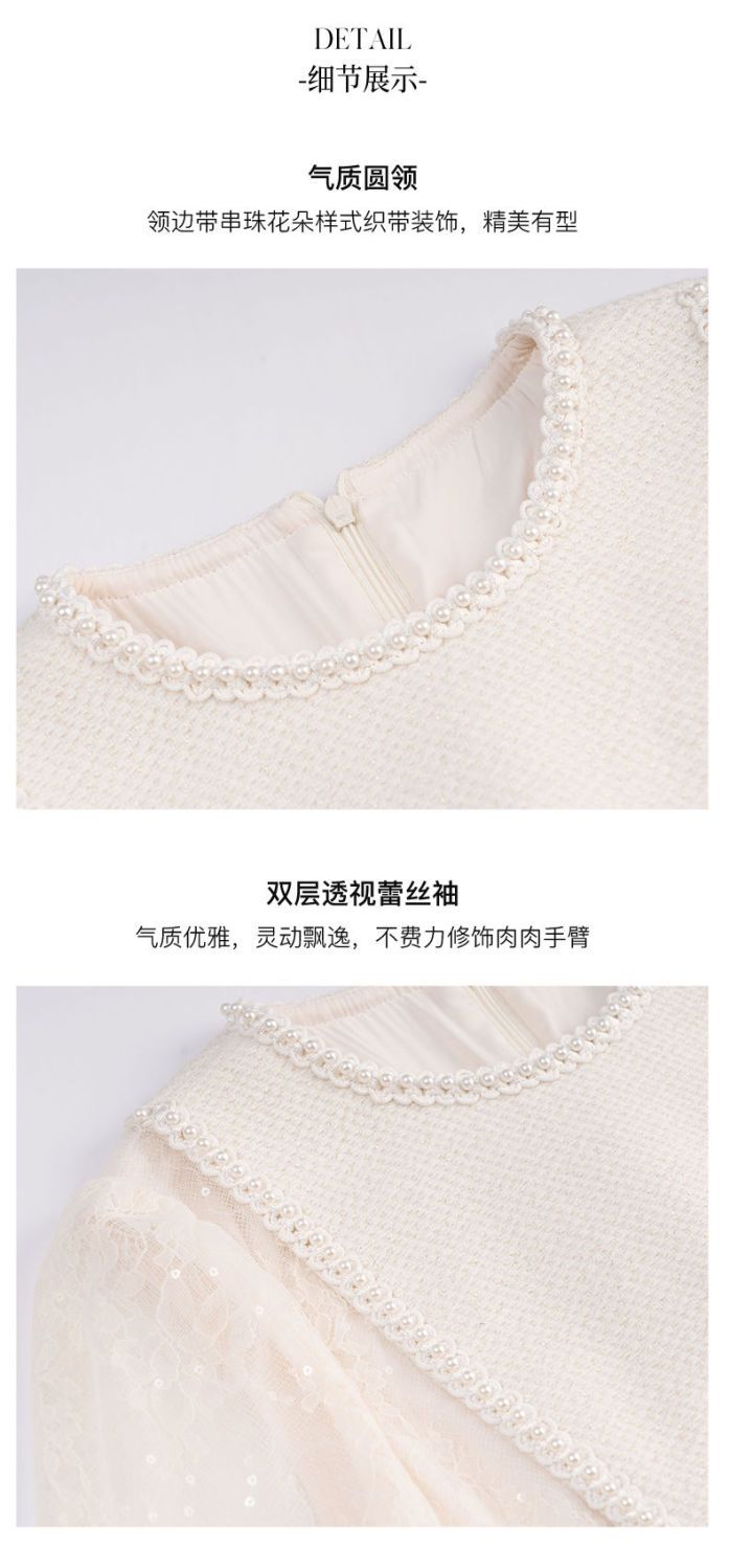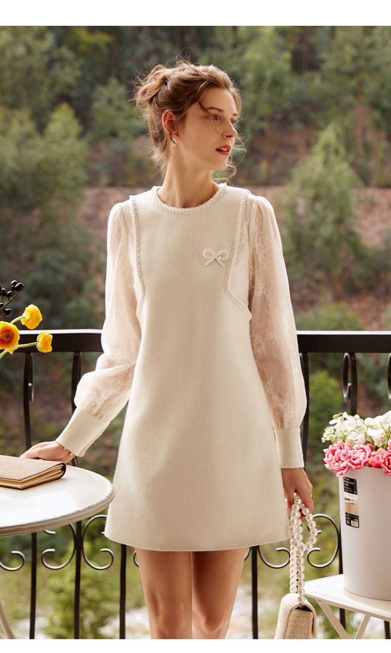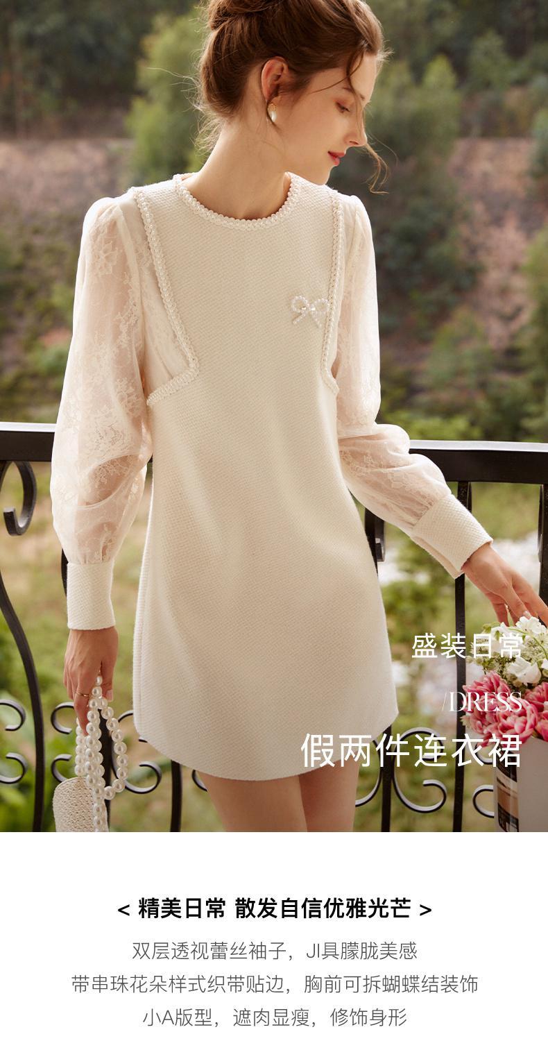 欧芮儿小香风连衣裙女春季2022年新款收腰显瘦绣花蕾丝拼接甜美裙