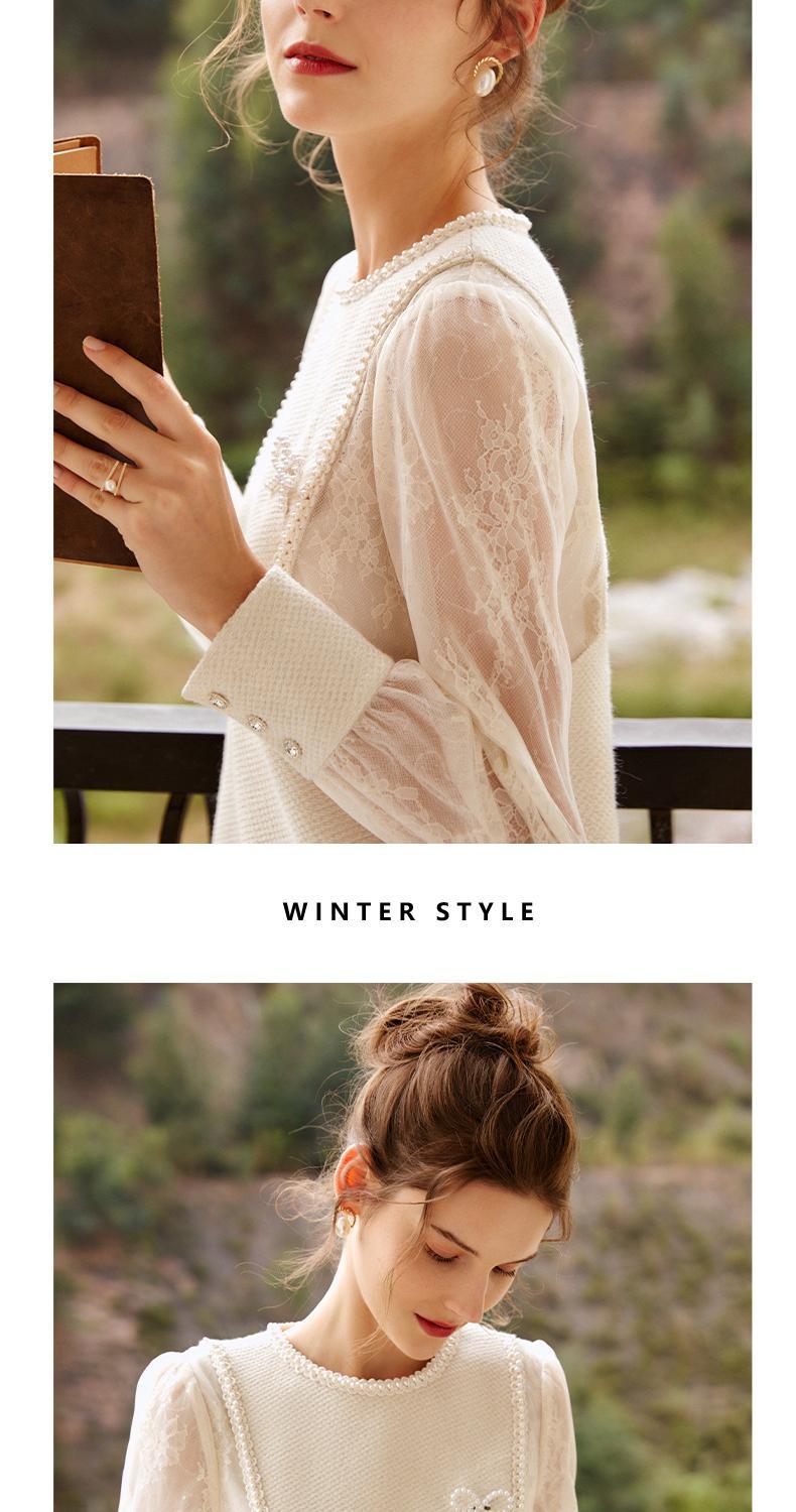 OLrain欧芮儿白色V领T恤女冬季2024年新款法式设计感蕾丝长袖上衣