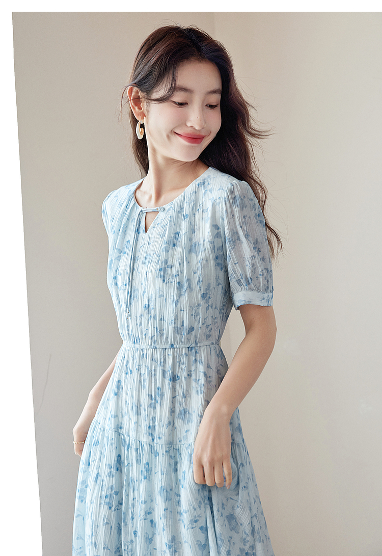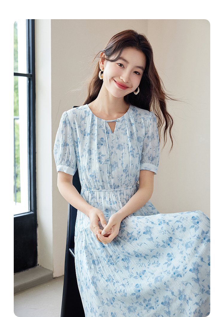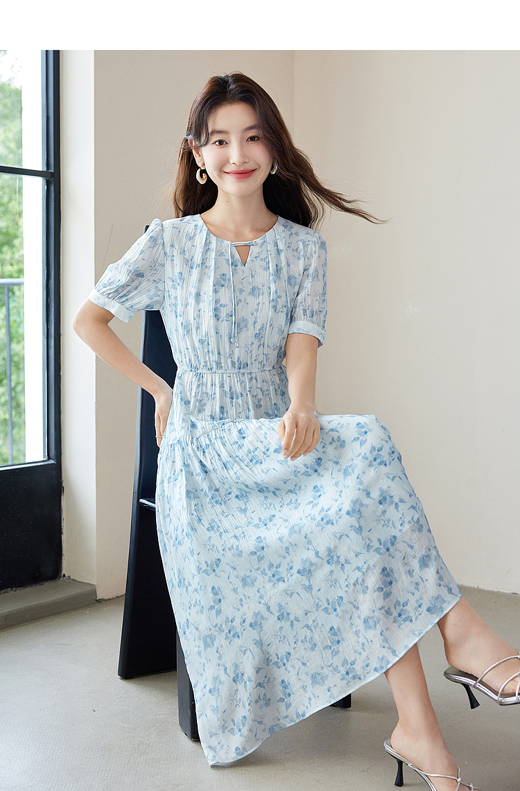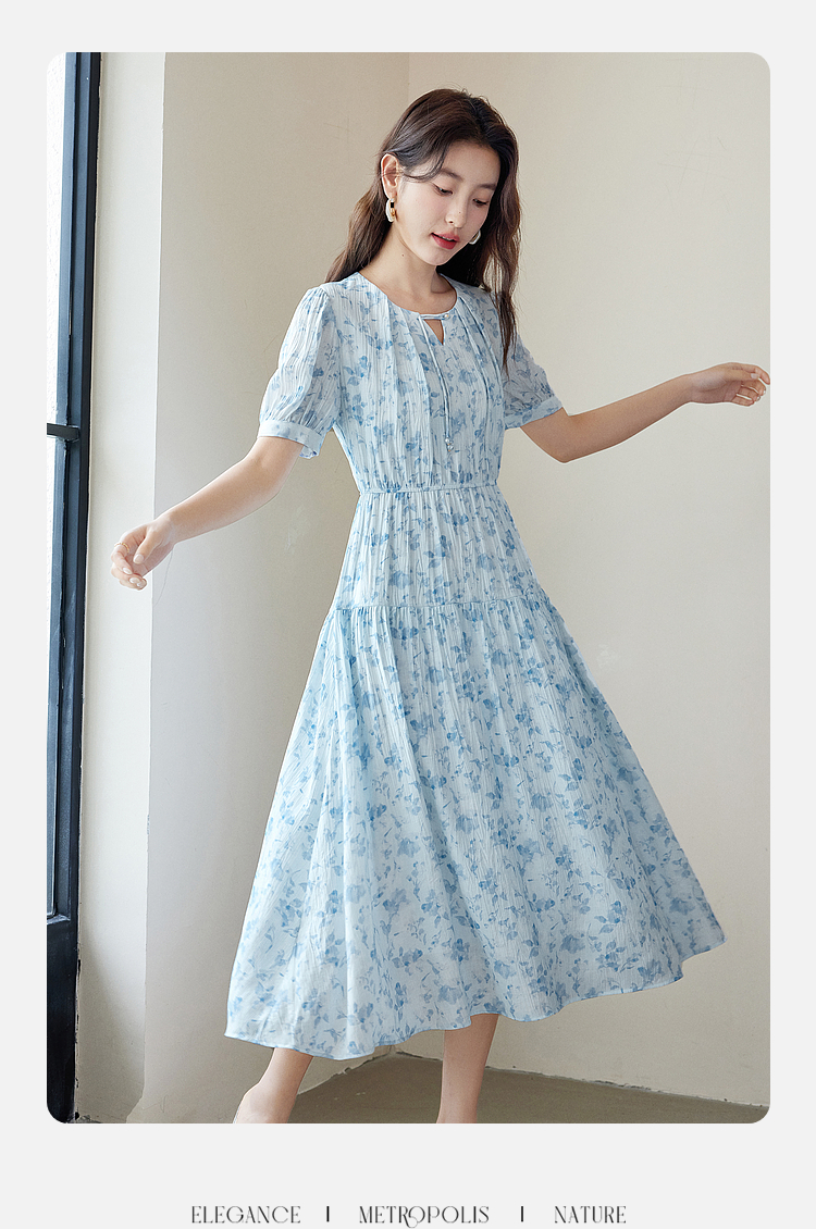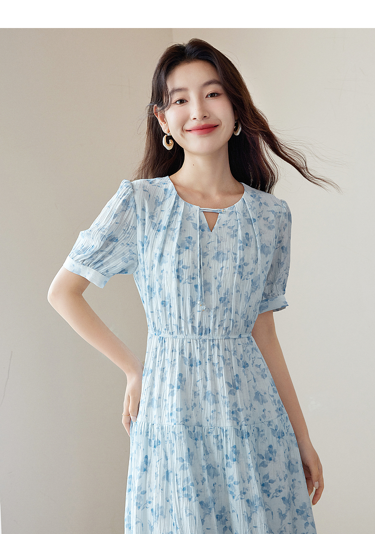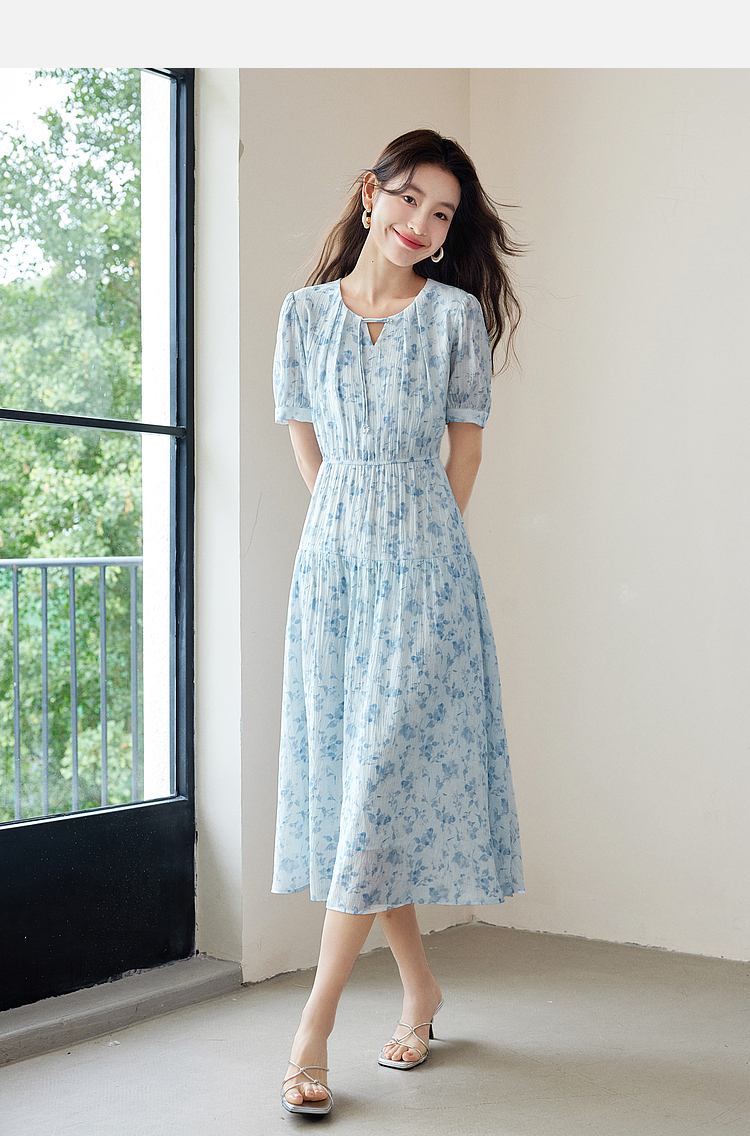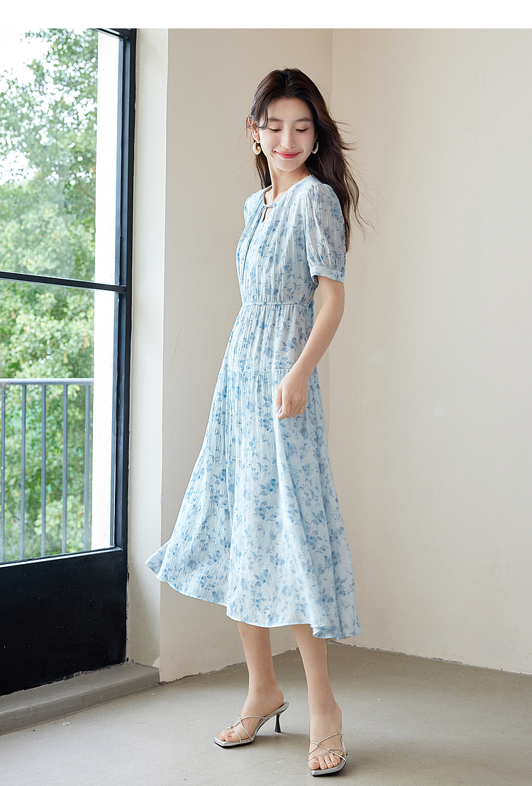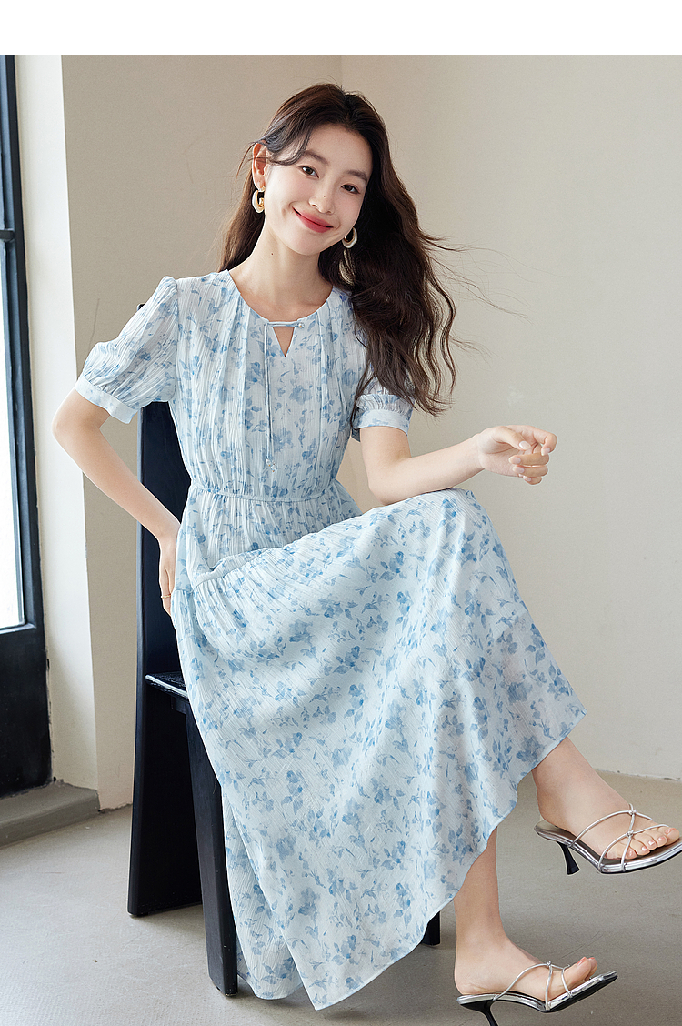 【专属特价】熙世界浪漫气质雪纺碎花连衣裙2025夏季新款高腰显瘦泡泡袖裙子