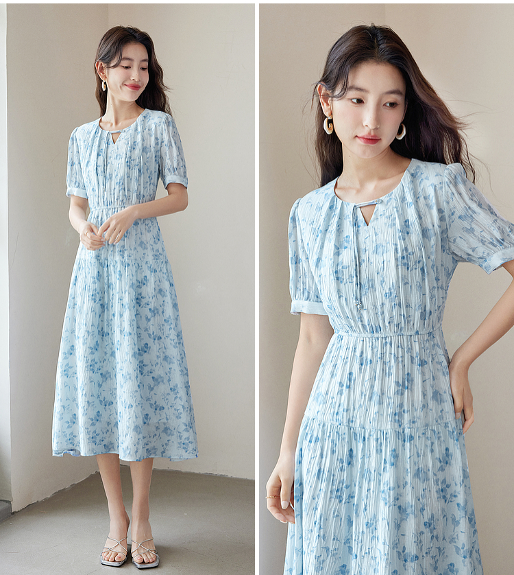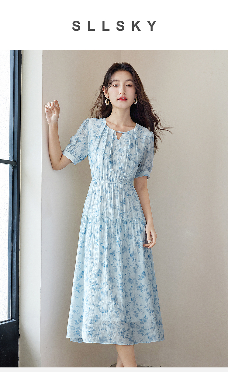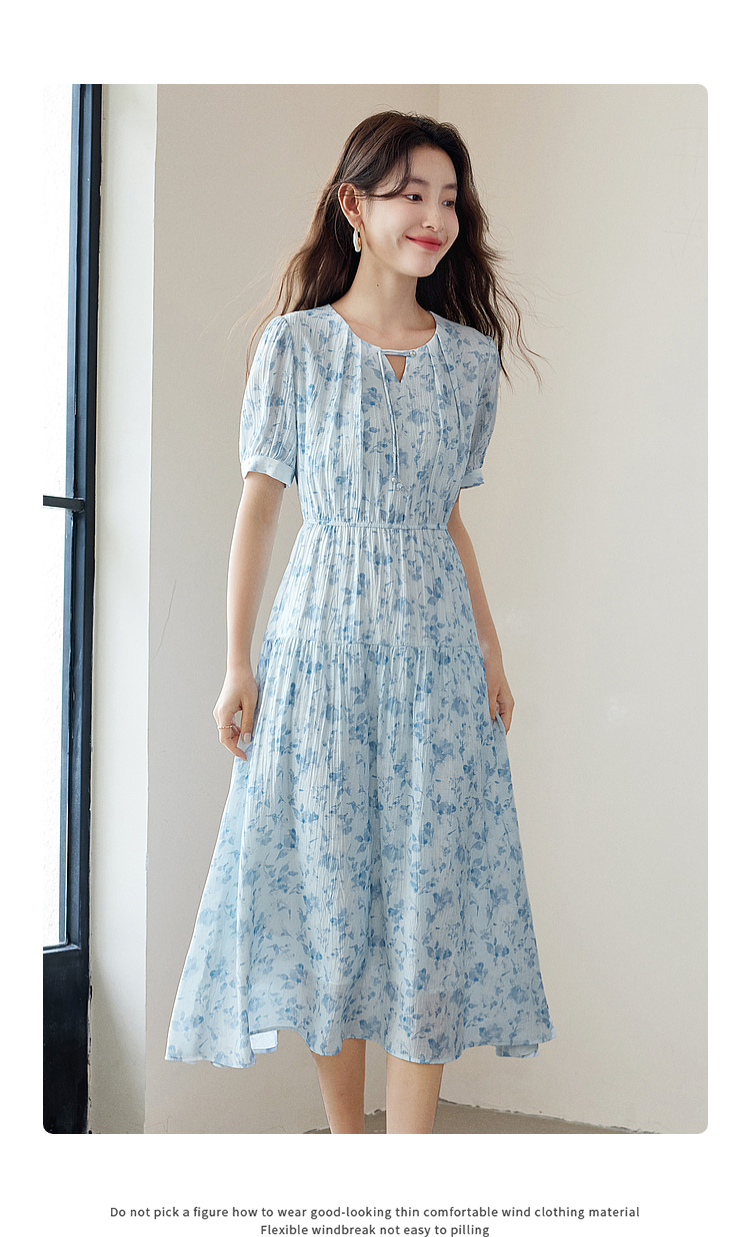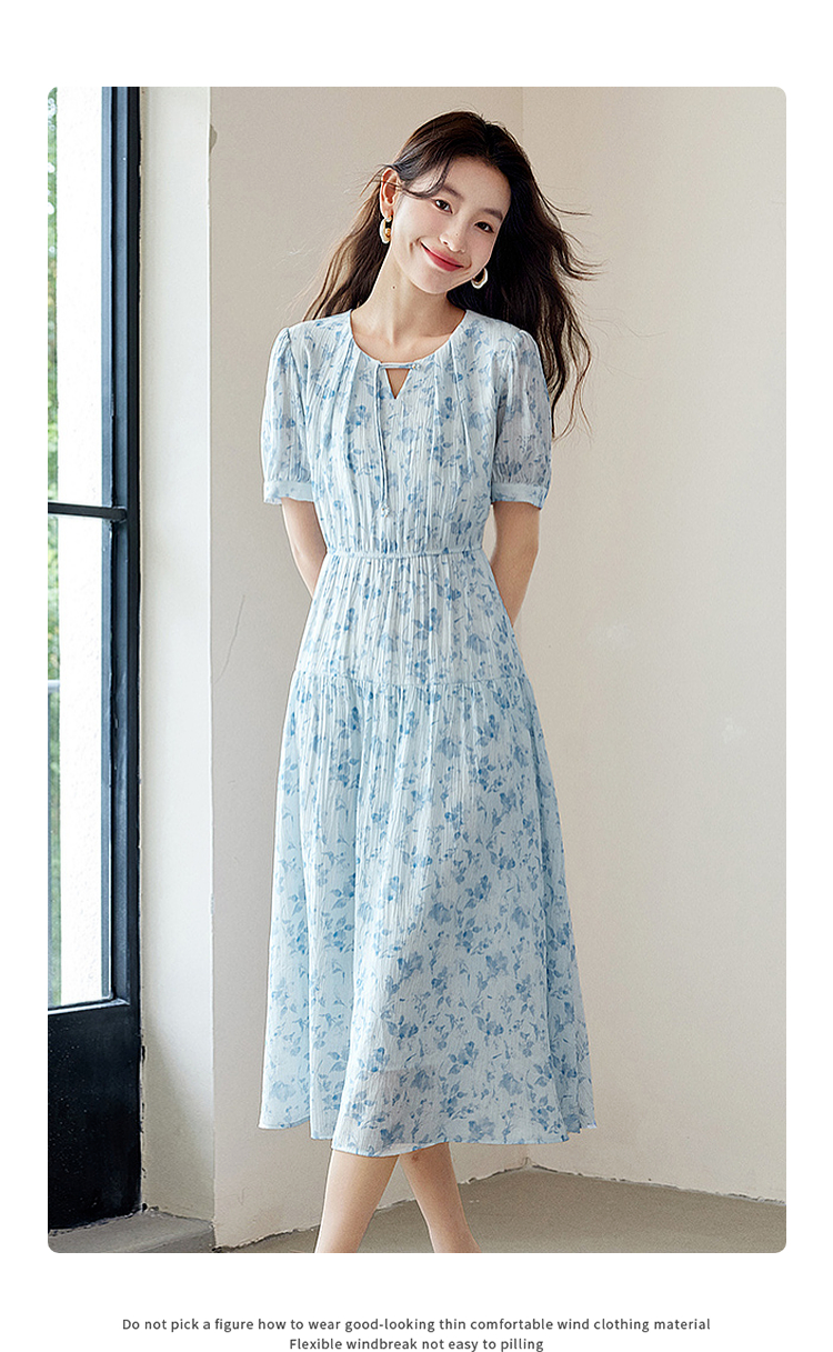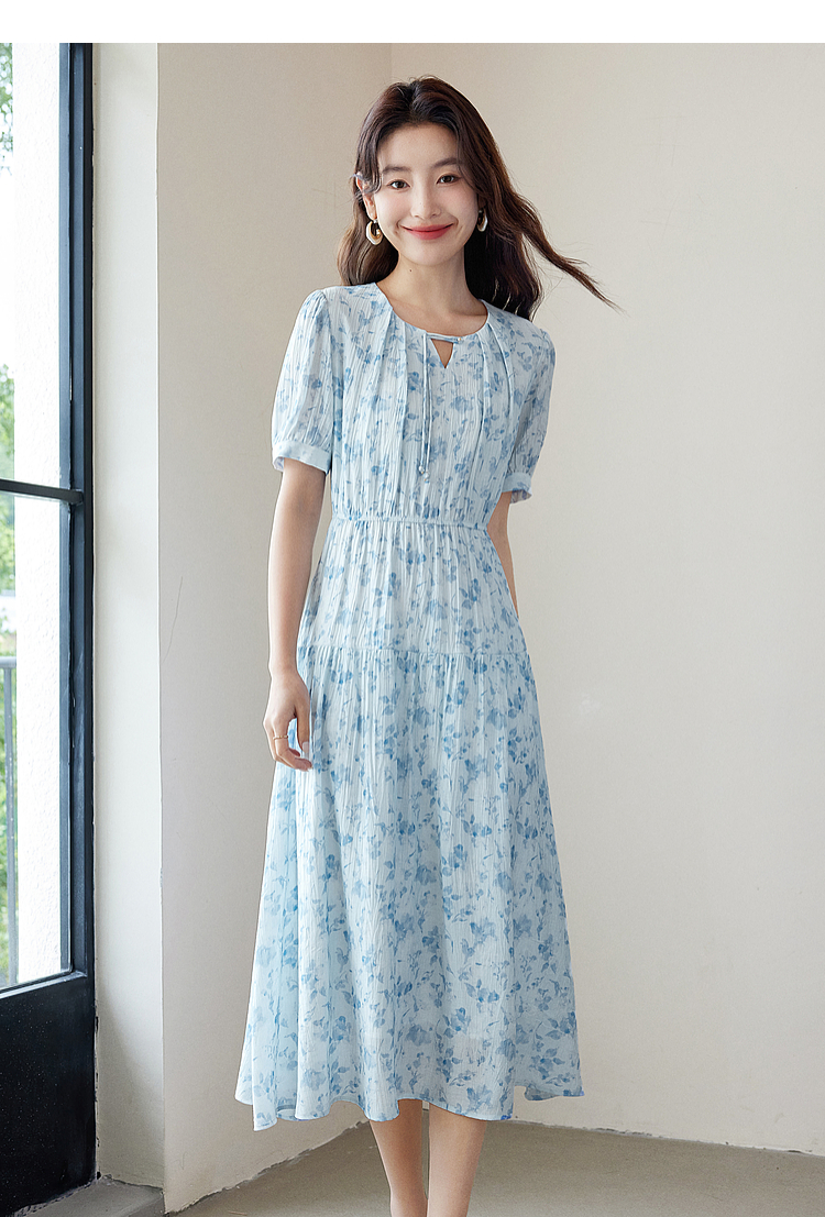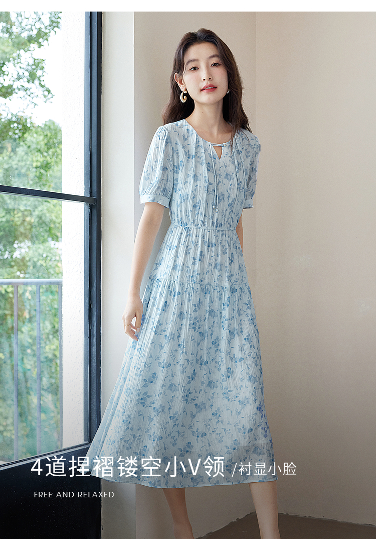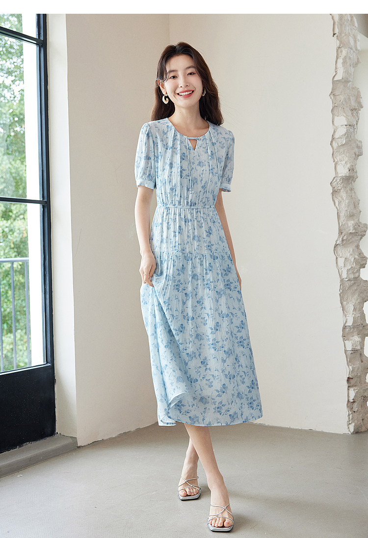 【专属特价】熙世界浪漫气质雪纺碎花连衣裙2025夏季新款高腰显瘦泡泡袖裙子