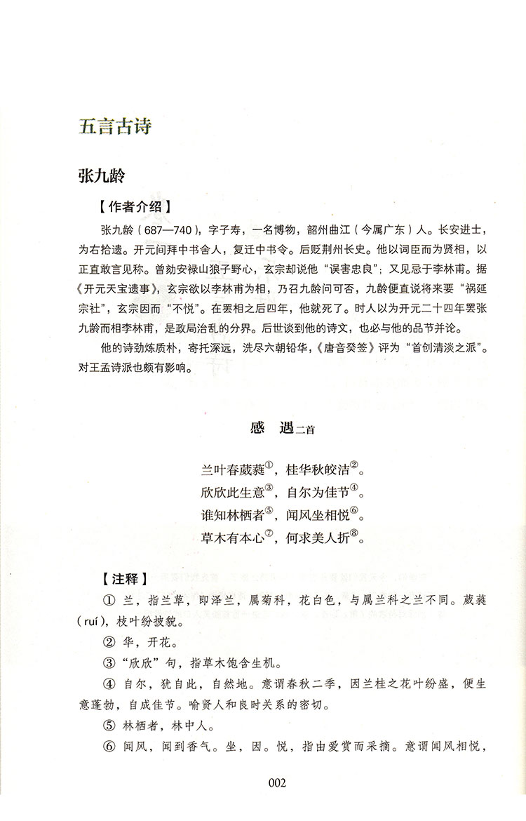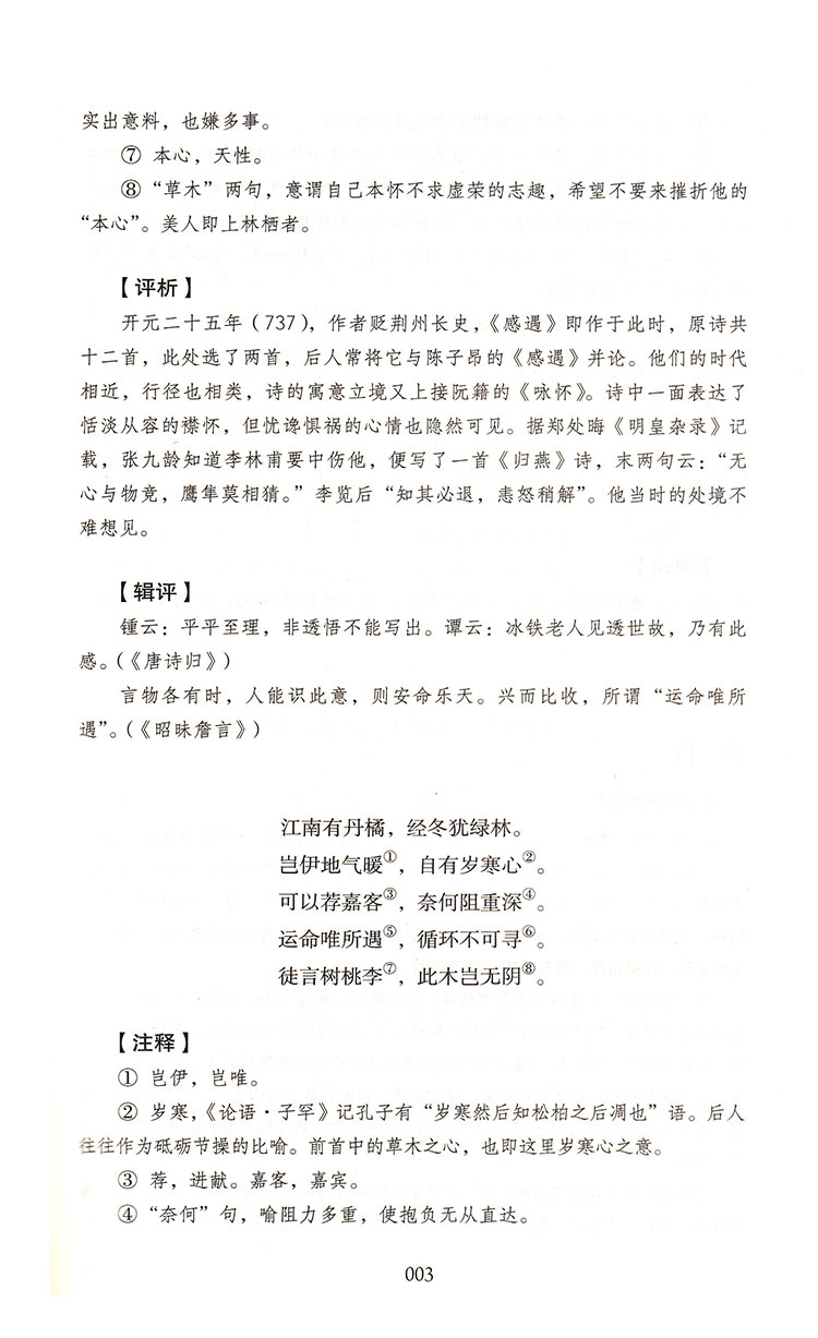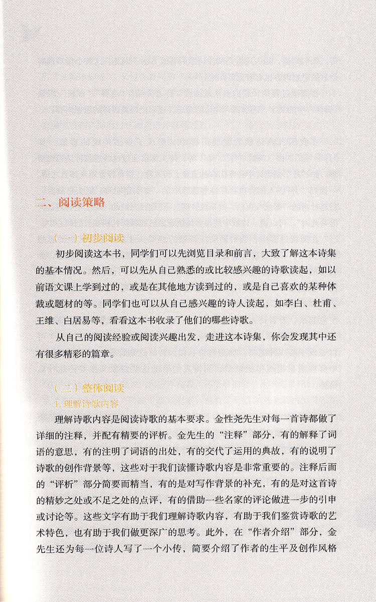 《唐诗三百首》是清代蘅塘退士孙洙想借此代替“工拙莫辨”、体例不严的《千家诗》,从唐诗中择要三百余首,编成的就学儿童“训蒙”读物。因此,所选作品大多明白易懂,艺术性强,配有注释和评点,且朗朗上口,符合了广大读者的品味和要求。本书诗人包括 “三教九流”,上至帝王将相,下至士子布衣乃至僧侶、歌女、无名氏。另外,所选作品从古风到近体,包括五言古诗、乐府、七言古诗、七言乐府、五言律诗、七言律诗、五言绝句、七言绝句等,体裁完备。这些诗既能体现诗人的风格特色及诗人在唐代诗坛中的地位,又能反映出唐诗的基本风貌和发展水平。