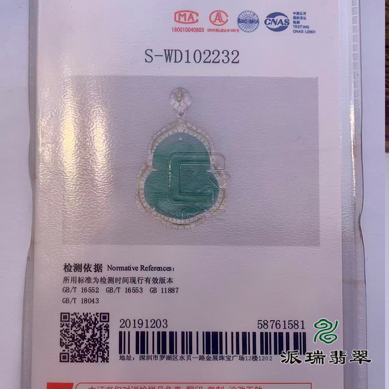 派瑞翡翠 18k金翡翠吊坠 冰种 满绿