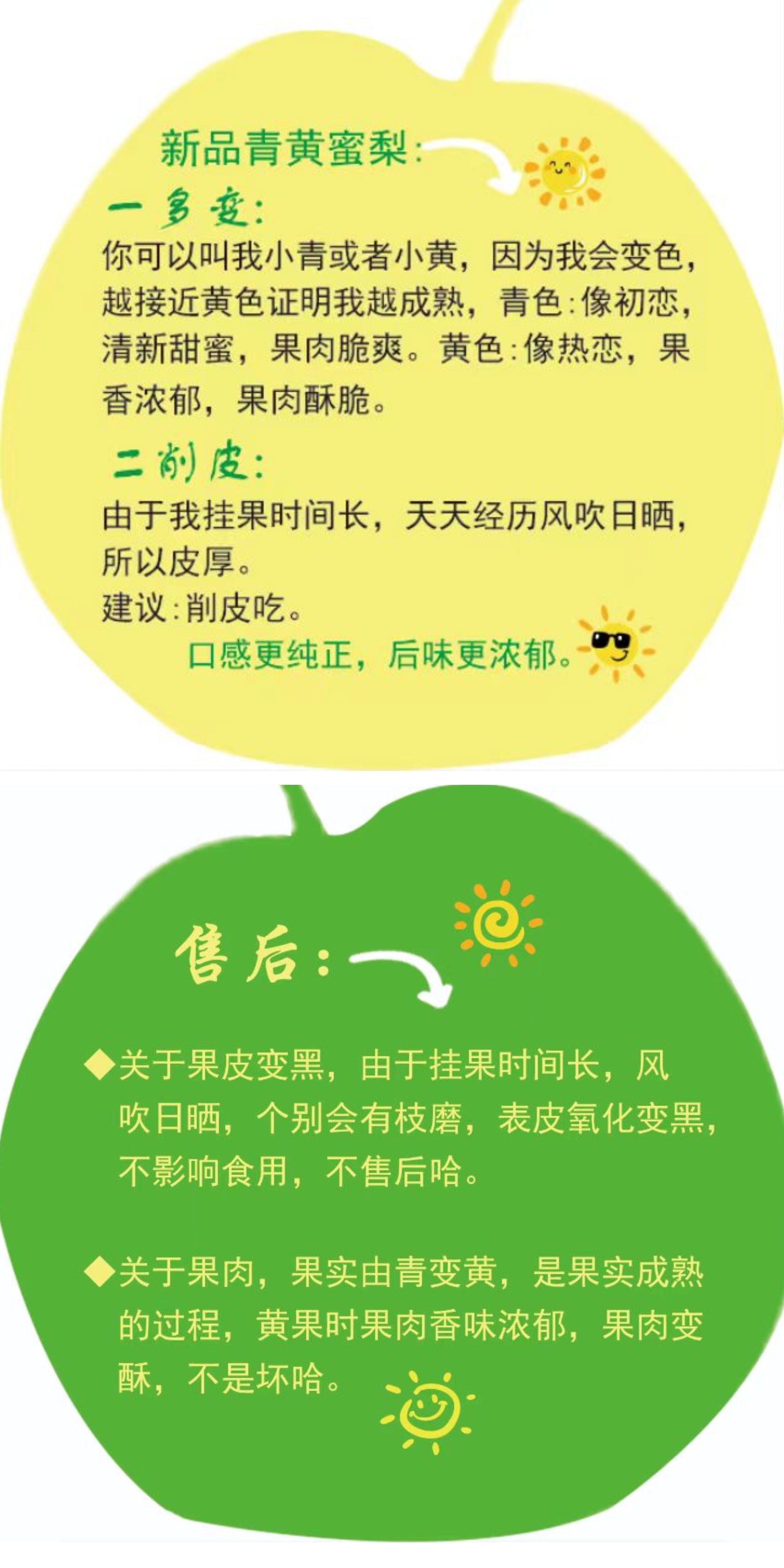 1、收到货后立即开箱检查,如果有果子损坏,请在24小时内,坏果+面单合拍联系售后客服处理!赔付金额=供货价*果子总数*坏果个数,不按要求提供售后凭证或者超出售后时间的不受理售后。