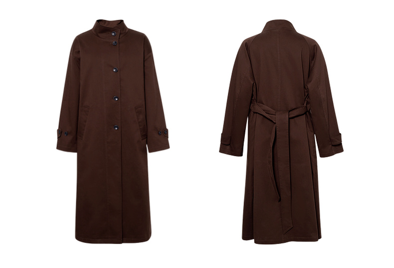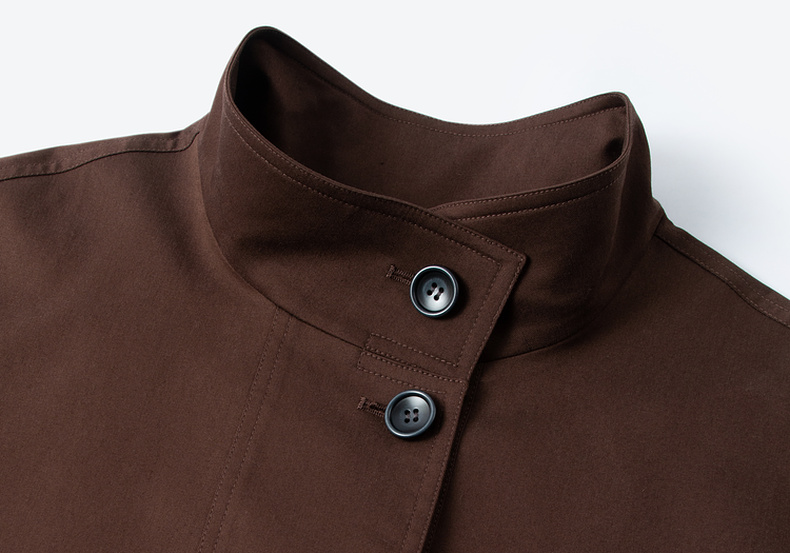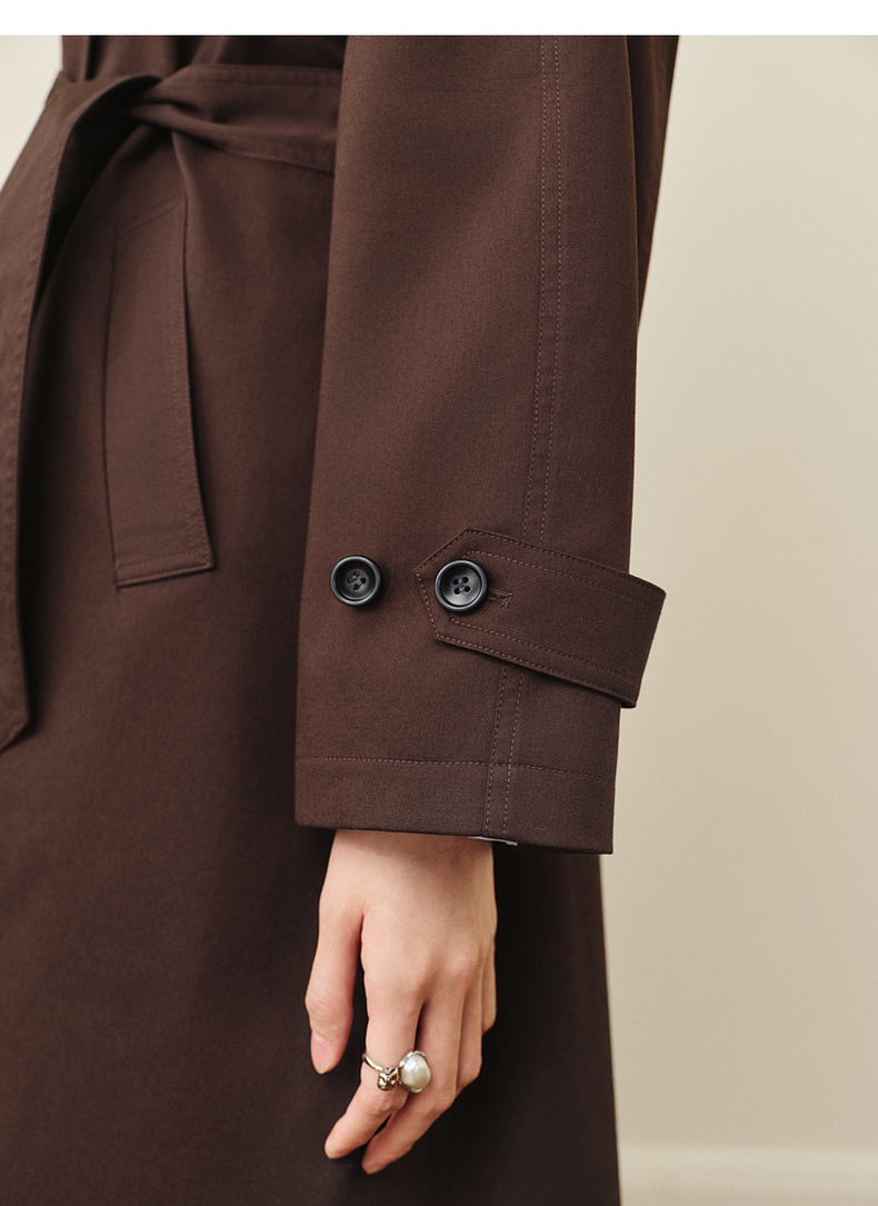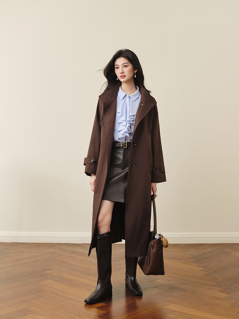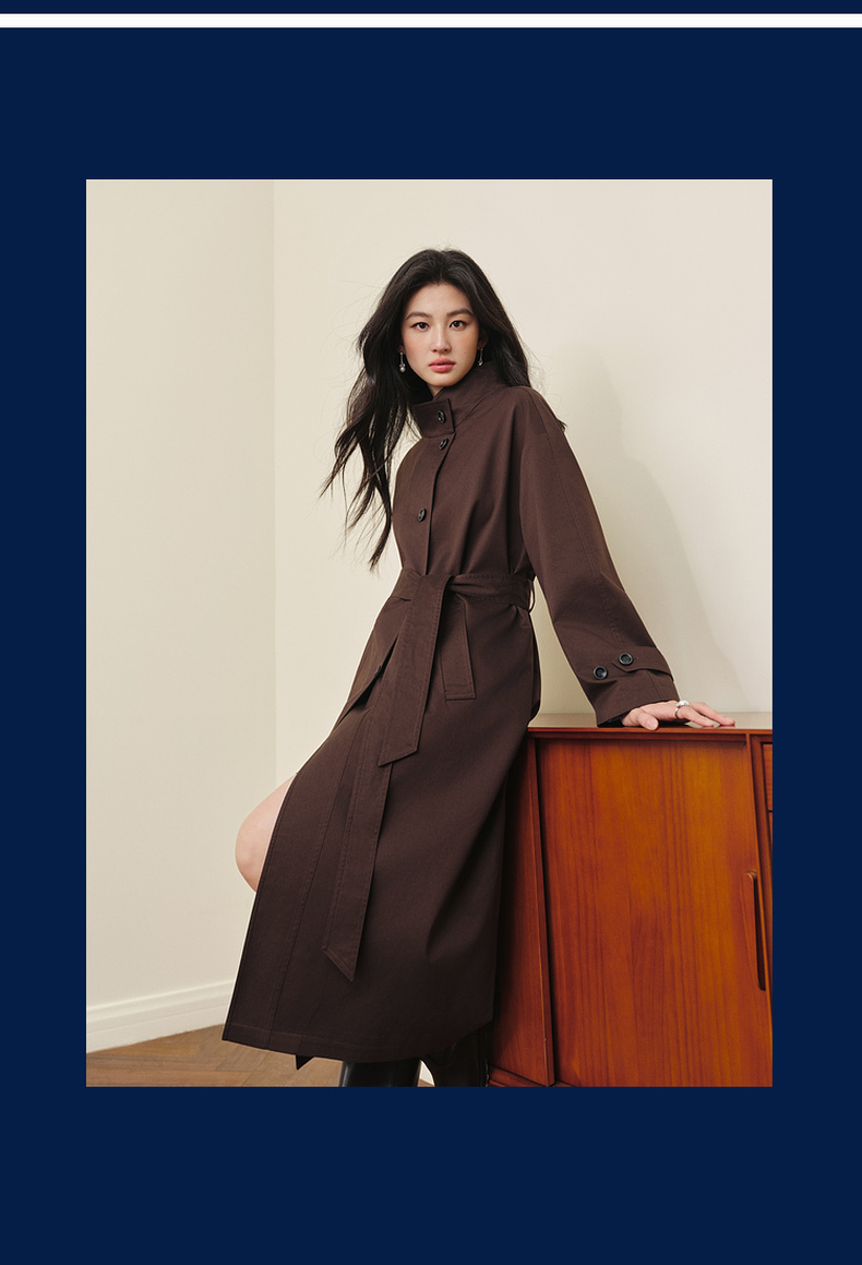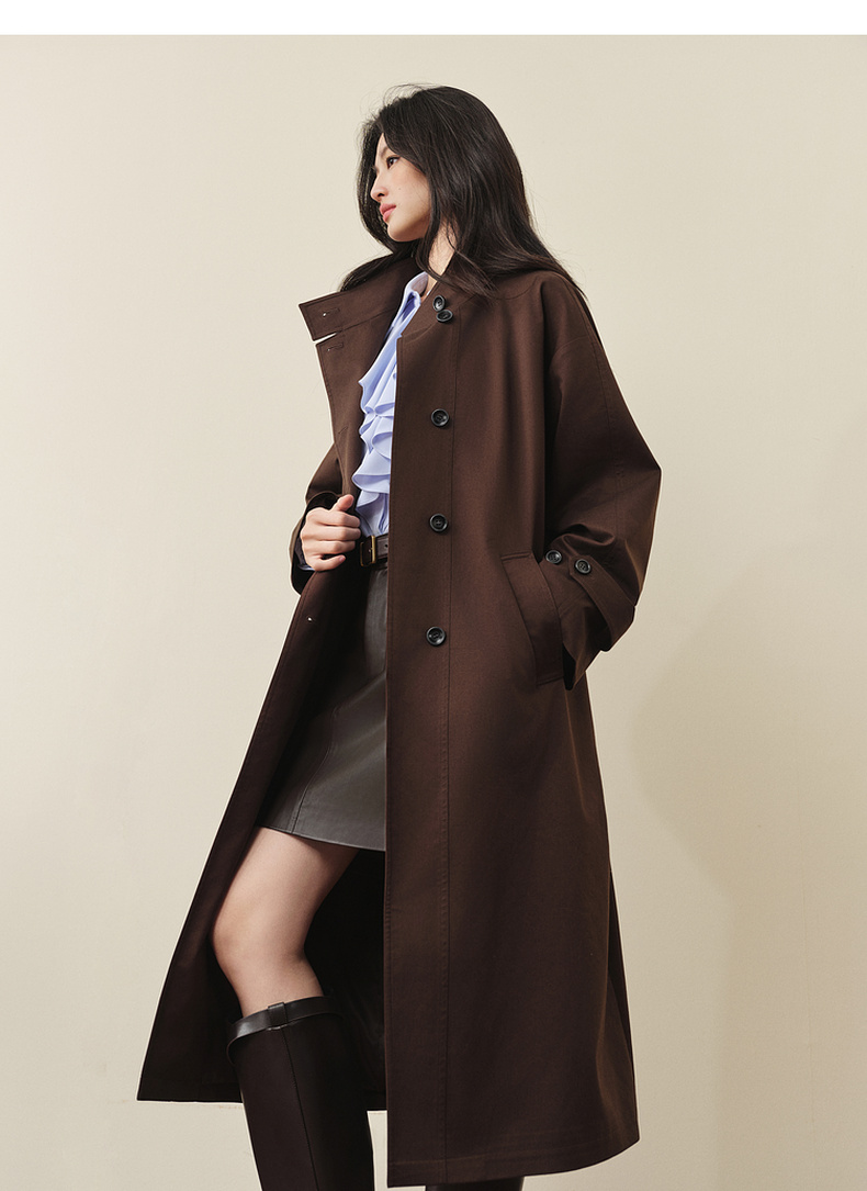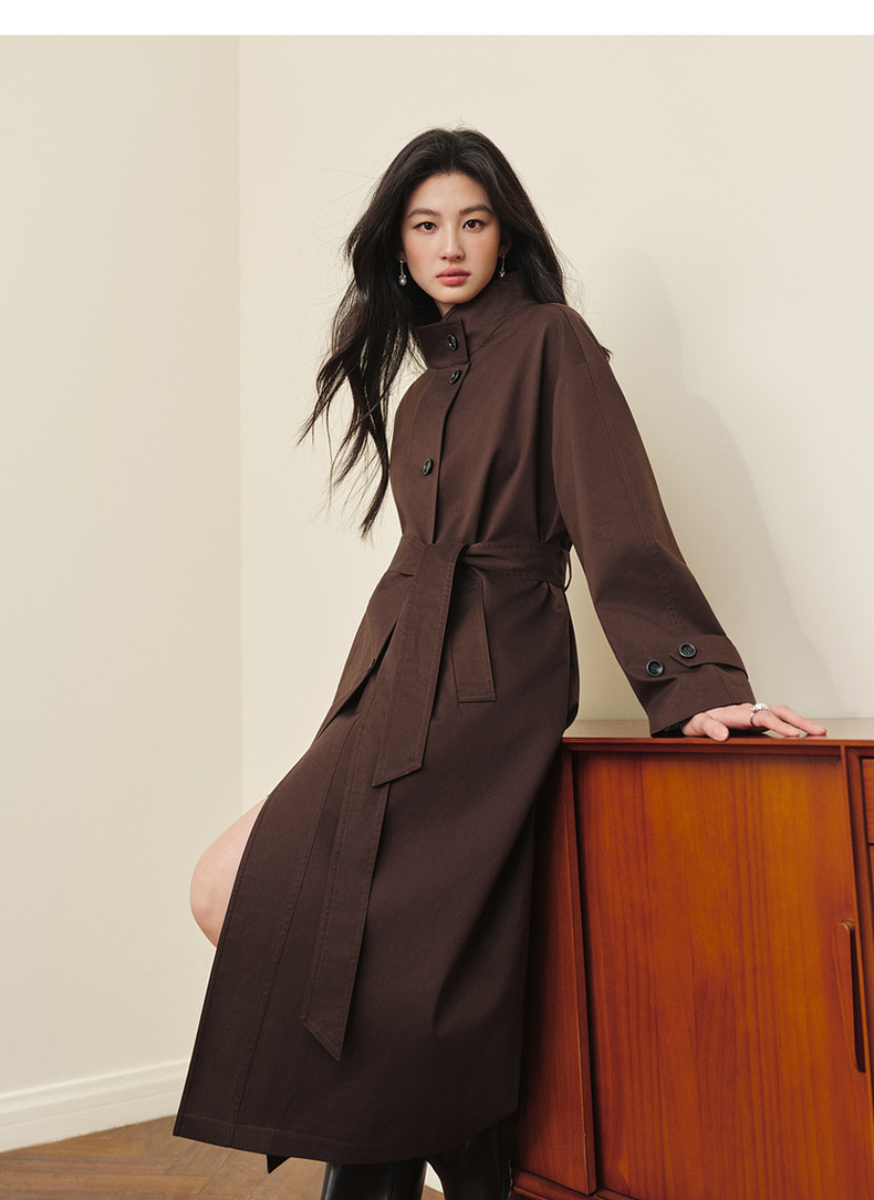 【严选】诗凡黎英伦风棕色立领系带风衣2025秋新款长款酷飒宽松通勤外套女7G7160271-1
