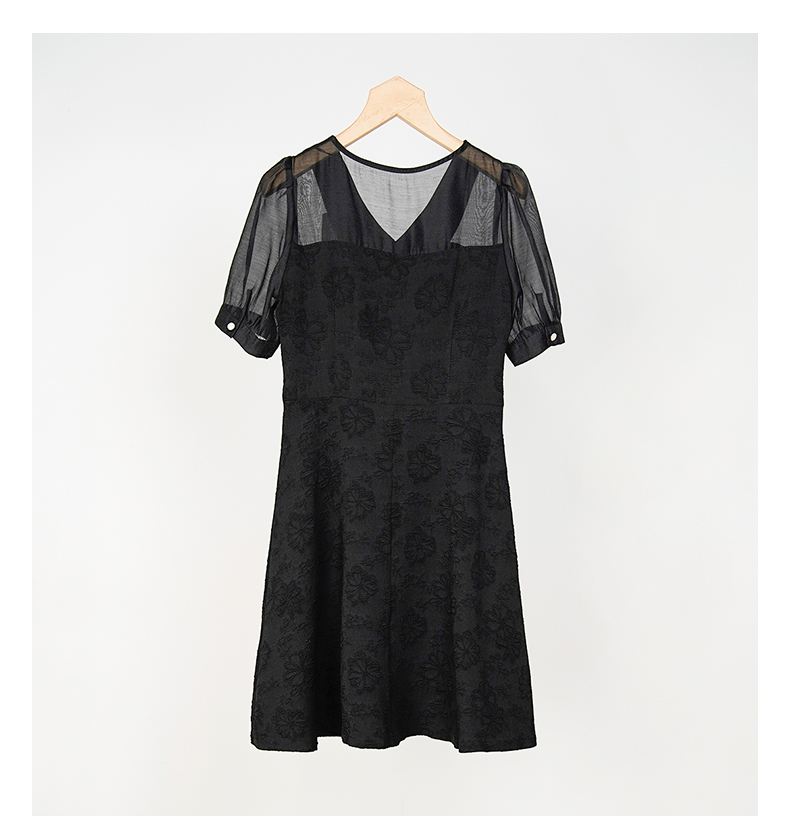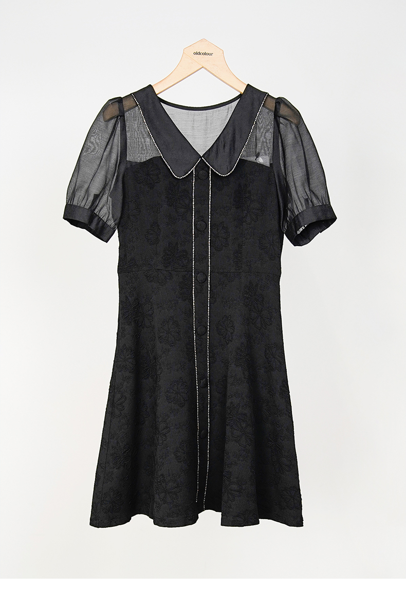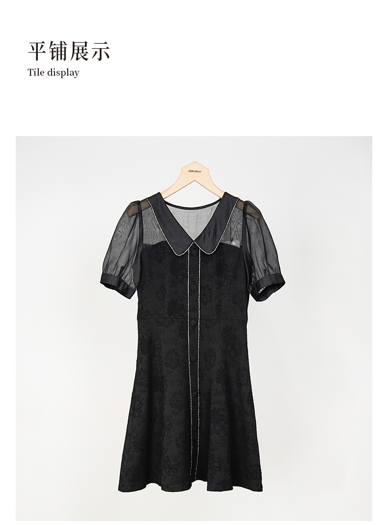 oldcolour欧珂夏季设计感休闲简约日常黑色短袖连衣裙女GN21101750