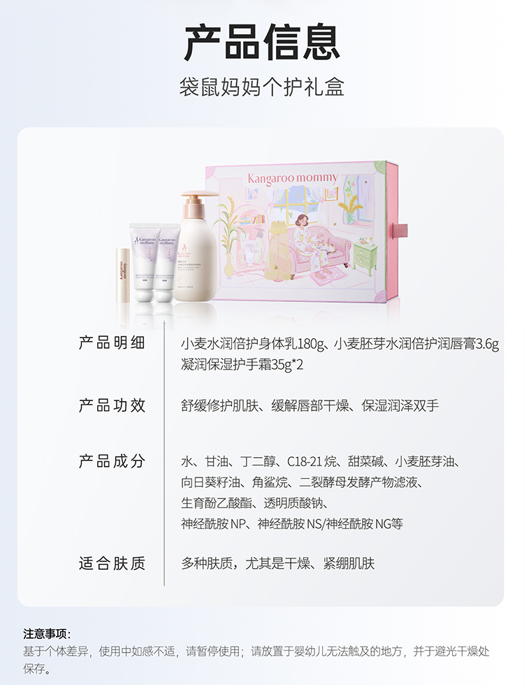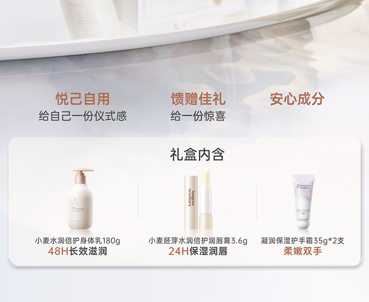 【秋冬润肤礼盒】 小麦系列身体乳+护手霜*2+润唇膏 全身滋润 长效保湿 小麦润肤4件套