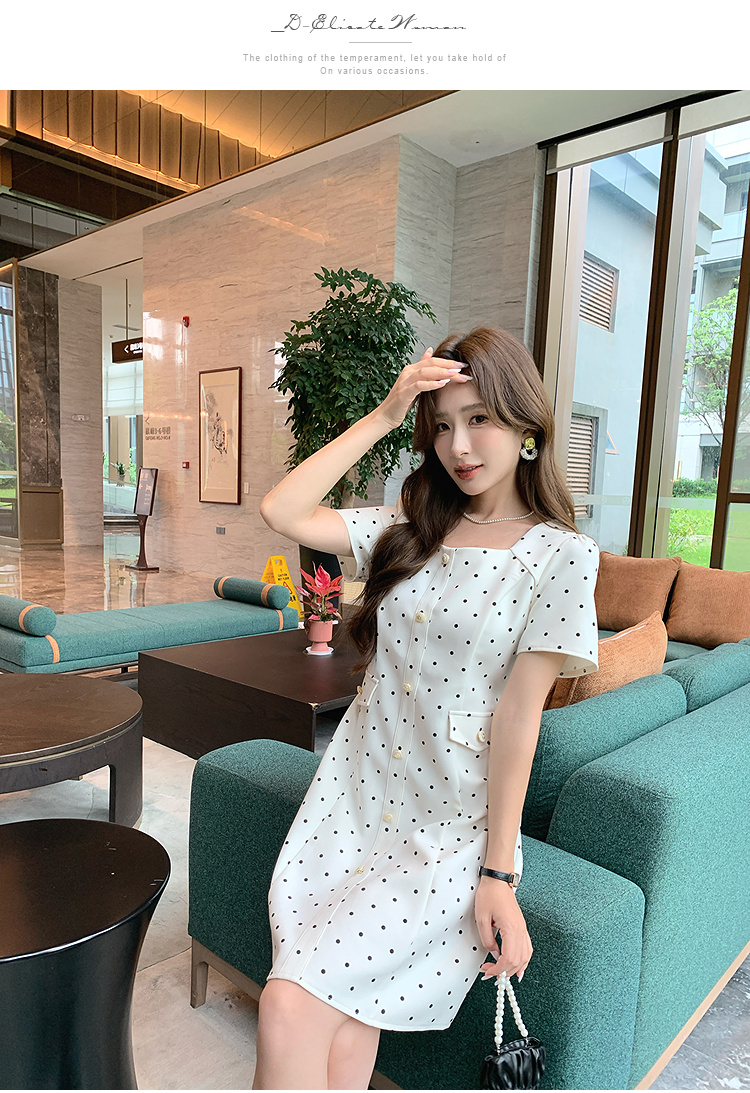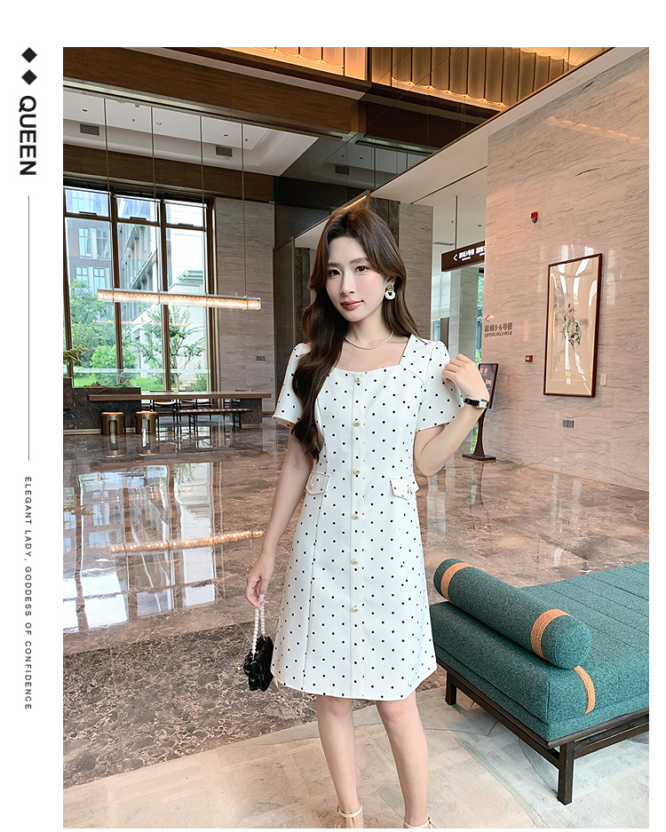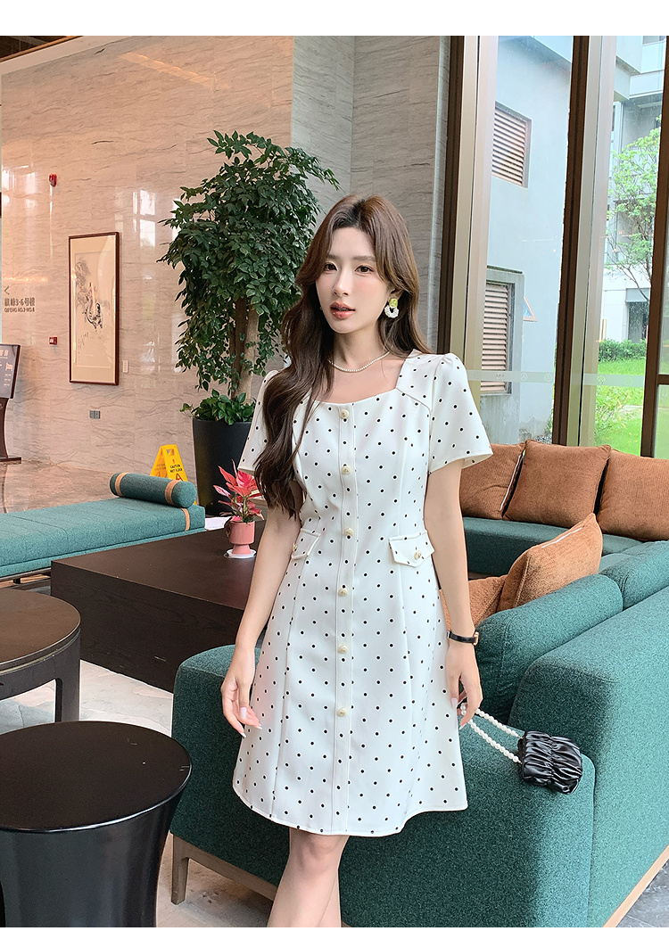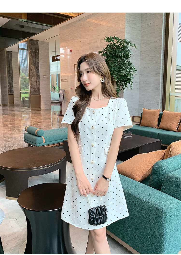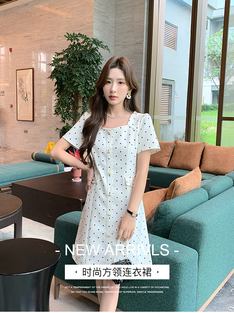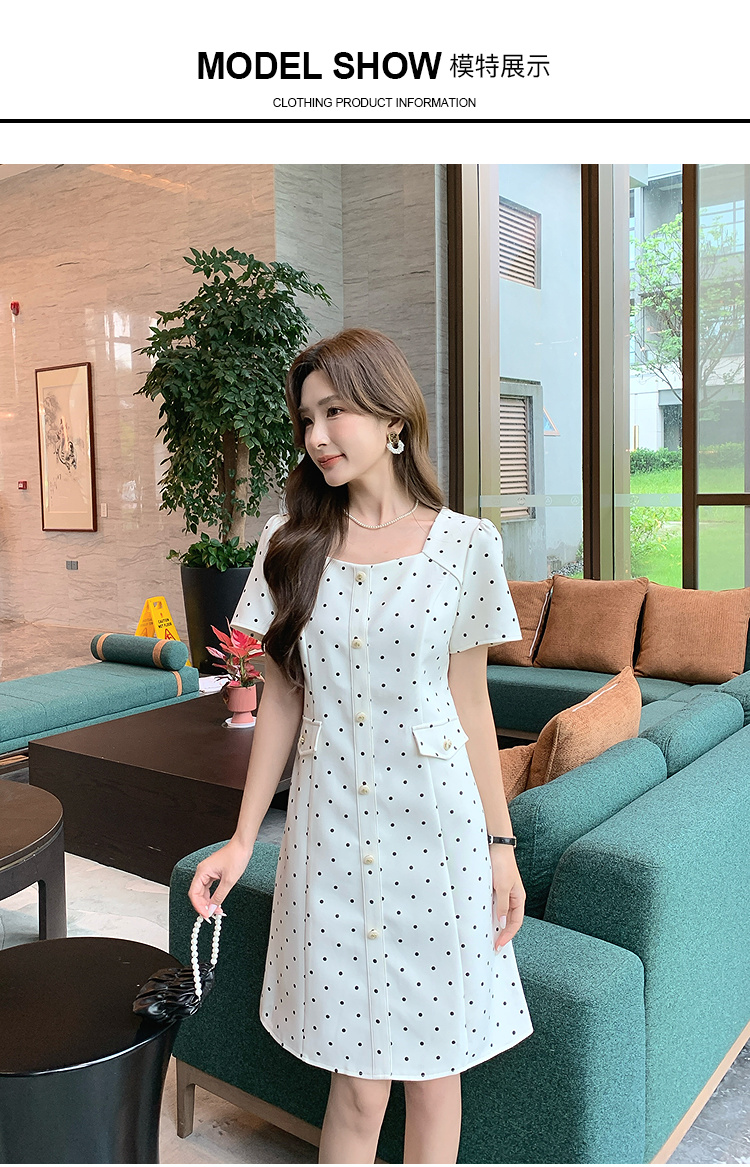 奢姿大码女装2025夏季减龄波点方领连衣裙胖妹妹假口袋时尚裙子9952869804